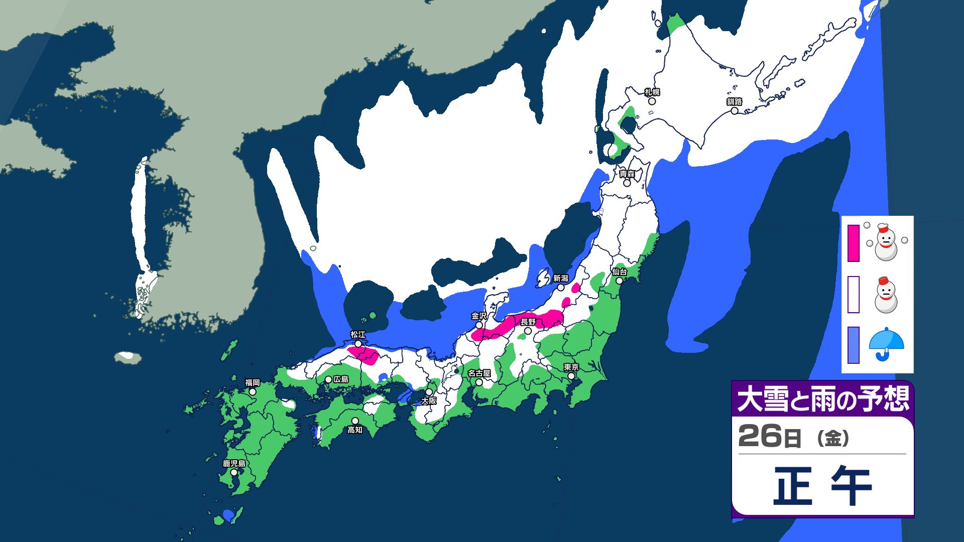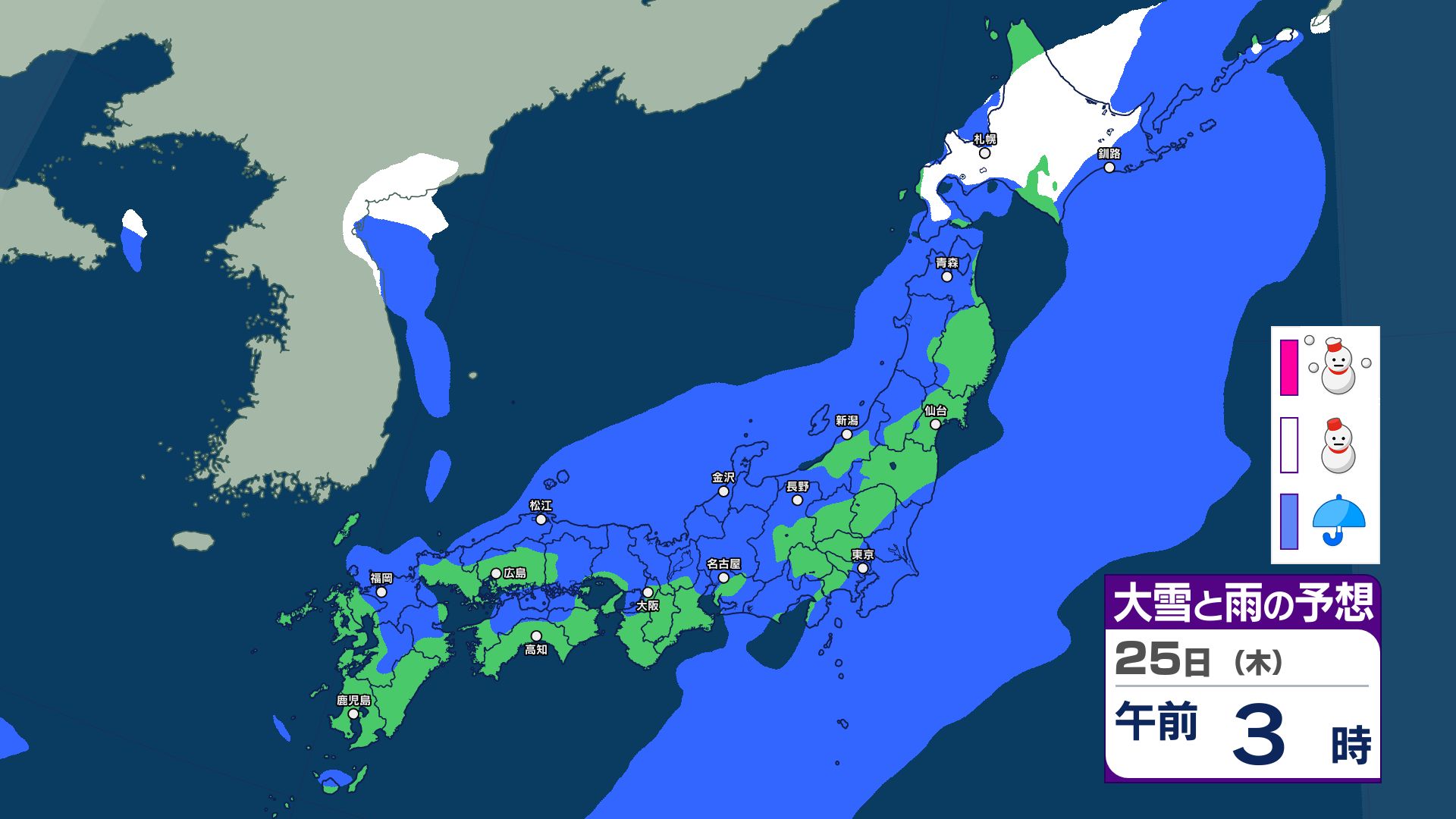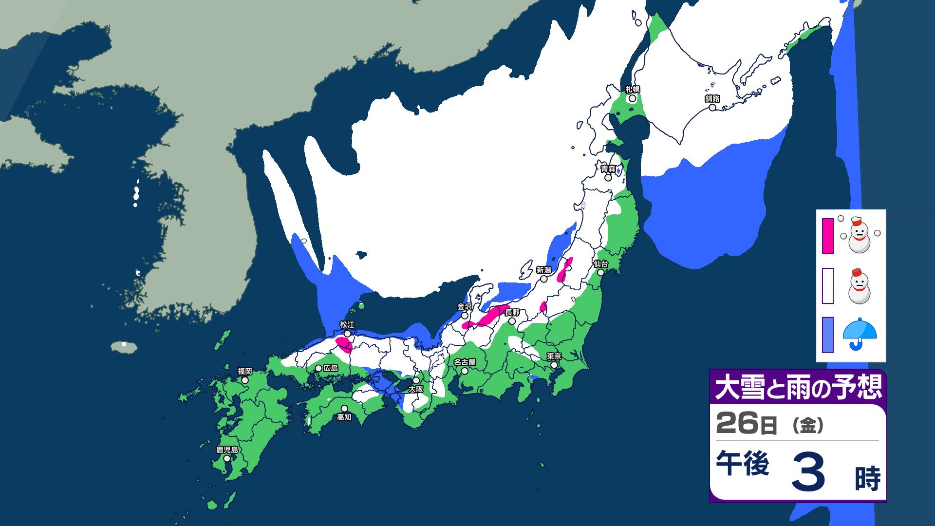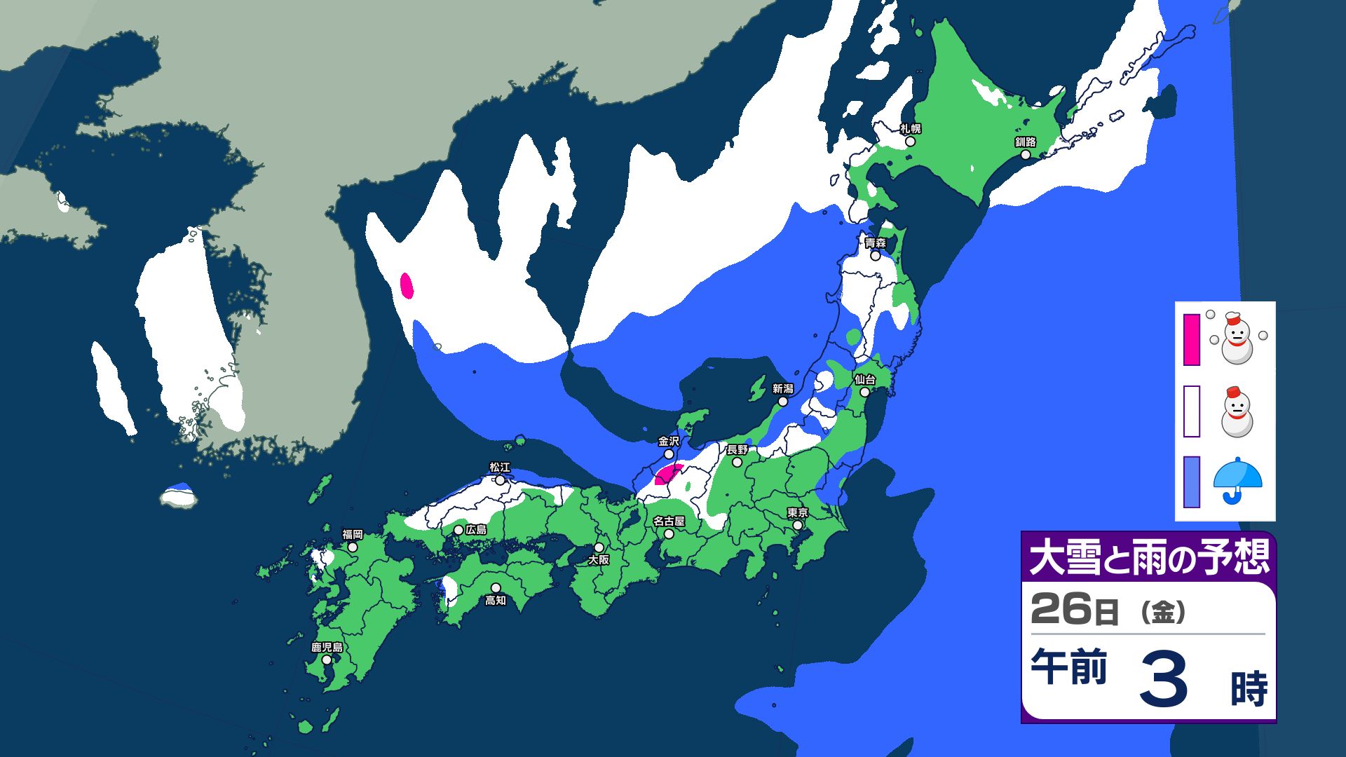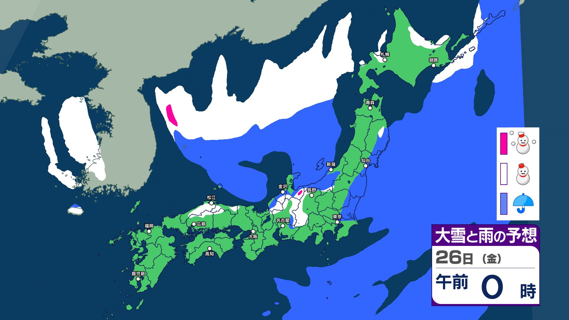 強い寒気…26日は「警報級の大雪の可能性」早期注意情報 長野・群馬・新潟・富山・岐阜 24日~25日は広い範囲で雨予想…関東南部 神奈川・千葉で大雨警報の可能性【12月28日まで 雪と雨のシミュレーション掲載】 2025年12月23日(火) 17:15 国内