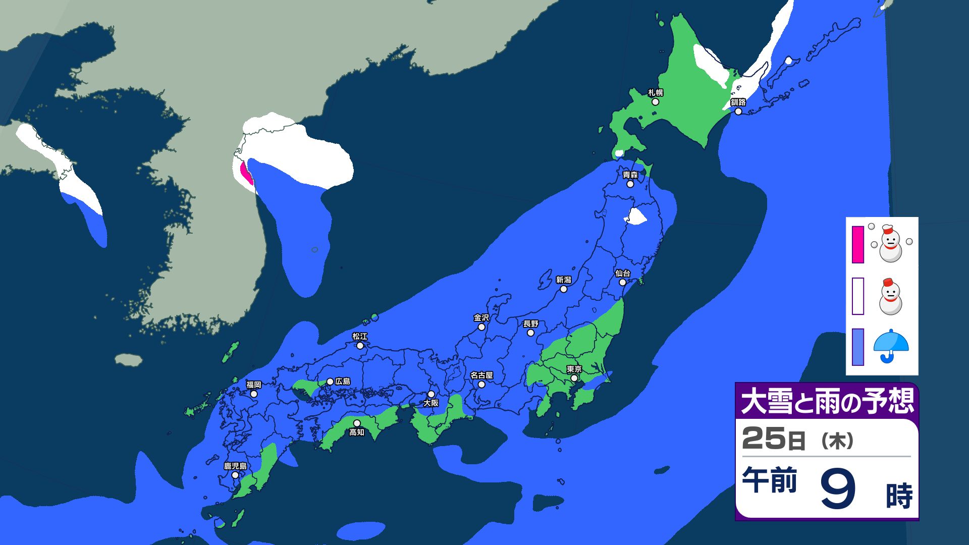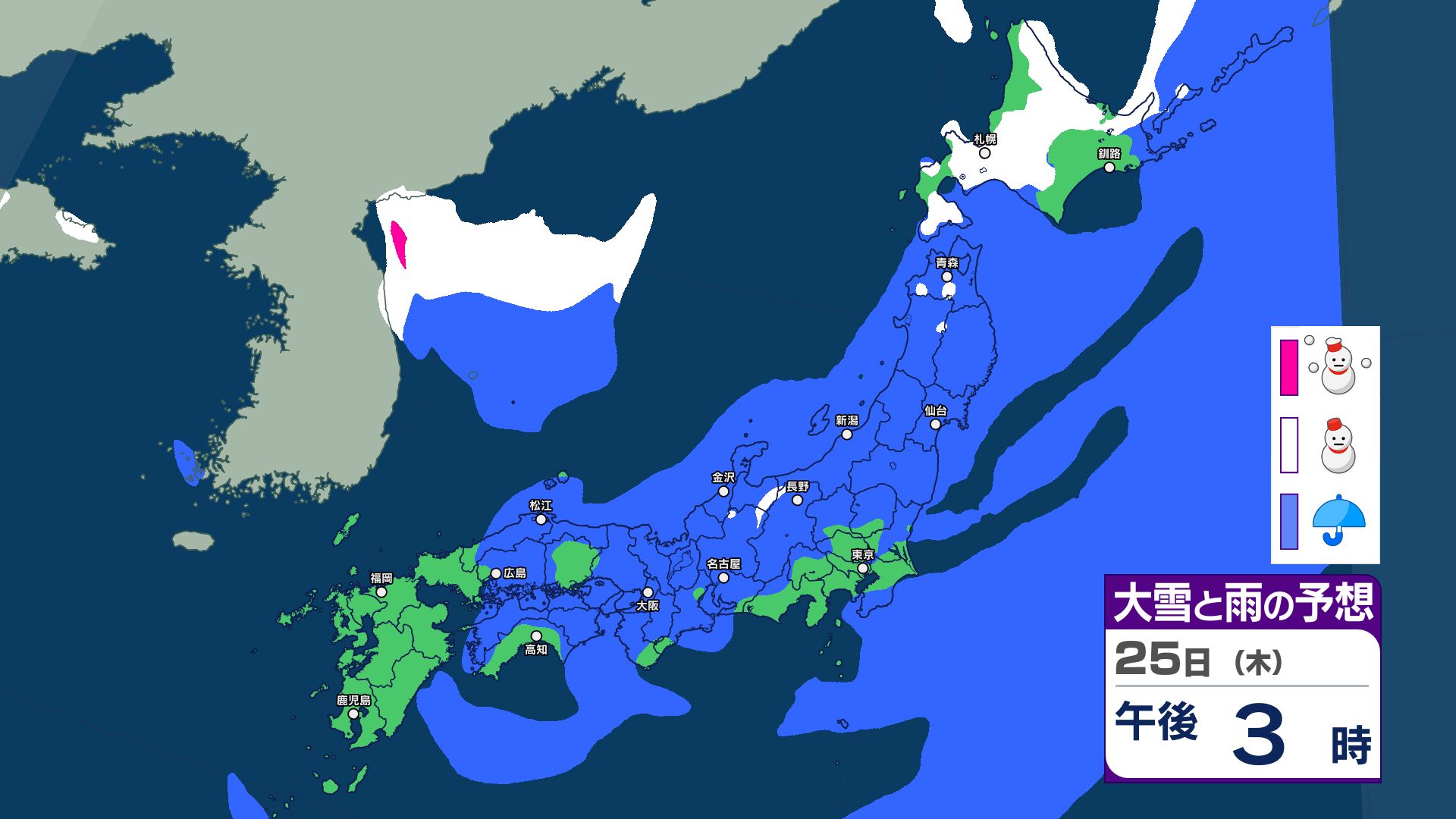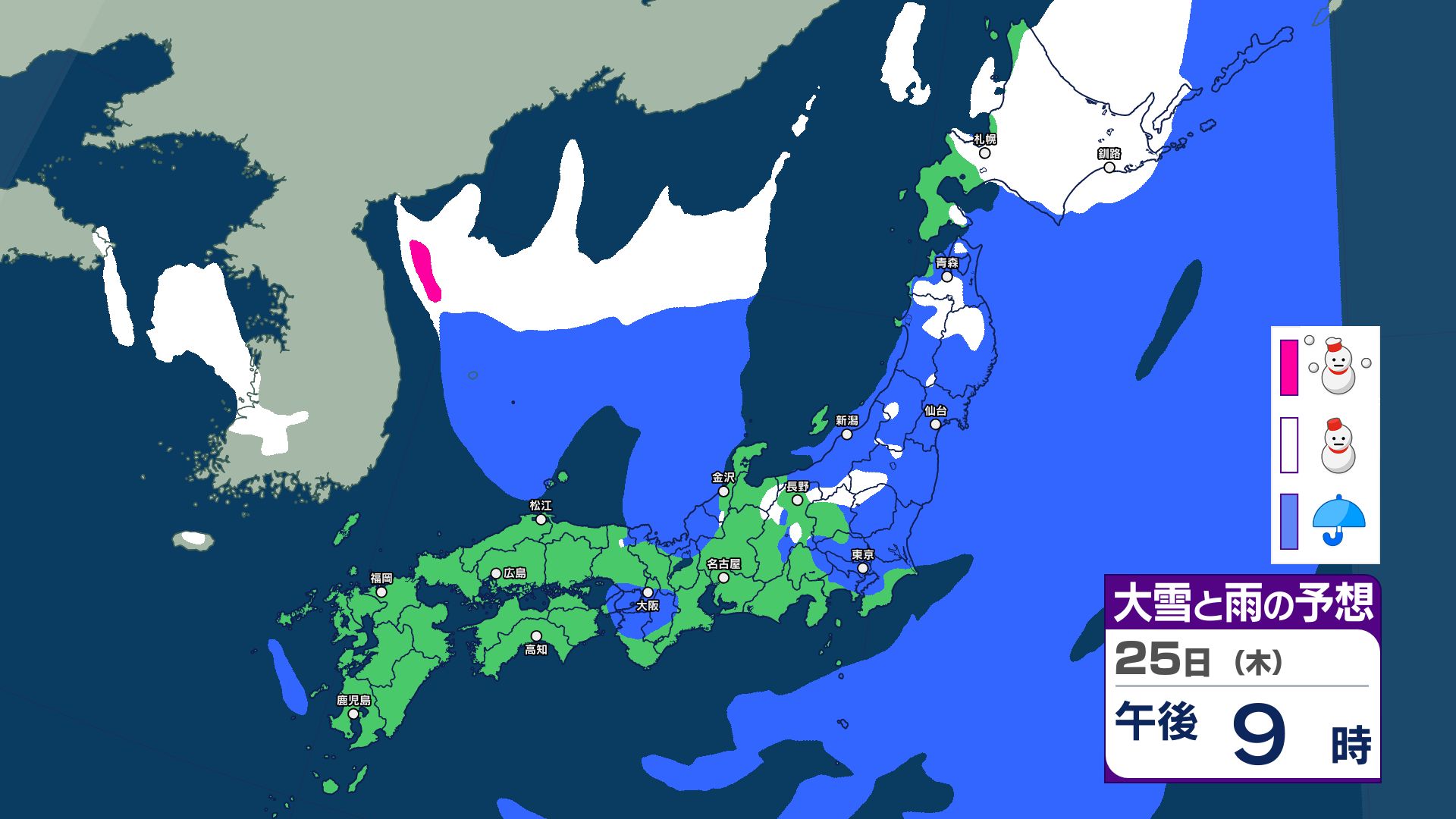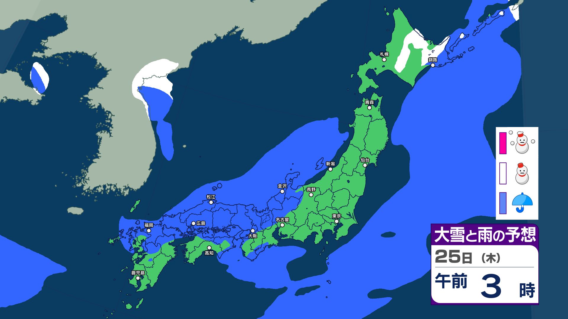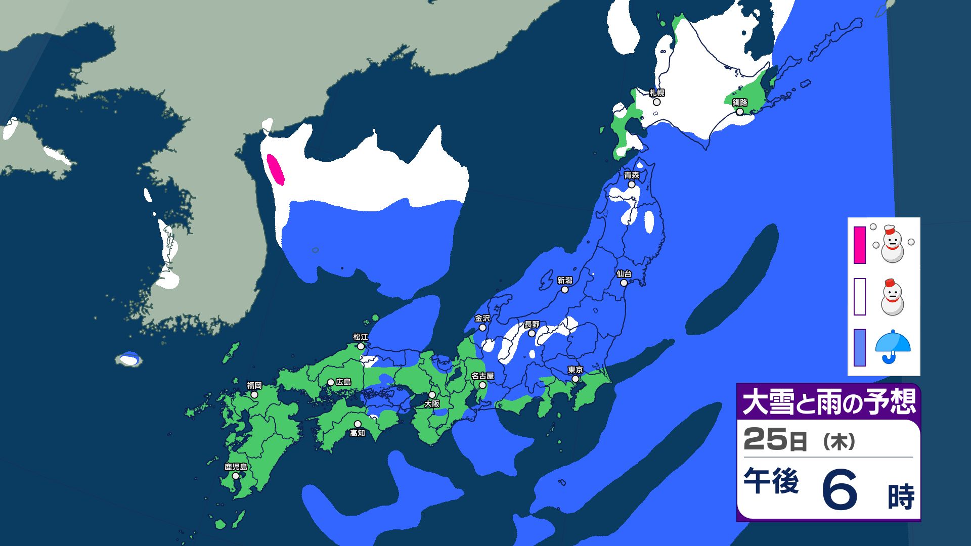 【大雪情報】強い寒気が南下…26日は日本海側で「警報級の大雪の可能性」…近畿にも雪雲が流れ込むか 25日にかけて雨予想…関東南部で大雨警報の可能性【12月29日まで 雪と雨のシミュレーション掲載】 2025年12月24日(水) 11:30 国内 【12月24日~29日 雪と雨のシミュレーション掲載】