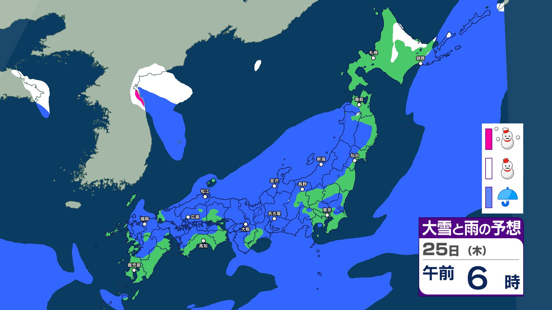 【大雪情報】26日は暴風雪・大雪に警戒 気象庁発表の24時間予想降雪量 東北・関東甲信・北陸・東海・近畿・中国で50cm 九州北部30cm【12月29日まで 雪と雨のシミュレーション掲載】 2025年12月24日(水) 17:53 国内 【12月24日~29日 雪と雨のシミュレーション掲載】