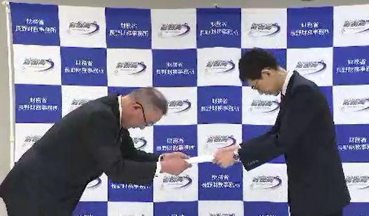 長野市で行われた交付式では、関東財務局の後藤健二(ごとうけんじ)局長から八十二銀行の松下正樹(まつしたまさき)頭取と長野銀行の西澤仁志(にしざわひとし)頭取にそれぞれ「合併認可書」が、松下頭取に「商号変更認可書」が手渡されました。