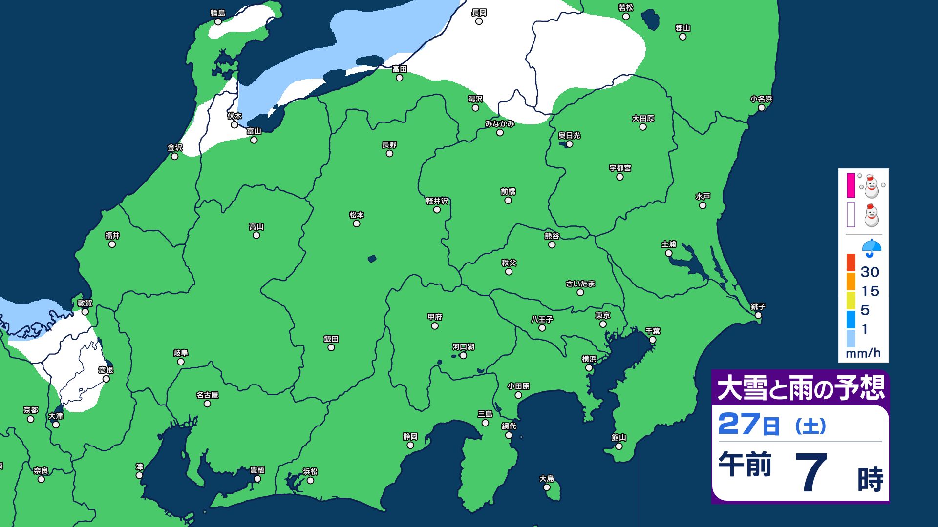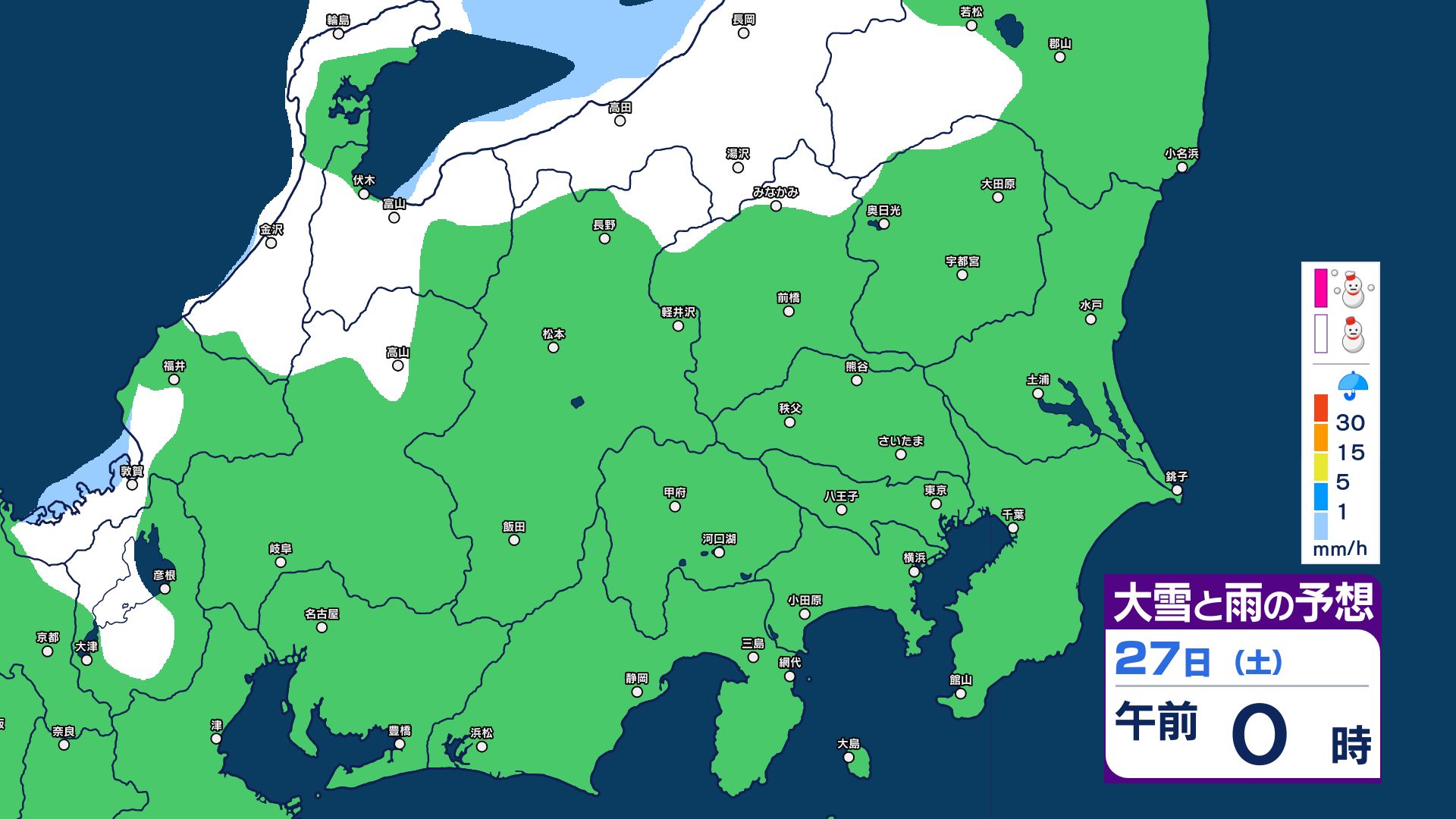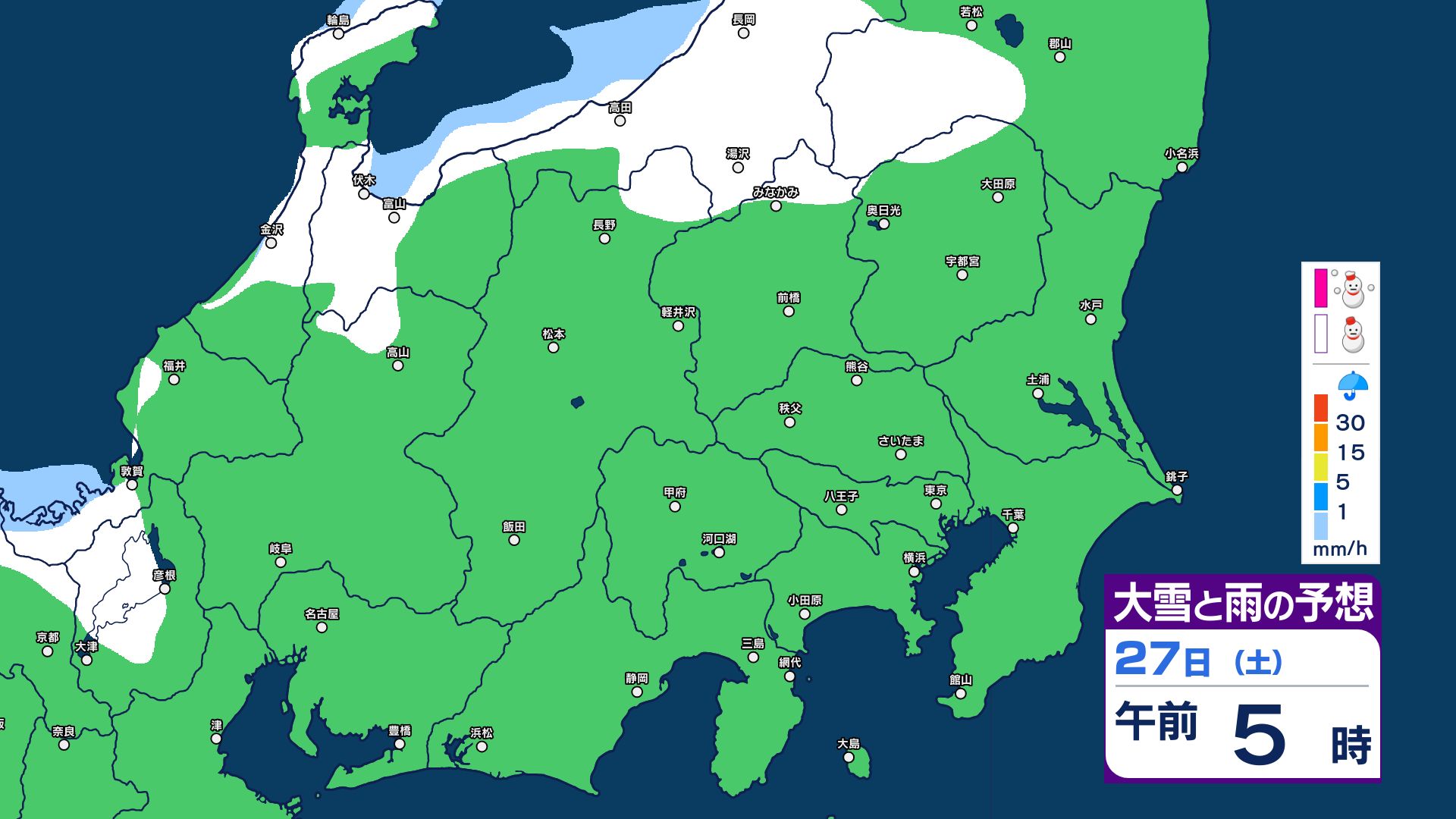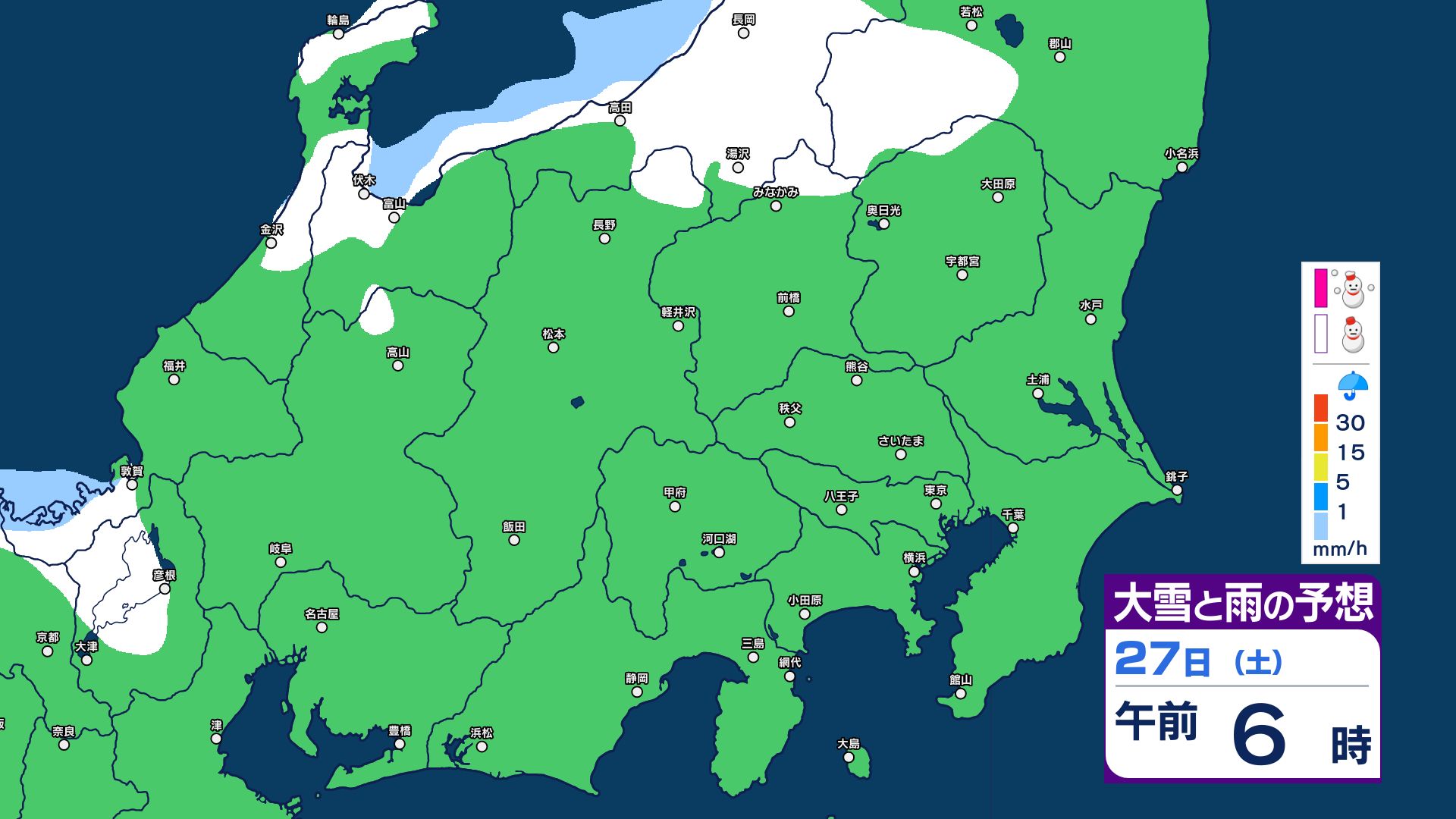 【関東甲信 大雪情報】大雪のおそれ…24時間予想降雪量は甲信50cm・関東北部40cm …