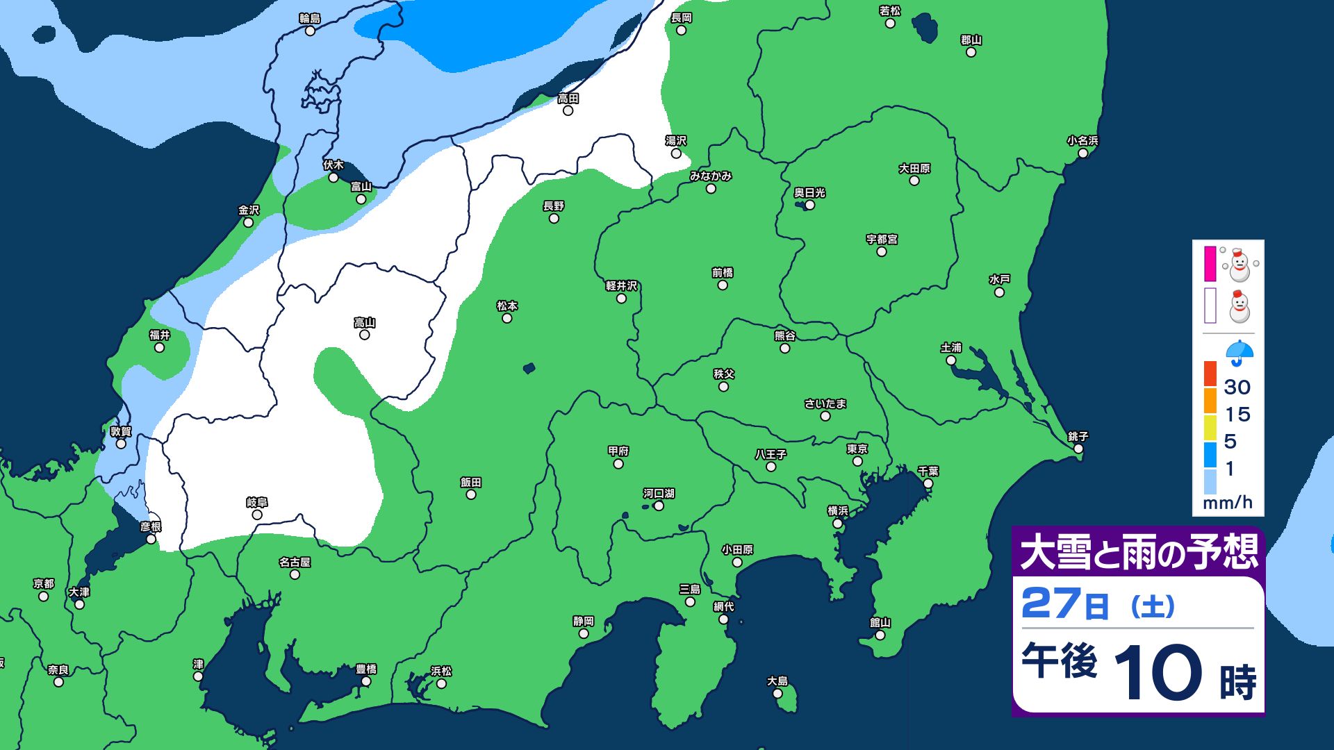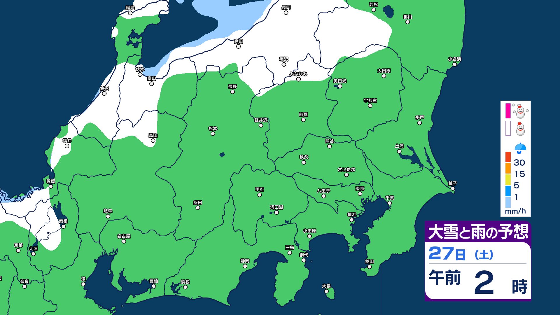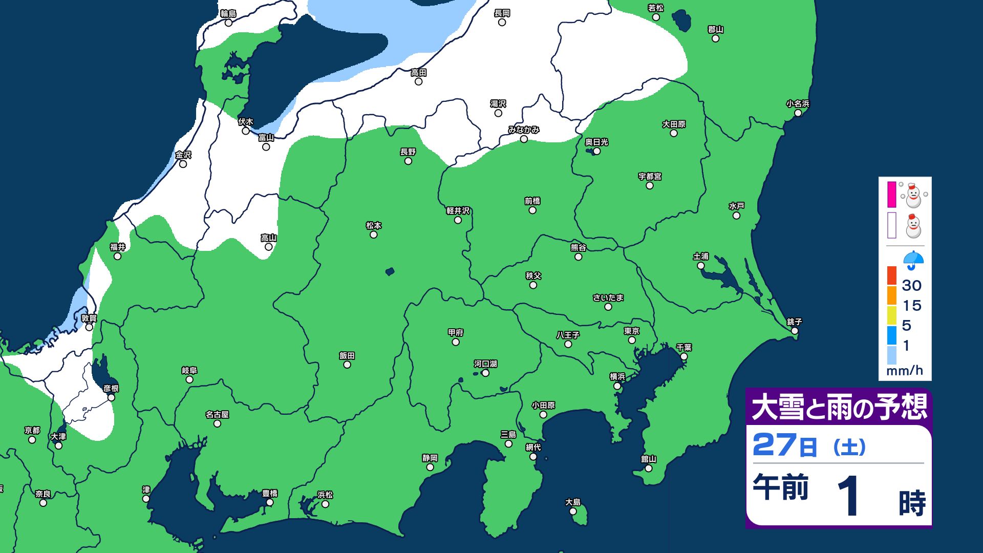 【関東甲信 大雪情報】大雪のおそれ…24時間予想降雪量は甲信50cm・関東北部40cm …
