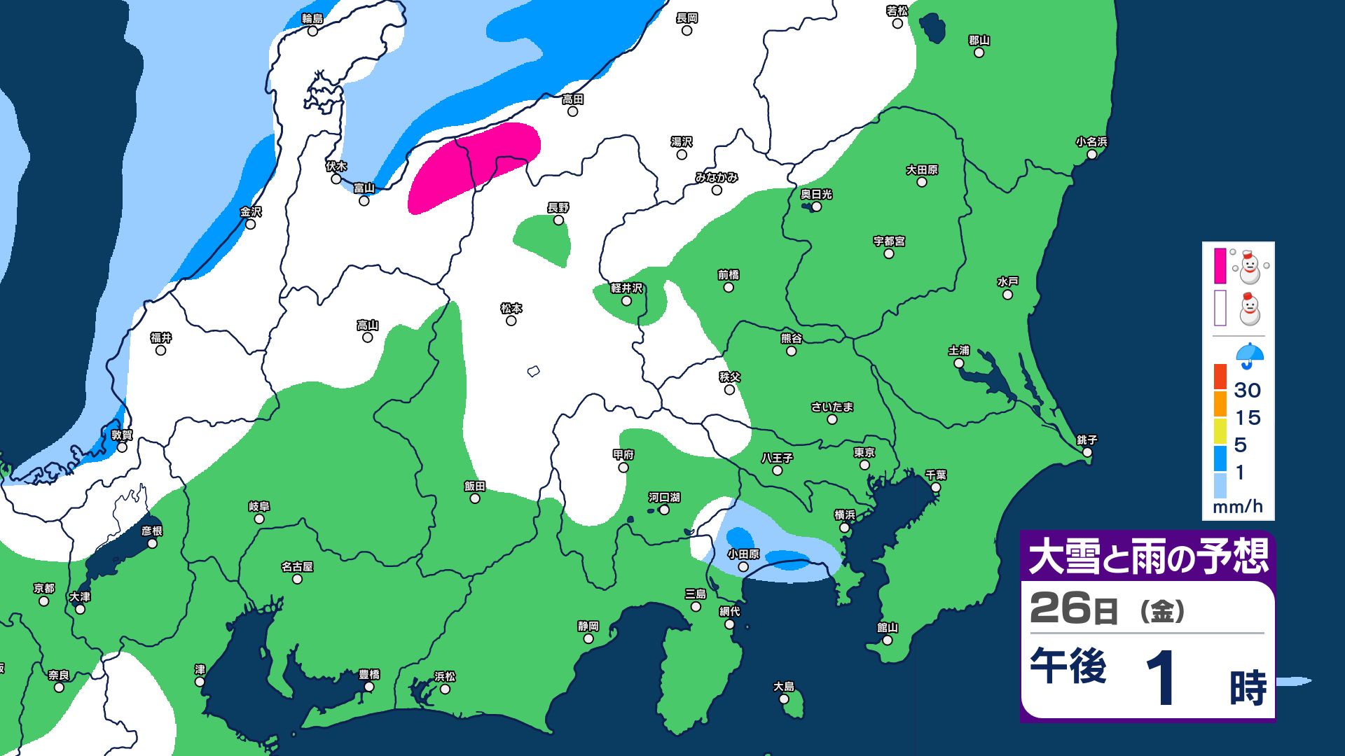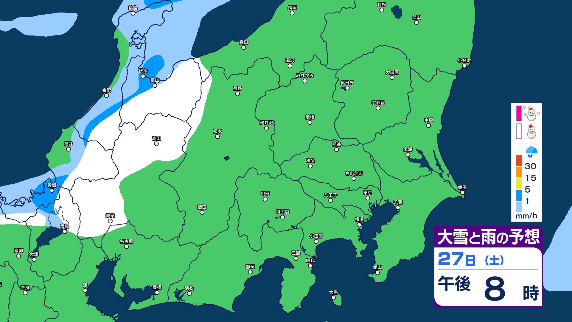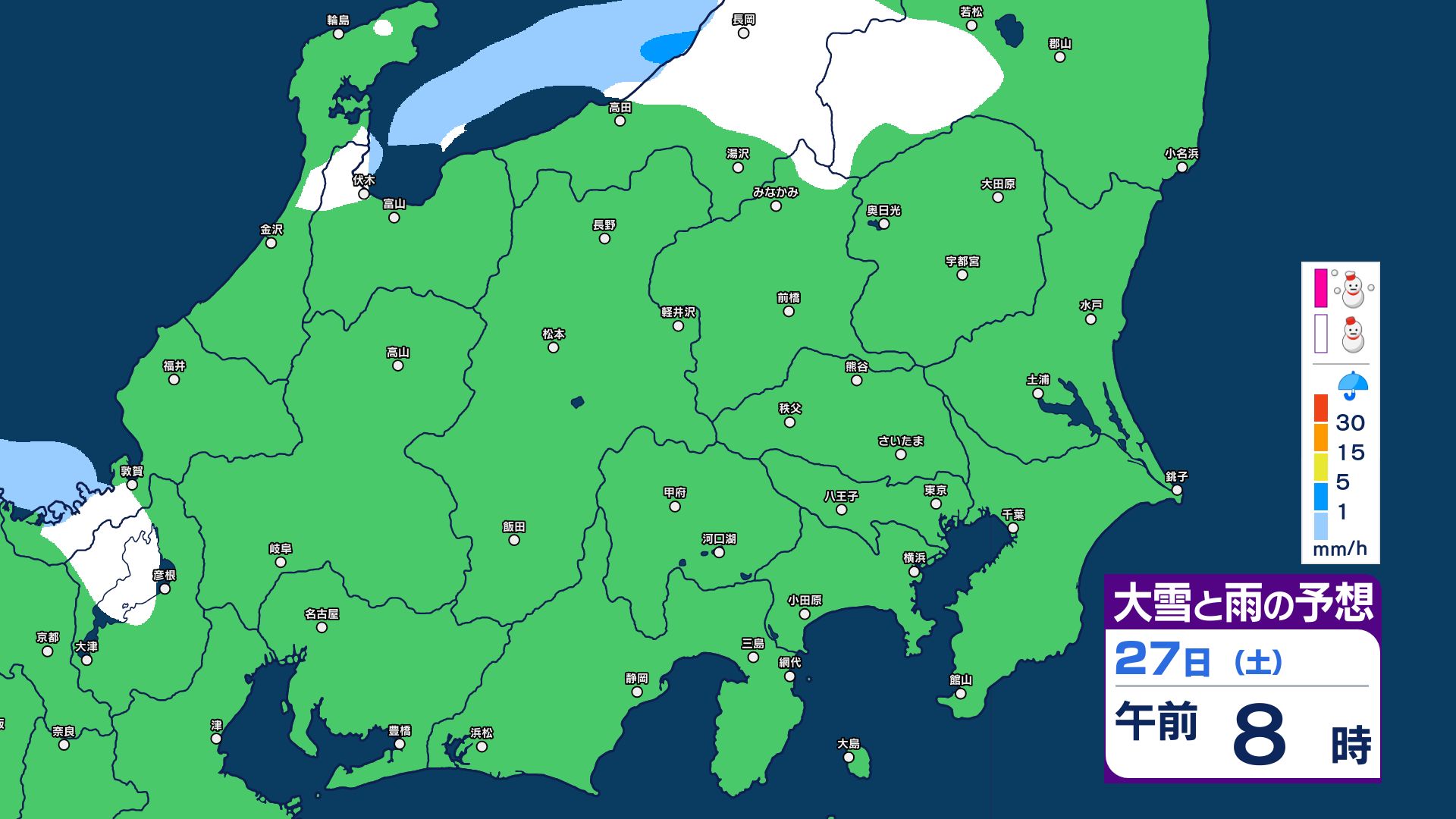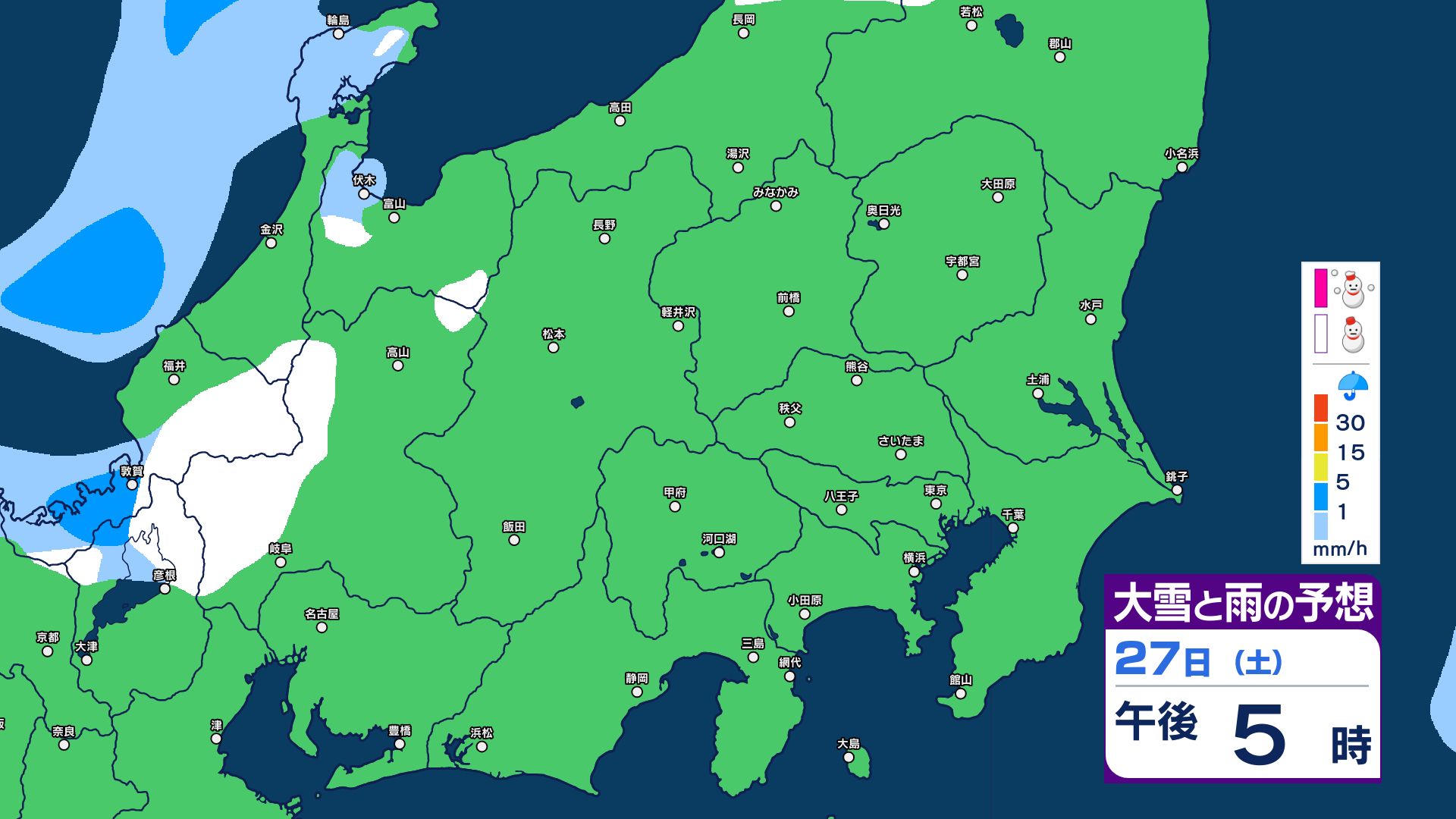 【関東甲信 大雪情報】大雪のおそれ…24時間予想降雪量は甲信50cm・関東北部40cm …