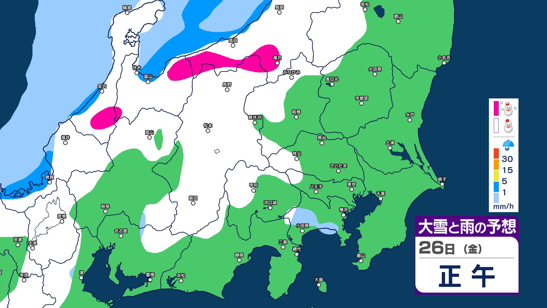 【大雪情報】26日(金)は「JPCZ」が直撃 北陸で60センチ、関東甲信・近畿・東北・中国で50センチ、九州北部で20センチ降雪予想 朝の交通マヒ警戒 雨雪シミュレーション
