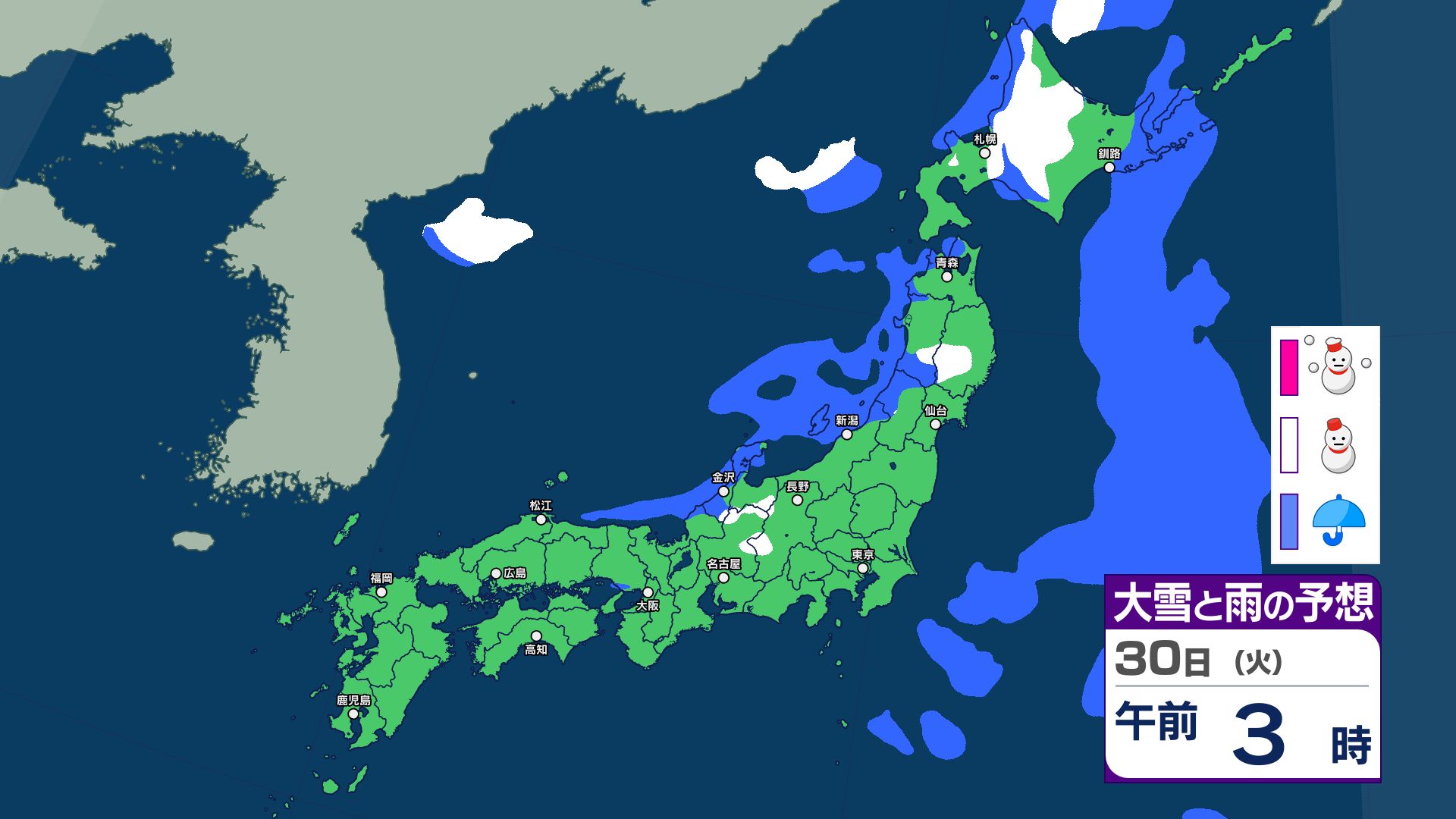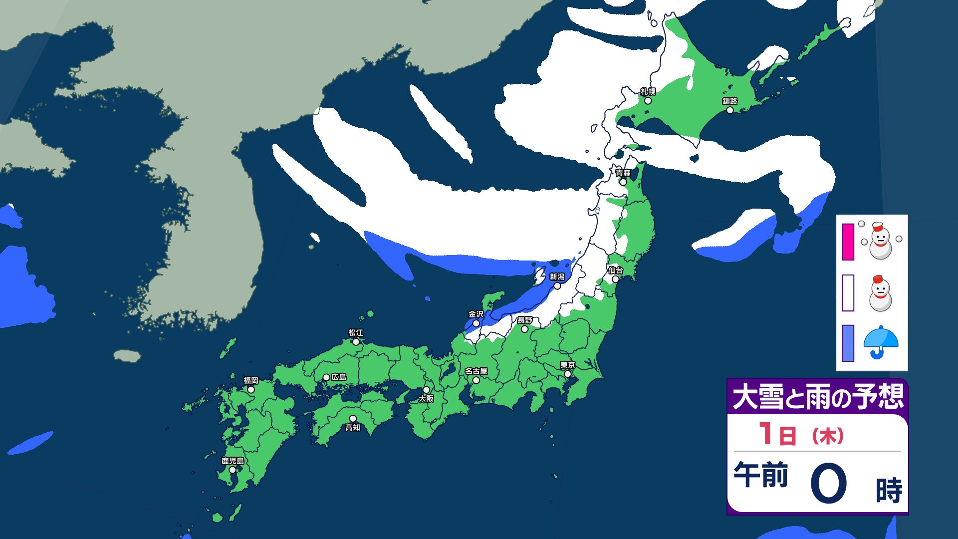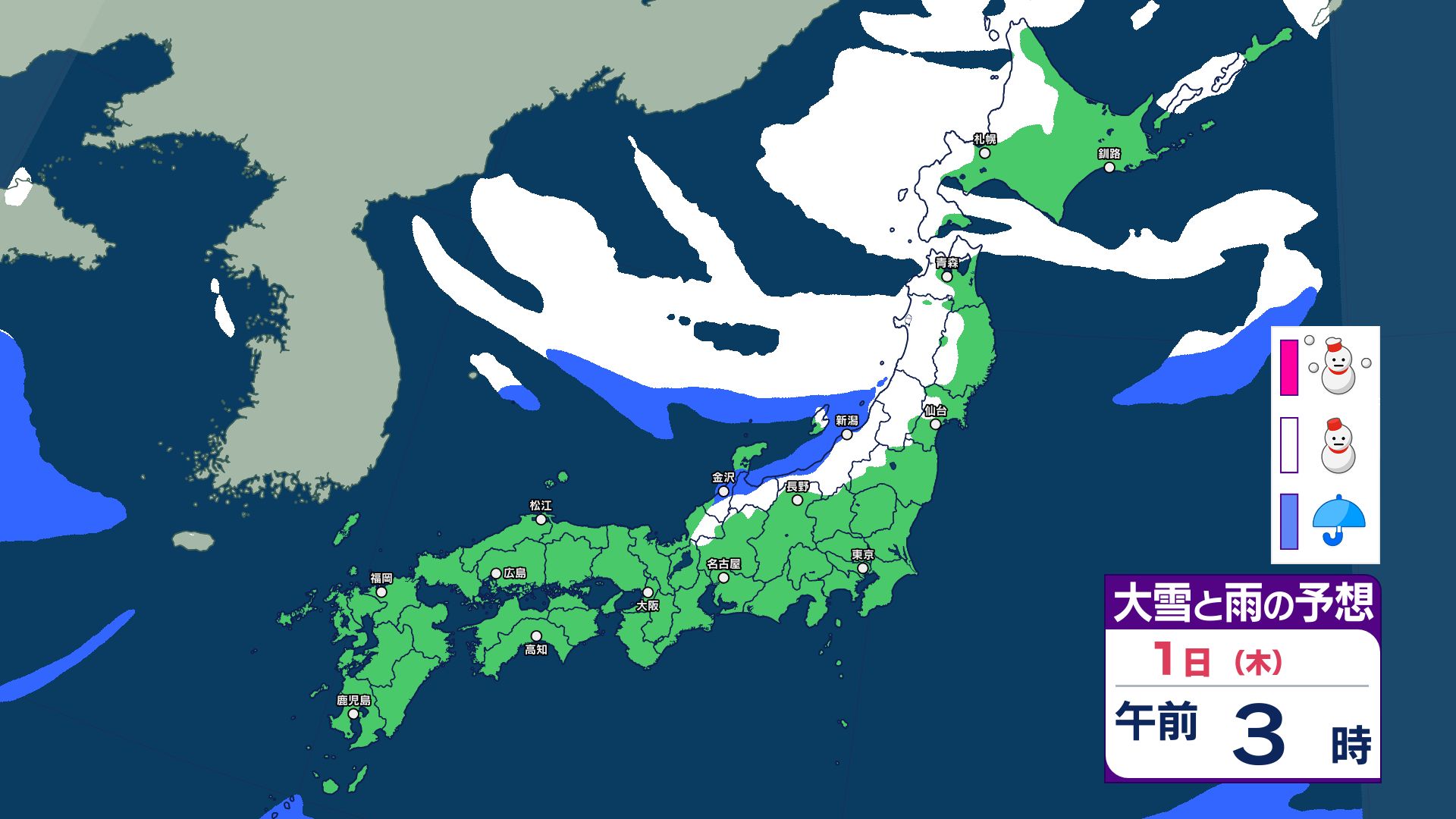 雪と雨のシミュレーション 1月2日