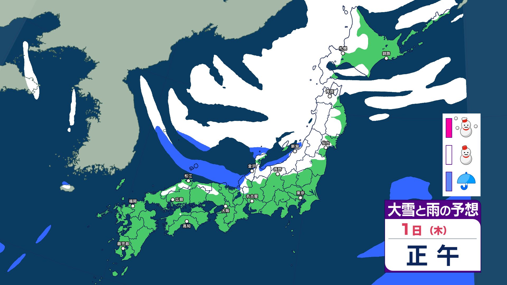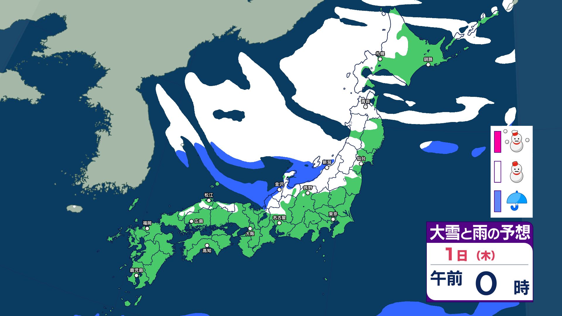 2日は普段雪の少ない地域でも降雪…Uターン注意 3日にかけて冬型の気圧配置続く…日本海側で警報級の大雪の可能性も【31日~1月4日まで 雪と雨のシミュレーション掲載】