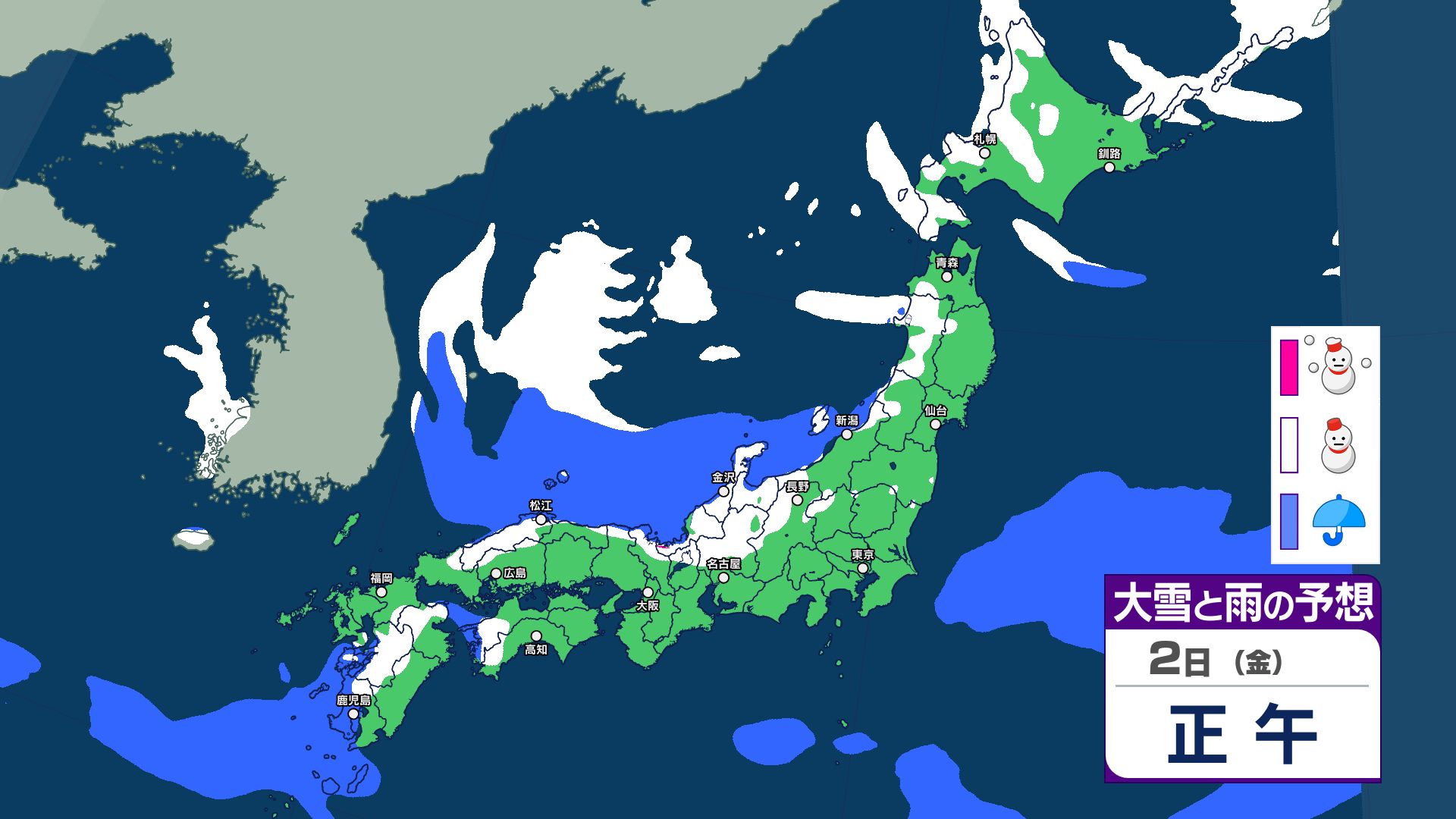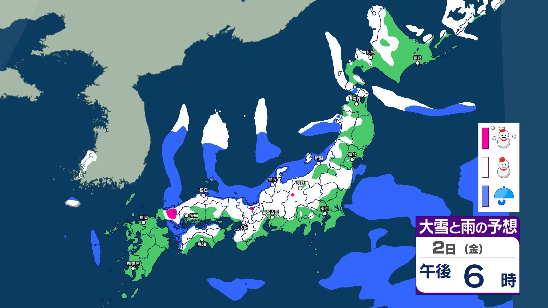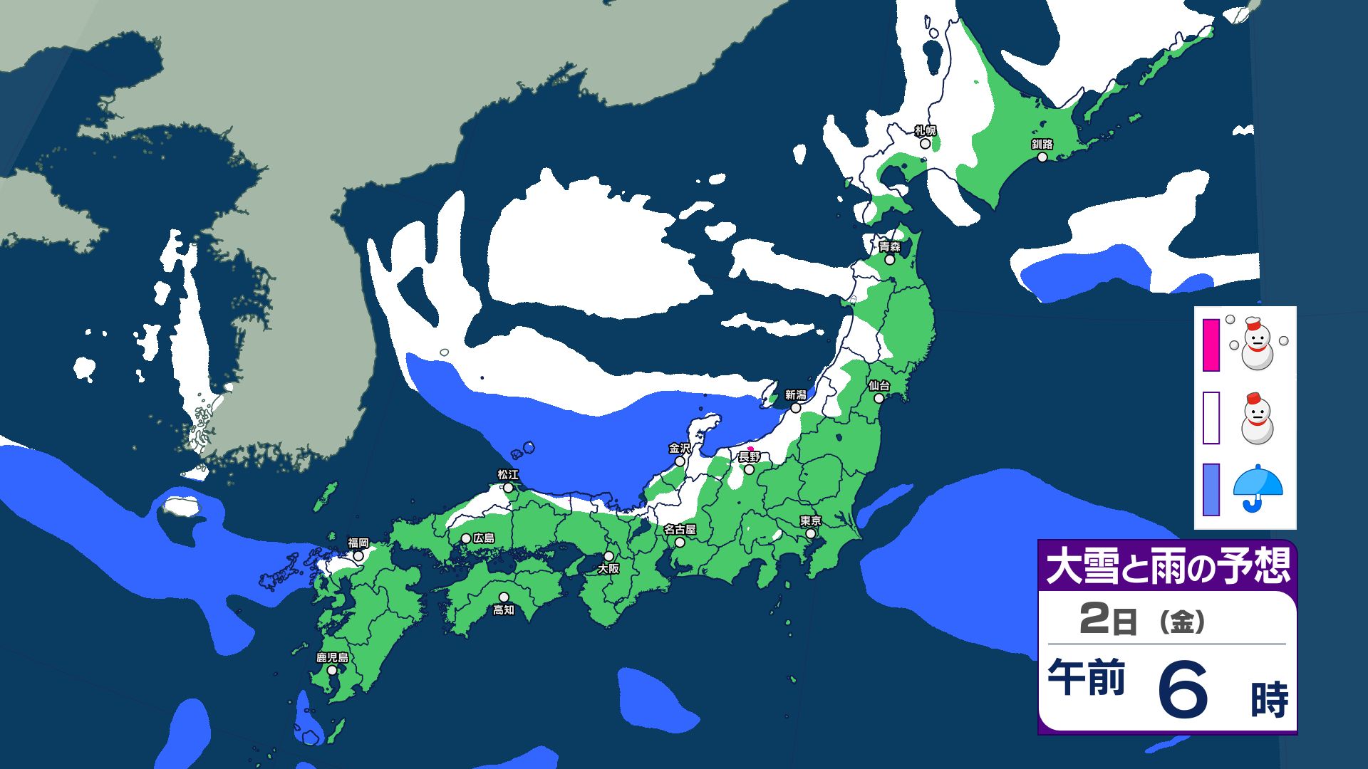 2日は普段雪の少ない地域でも降雪…Uターン注意 3日にかけて冬型の気圧配置続く……