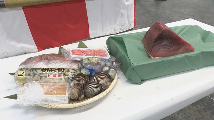 今年は、例年のウニや真鯛などの詰め合わせに、三重県産の本マグロ3キロも加えて、去年より1万円高い3万円で競り落とされました。