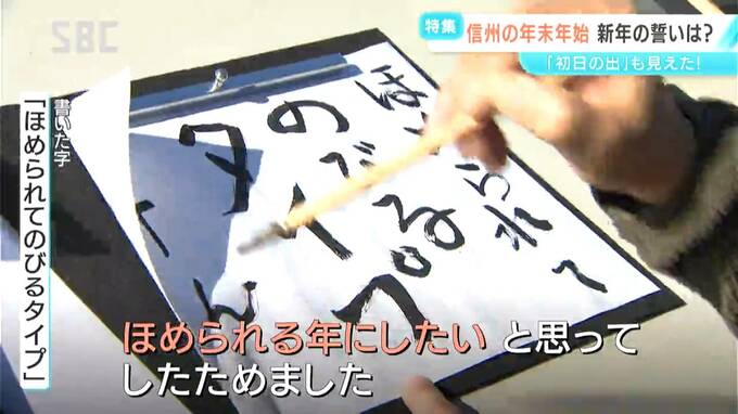 千曲市から:「ほめられたい年にしたいと思って、したためました。仕事でうまくいってみんなによくやったと言われたいです」