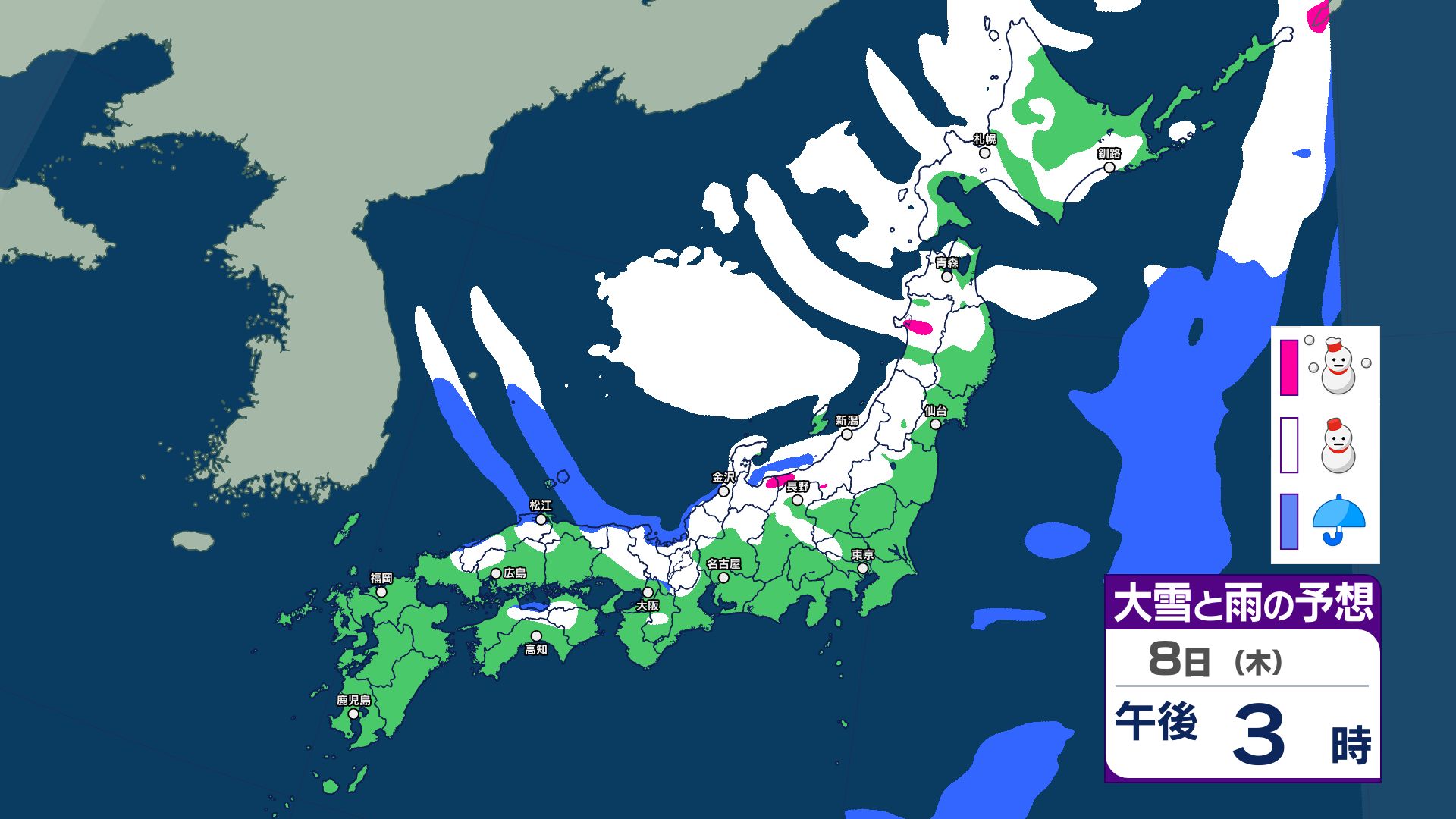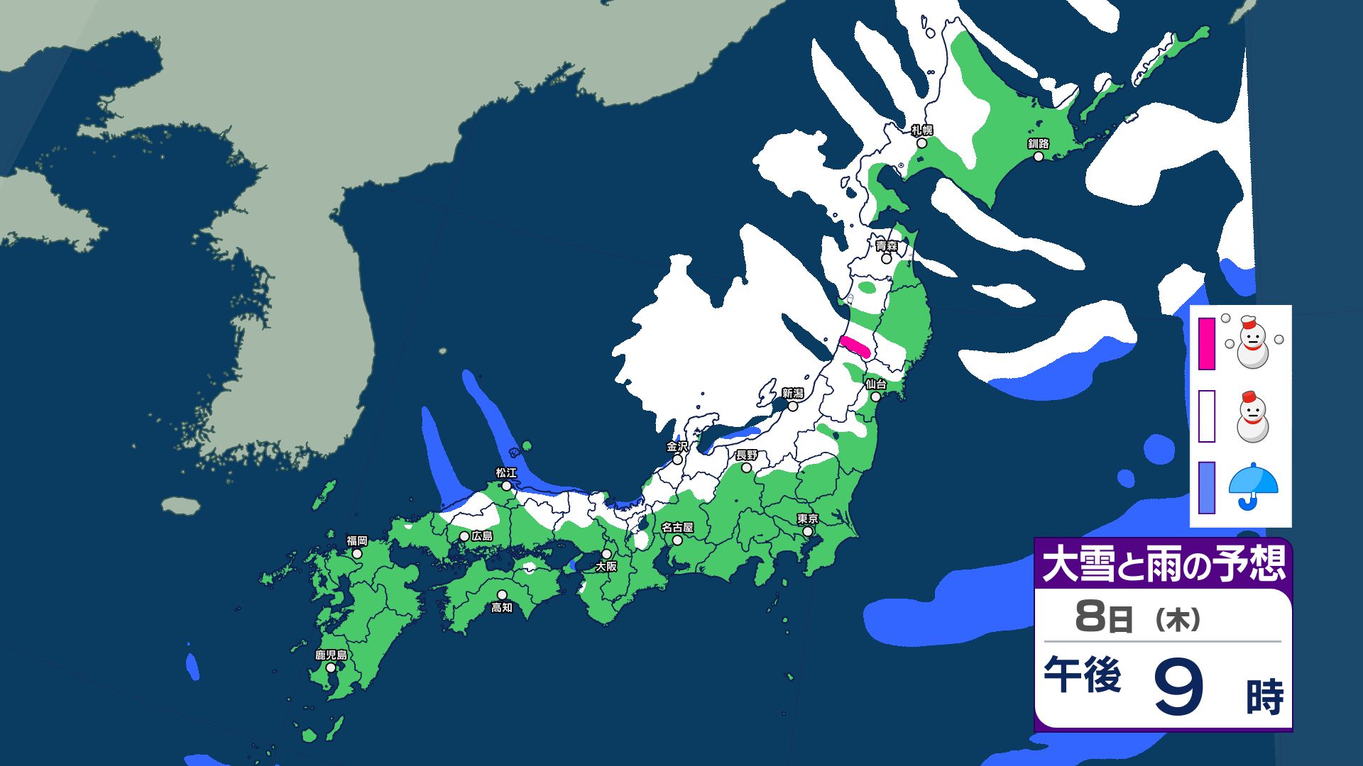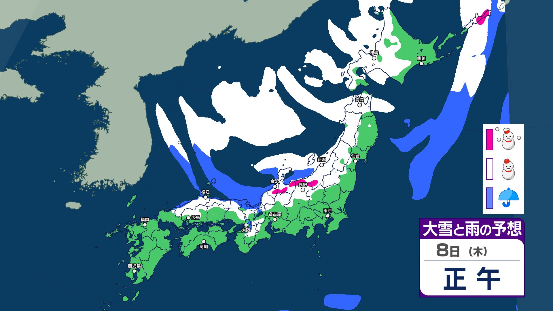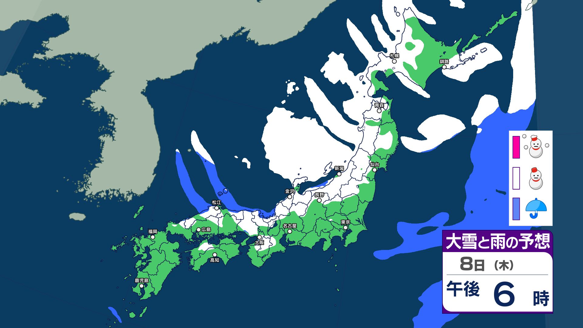 【大雪情報】3連休は成人の日にかけて「警報級の大雪」のおそれ 今シーズン最も強い寒波が南下 【1月8日~13日 雪と雨のシミュレーション掲載】 2026年1月8日(木) 11:54 国内 【雪と雨のシミュレーション 1月13日まで掲載】