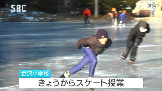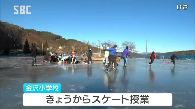 茅野市の小学校で、70年ほど前から続くという伝統の校庭リンクでスケートの滑り初めが行われました。