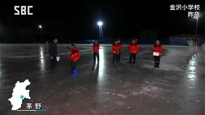 市内の金沢小学校では8日夜、およそ50人が集まり、今シーズンのリンク開きを行いました。
