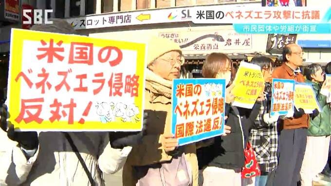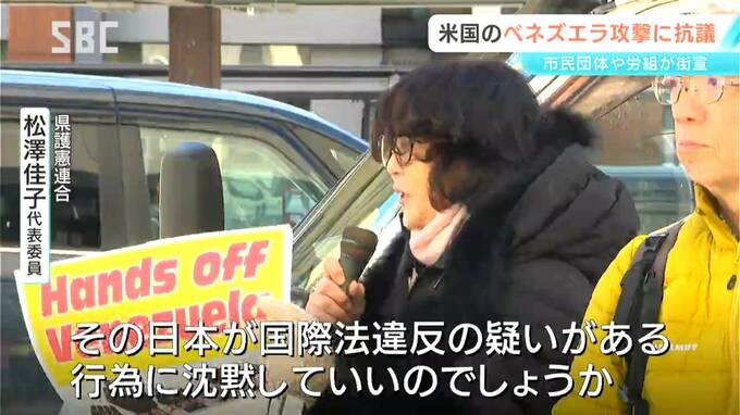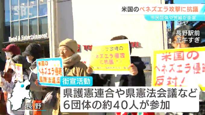アメリカによる南米ベネズエラへの軍事攻撃に抗議するため、県内の市民団体や労働組合が、長野市で街宣活動を行いました。