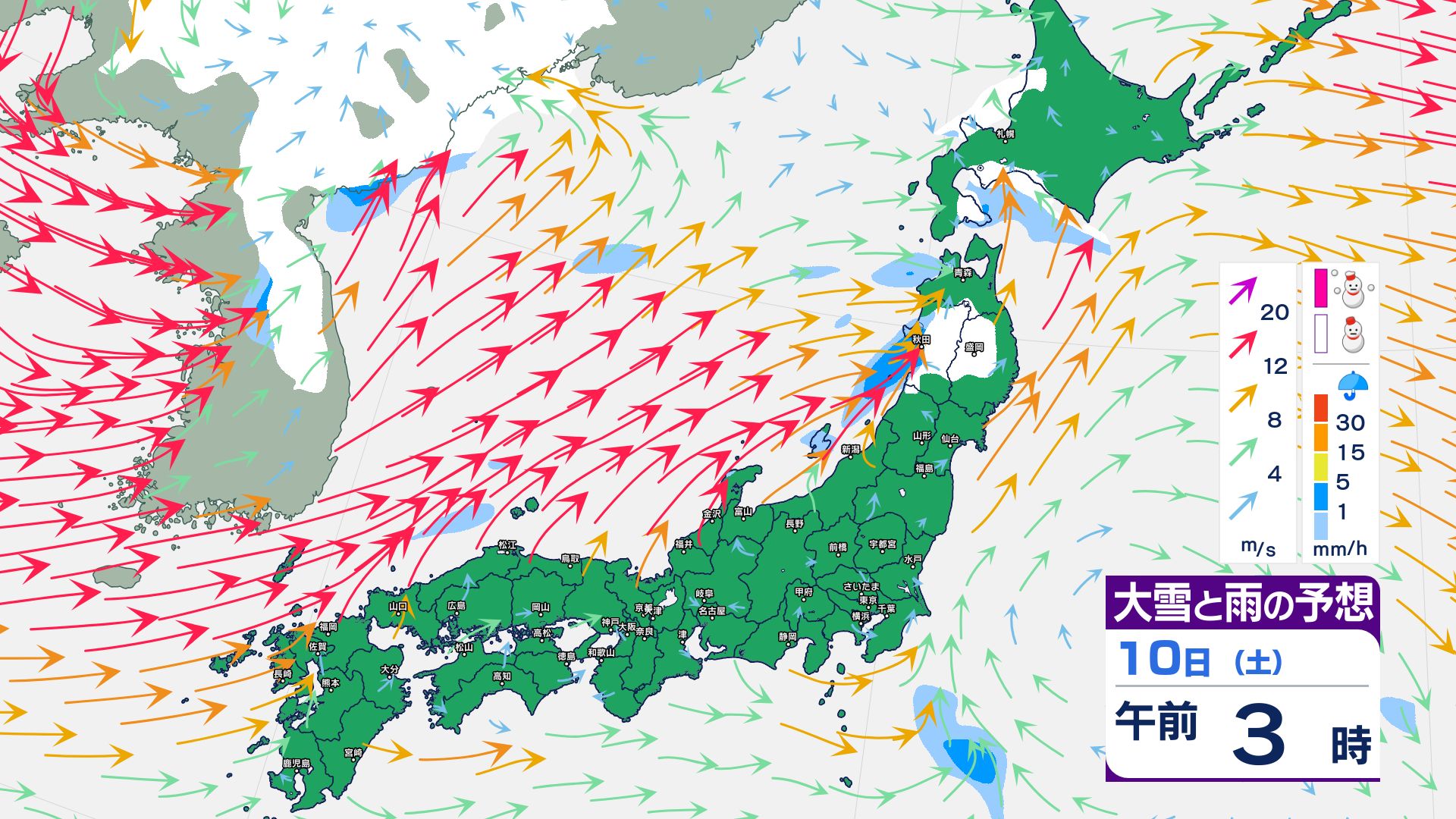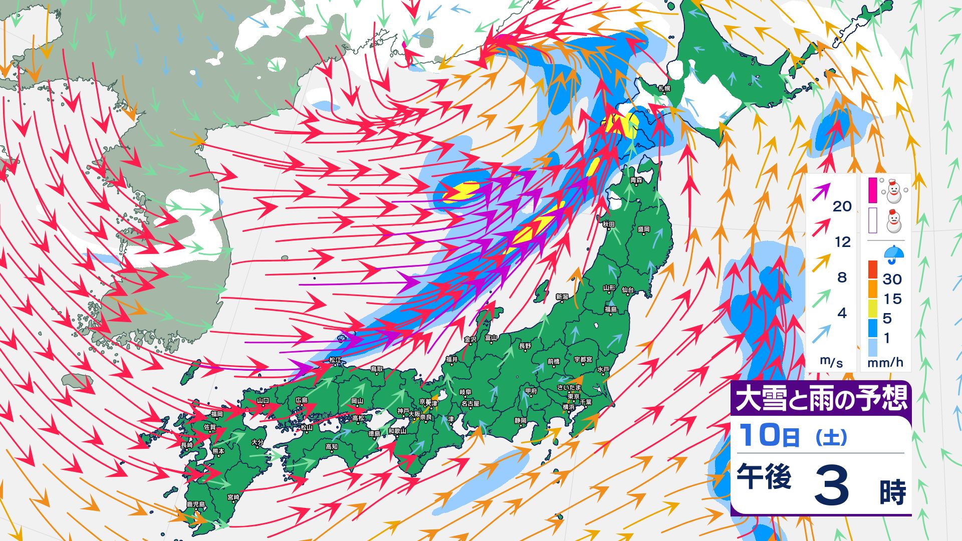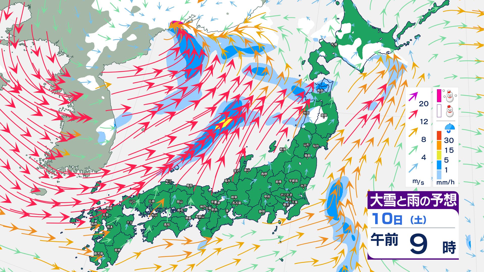 3. 【大雪情報】成人の日(1月12日)にかけて3連休は大雪警戒 11日~12日頃は猛ふぶきや大雪による交通障害に注意【1時間ごと 1月9日~12日雪と風のシミュレーション掲載】