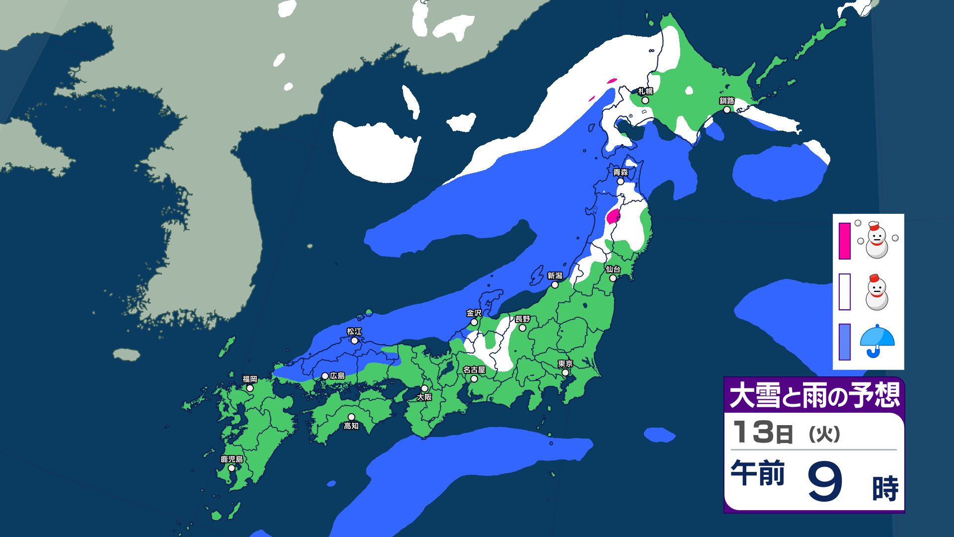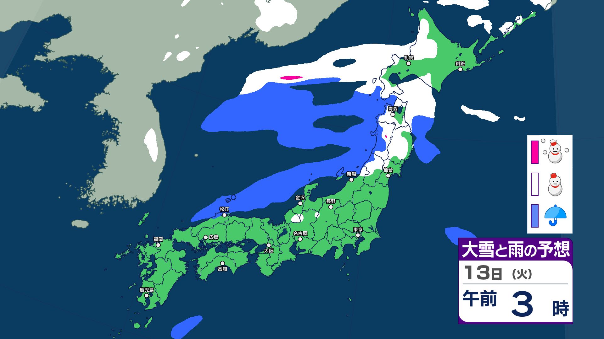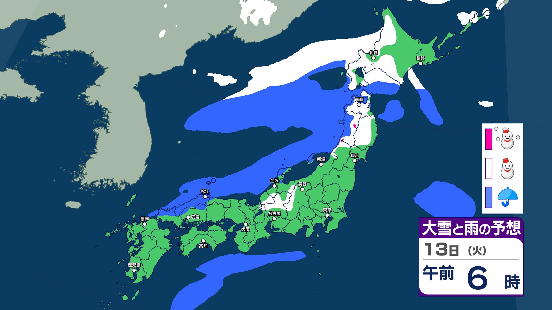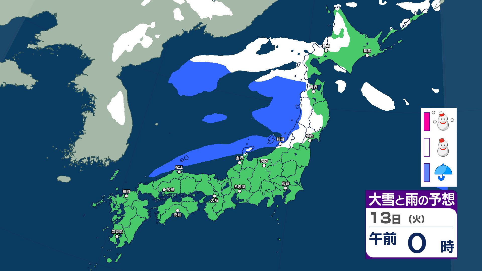 【大雪警報】今夜が最大の山場 JPCZ停滞で東北80cm・北陸東海70cm予想 13日(火)に「第2波」襲来か 雨雪シミュレーション