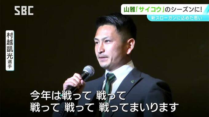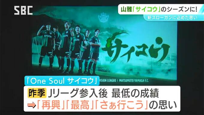 山雅の新シーズンのスローガンは、「OneSoulサイコウ」。昨シーズン、Jリーグ参入後、最低の成績に終わったクラブの熱を再び興(おこ)す「再興」と、「最高」のシーズンにするとの思いが込められています。