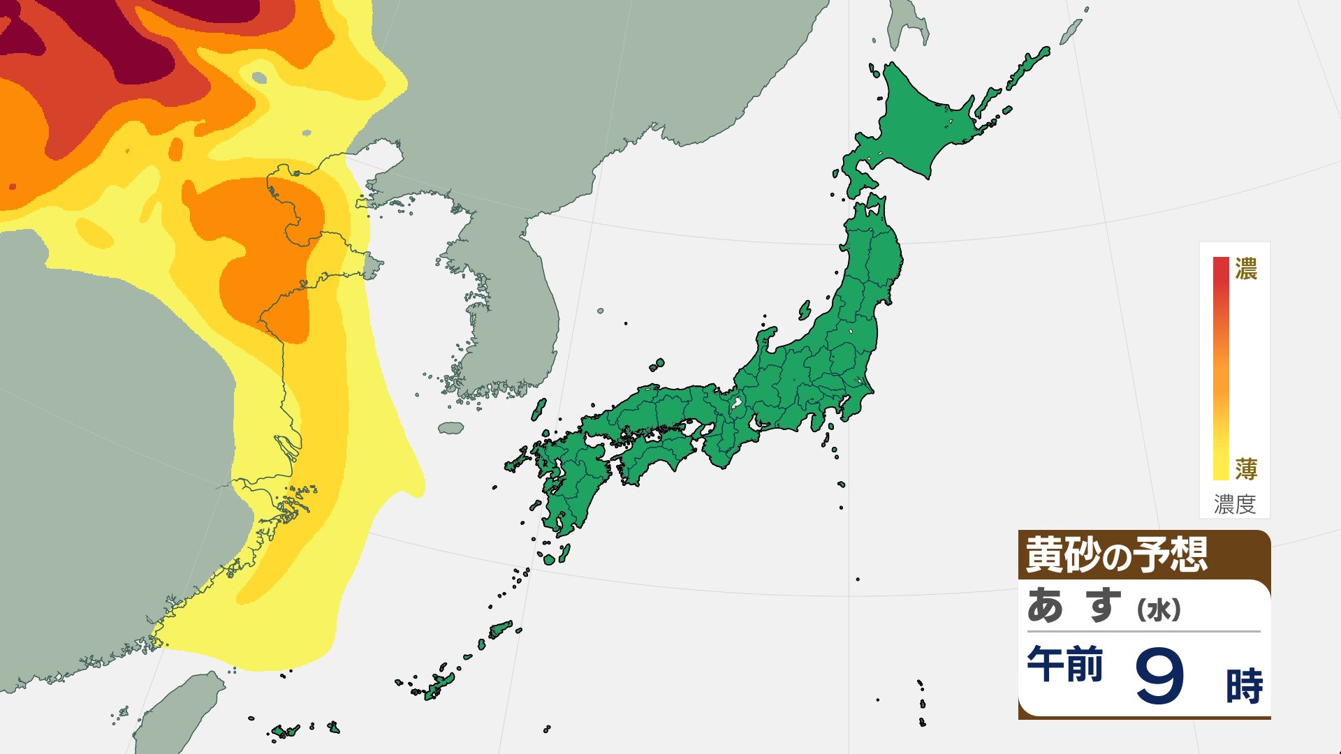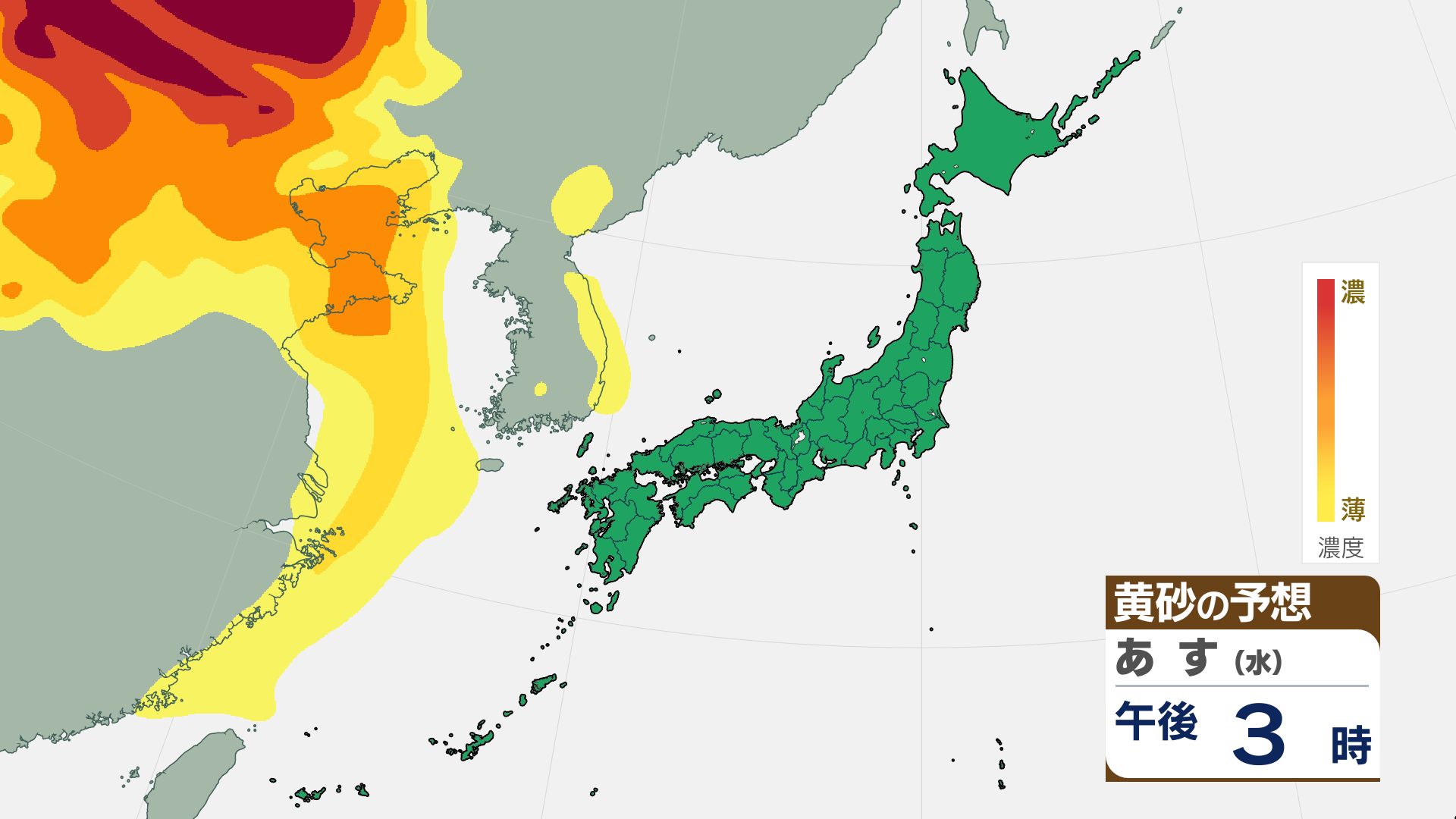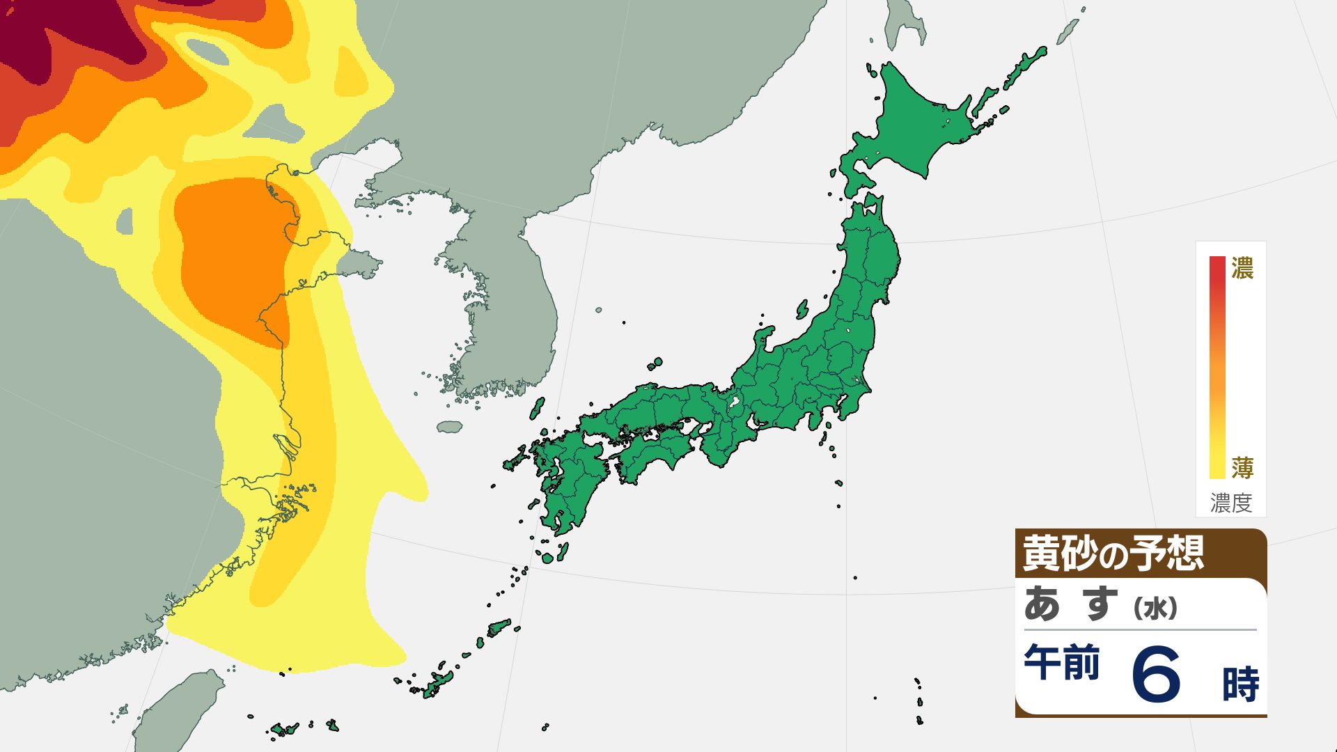 【黄砂情報】16日(金)には関東甲信など広い範囲が覆われる見込み【3時間ごとの黄砂予想シミュレーション画像】気象庁 屋外での洗濯物などに注意