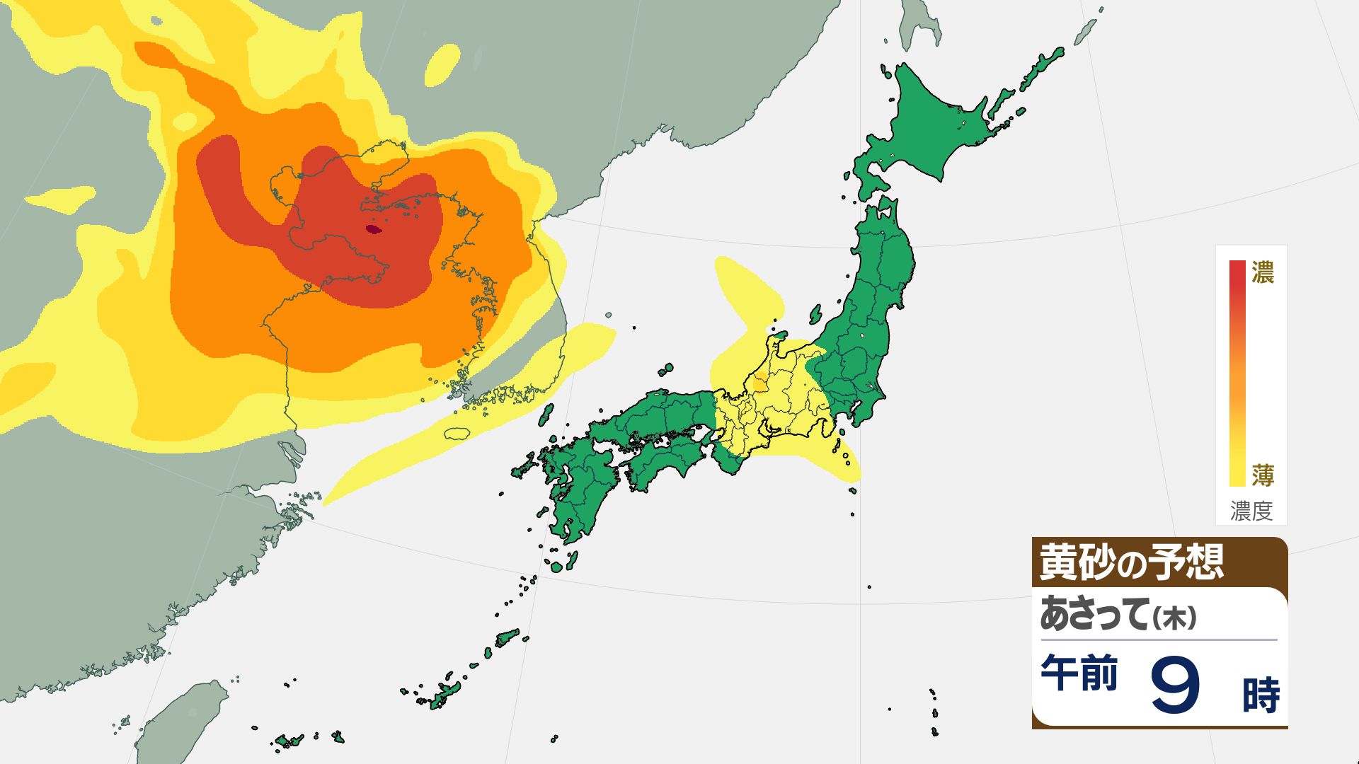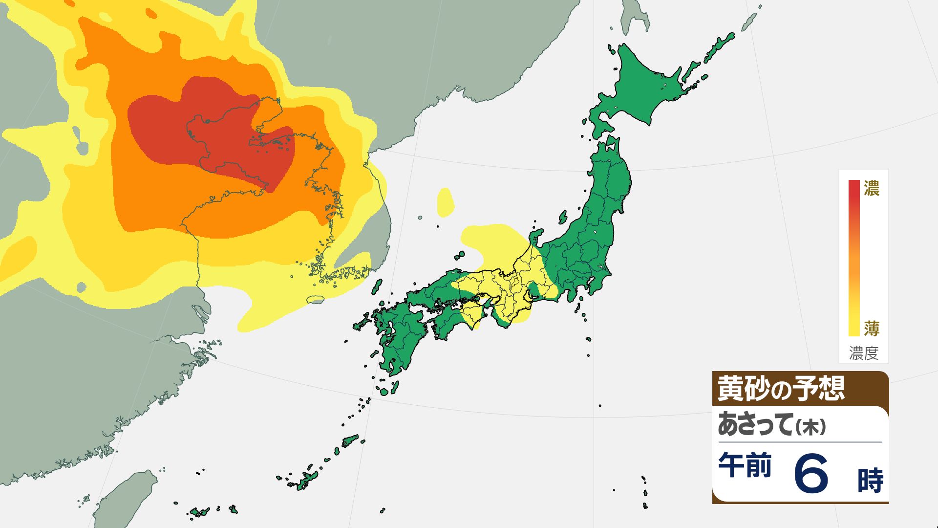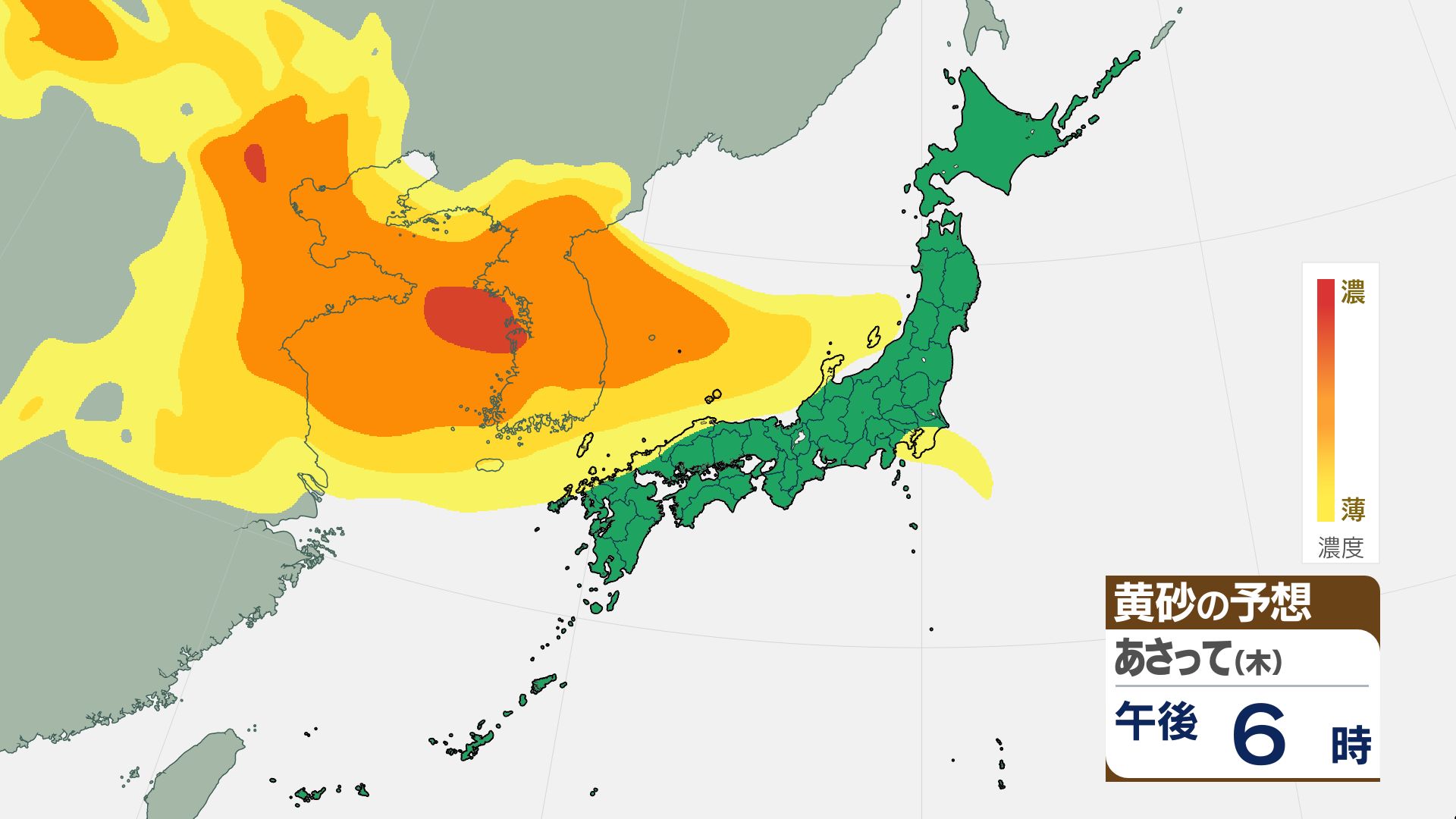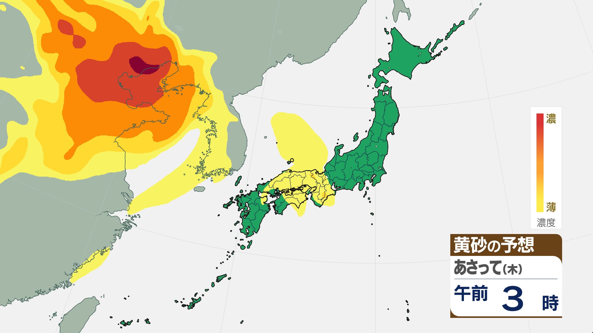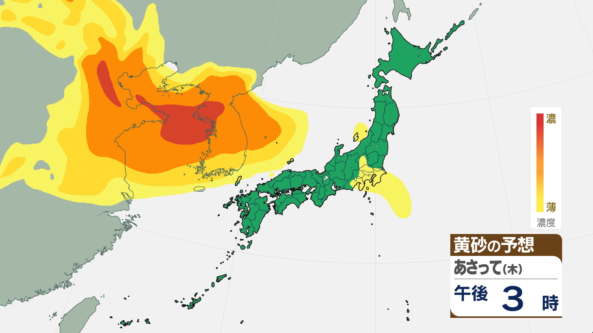 【黄砂情報】16日(金)には関東甲信など広い範囲が覆われる見込み【3時間ごとの黄砂予想シミュレーション画像】気象庁 屋外での洗濯物などに注意