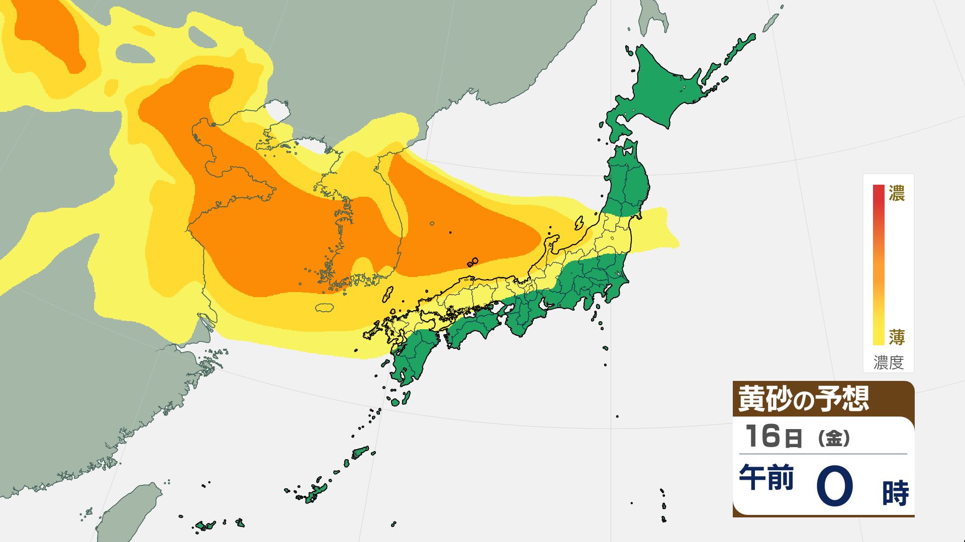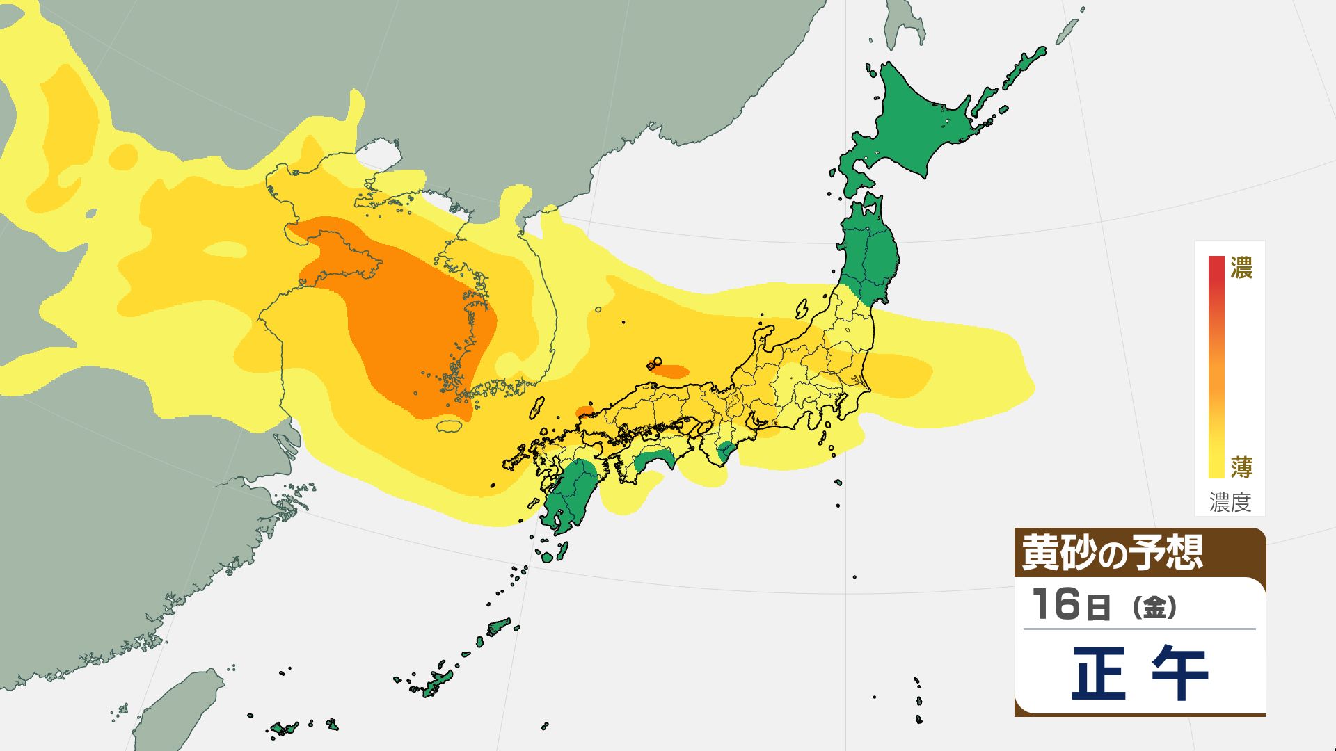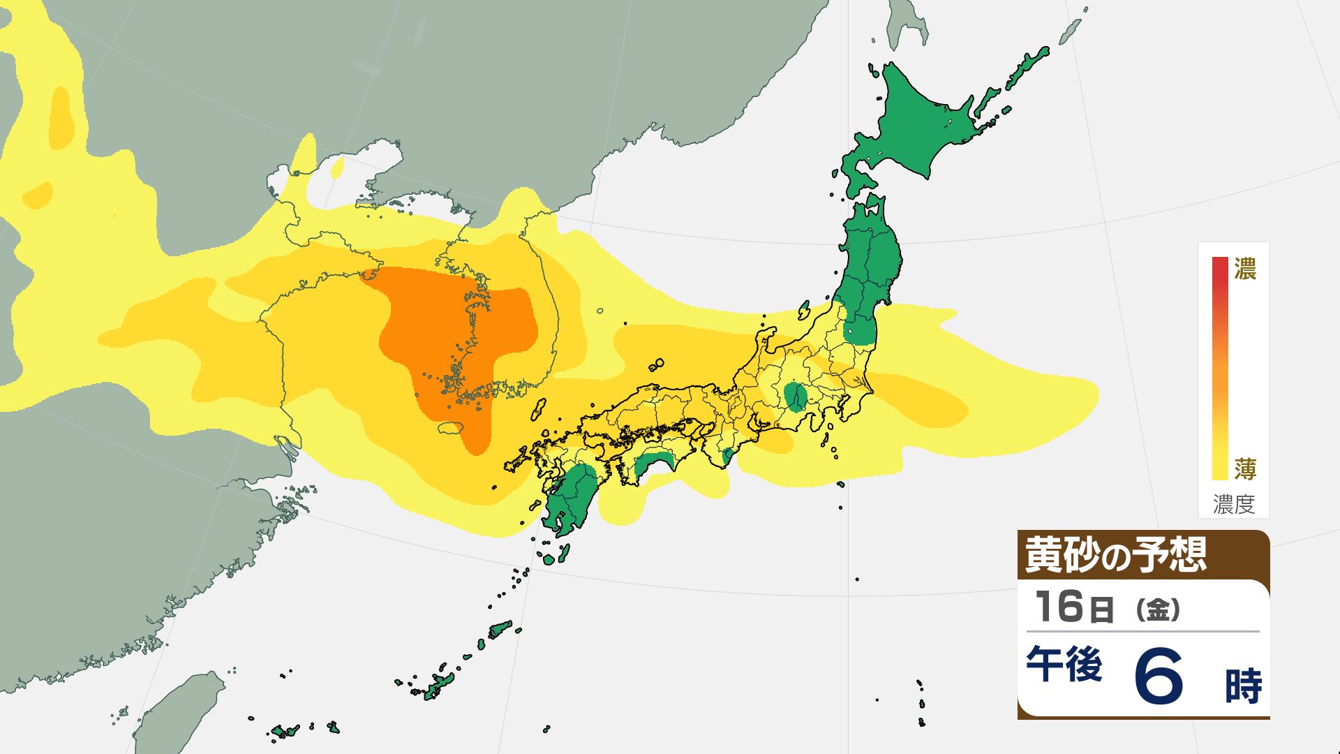 【黄砂情報】16日(金)には関東甲信など広い範囲が覆われる見込み【3時間ごとの黄砂予想シミュレーション画像】気象庁 屋外での洗濯物などに注意