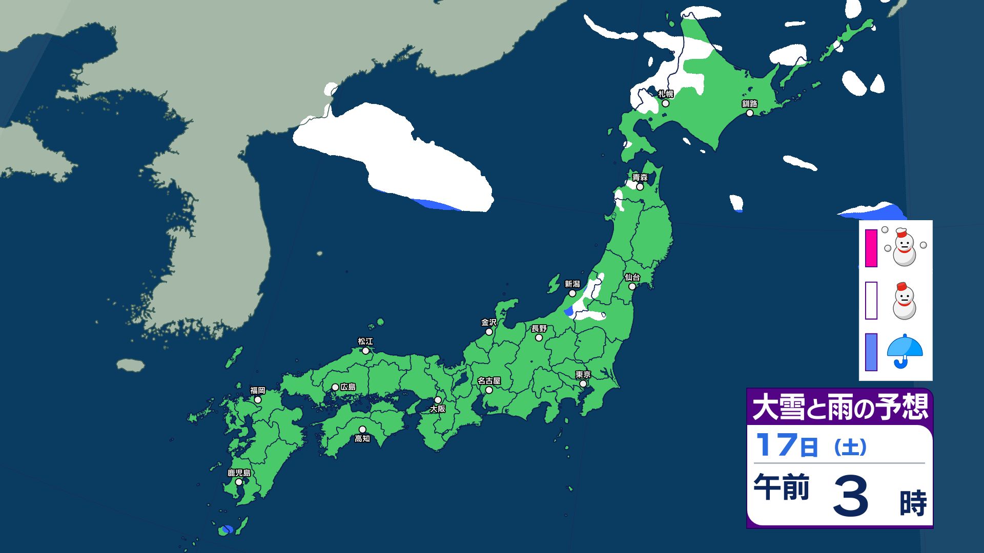 寒冷前線が西日本から北日本を通過する見込み…東日本も16日にかけて急な強い雨などに注意 【雪と雨のシミュレーション掲載 1月20日まで】
