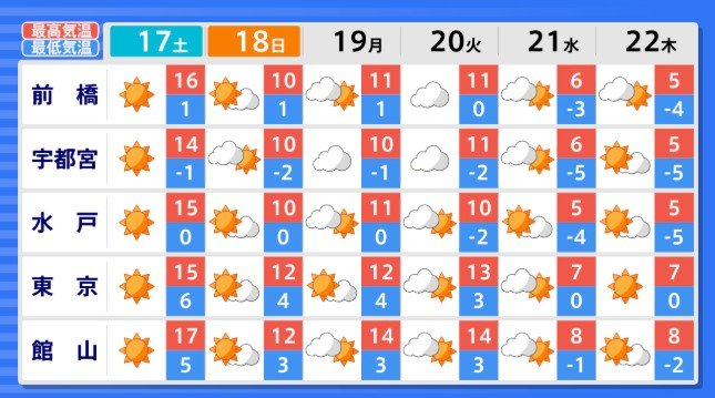 関東甲信地方の気温は、1月20日頃まで寒気の影響を受けにくい