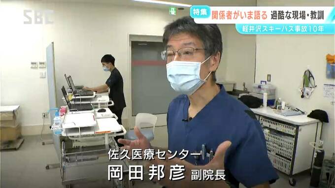 佐久医療センター・岡田邦彦副院長:「救急車がそこに止まって救急車から降りてストレッチャーがきてこちらの方へ。ベッドを3つ用意していたのでベッドの方へそれぞれ患者さんを運んで」