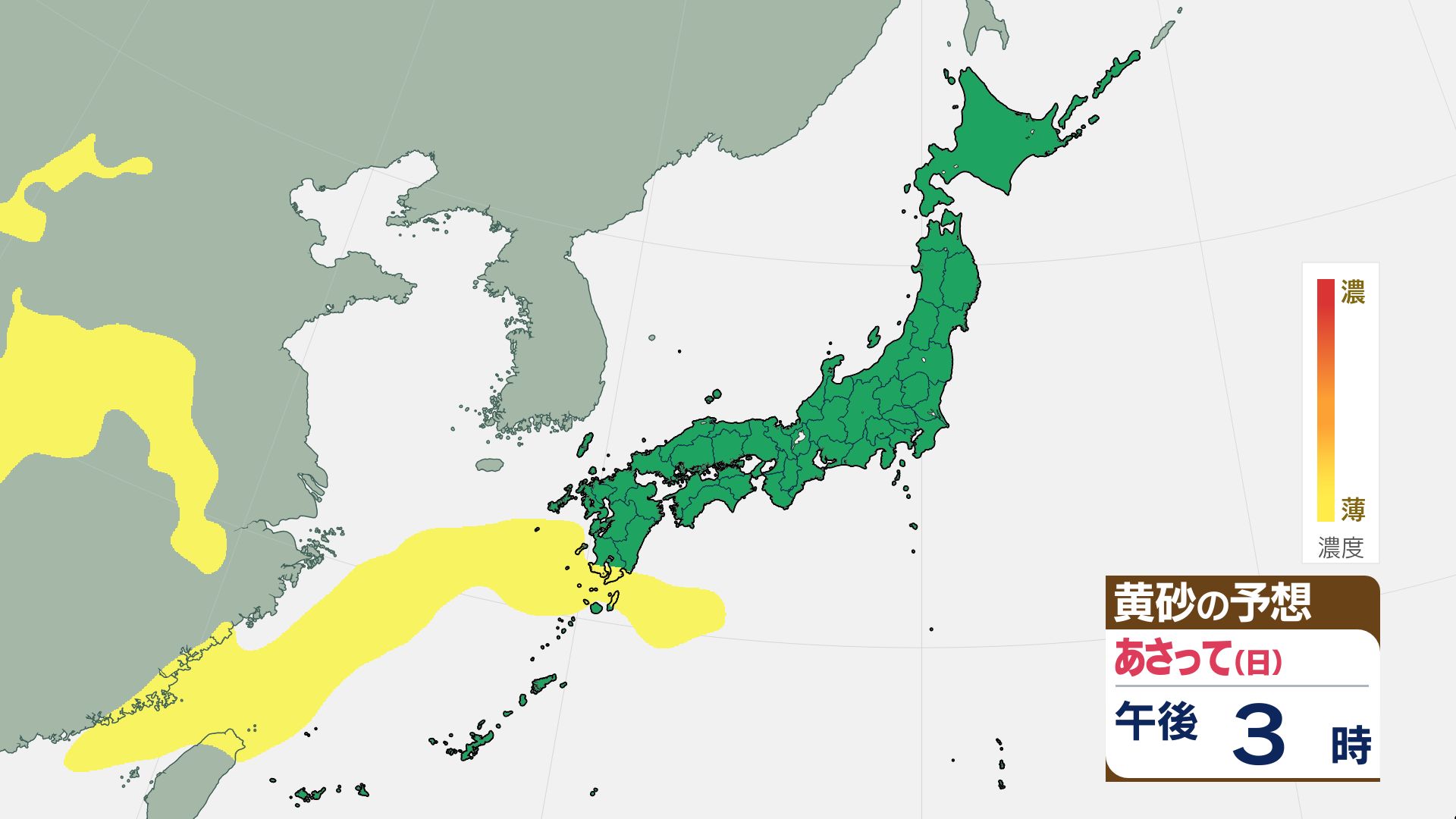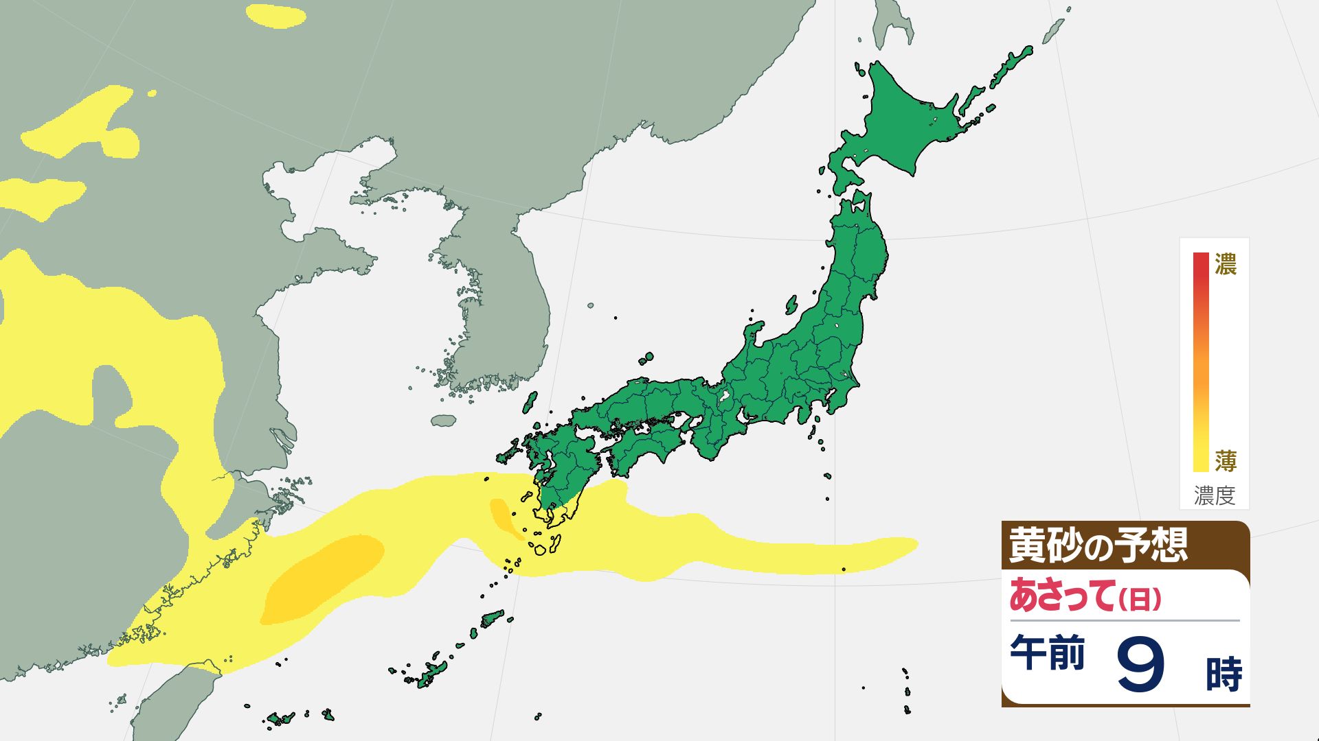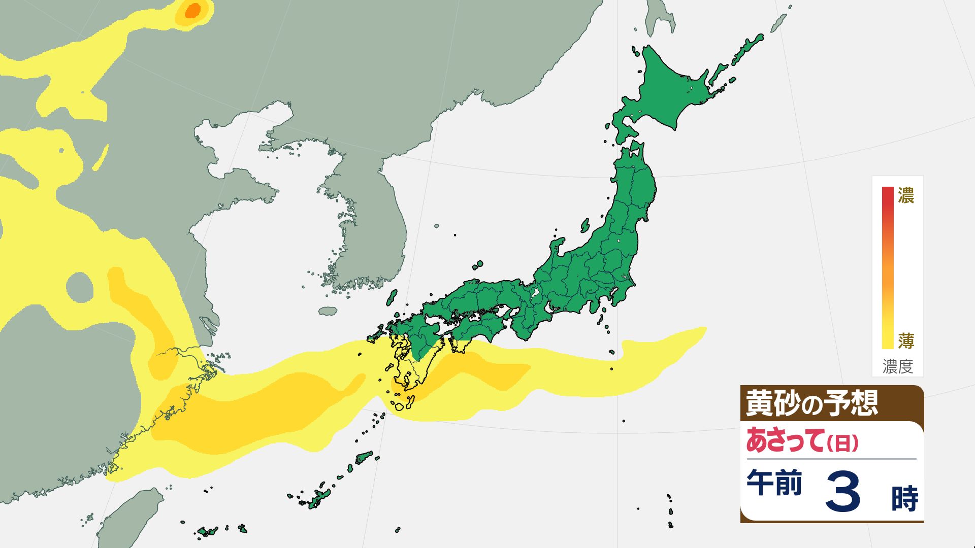 【黄砂情報】きょう(16日)から広い範囲で黄砂が飛来【黄砂の予想シミュレーション画像】気象庁 屋外での洗濯物などに注意