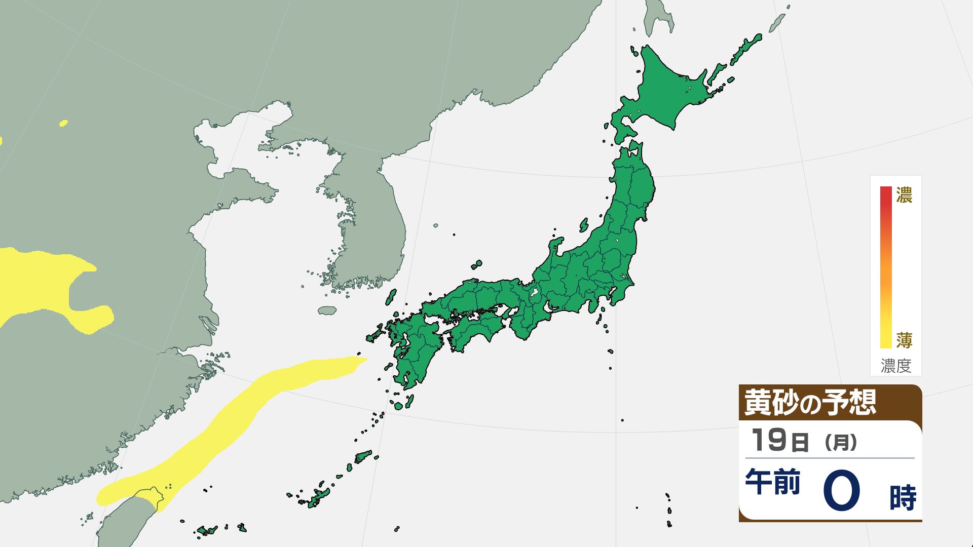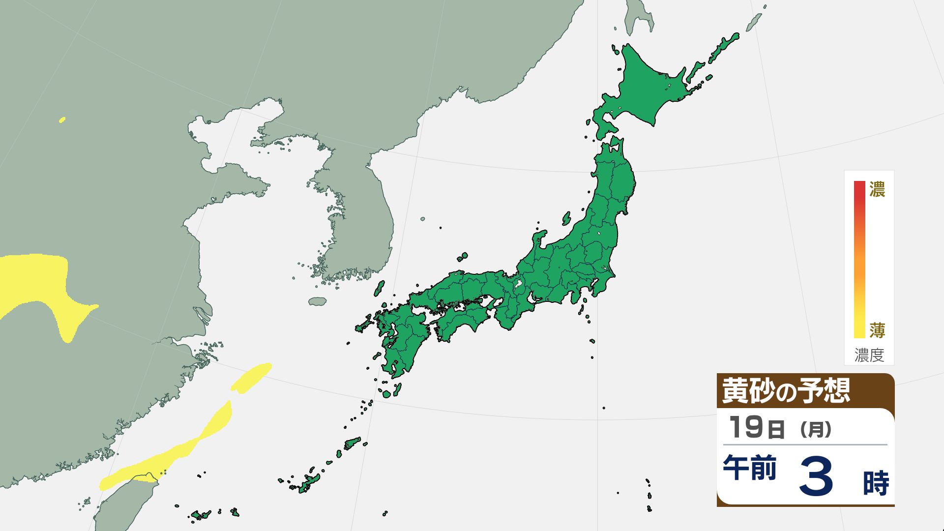 【黄砂情報】きょう(16日)から広い範囲で黄砂が飛来【黄砂の予想シミュレーション画像】気象庁 屋外での洗濯物などに注意