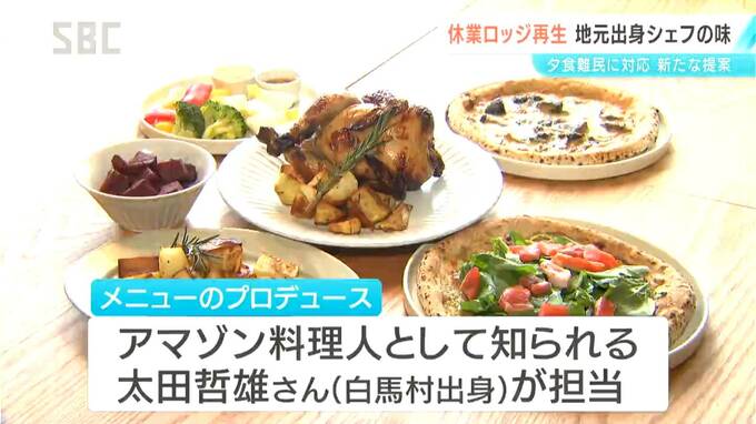 メニューは、白馬出身のシェフ太田哲雄さんがプロデュース。看板メニューのチキンのグリルや、地元の食材などを使ったテイクアウト可能なピザなどを提供します。