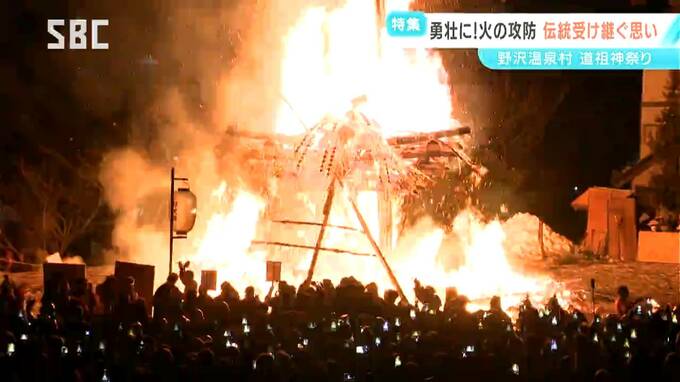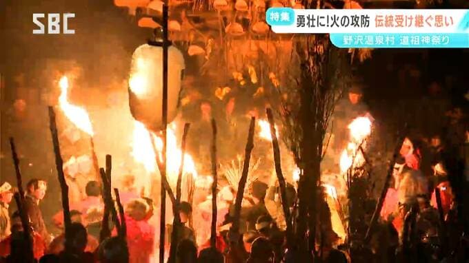村民が次々と、火のついたたいまつを手に社殿に突進します。待ち構えるのは篠田さんなど25歳厄年の男たち。