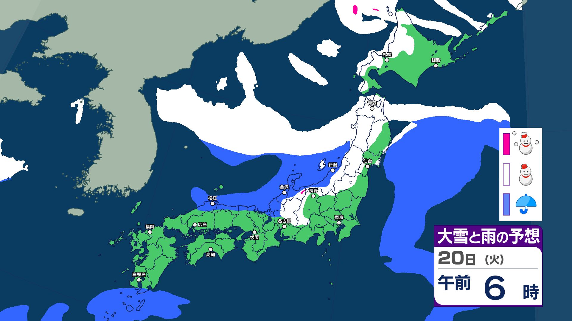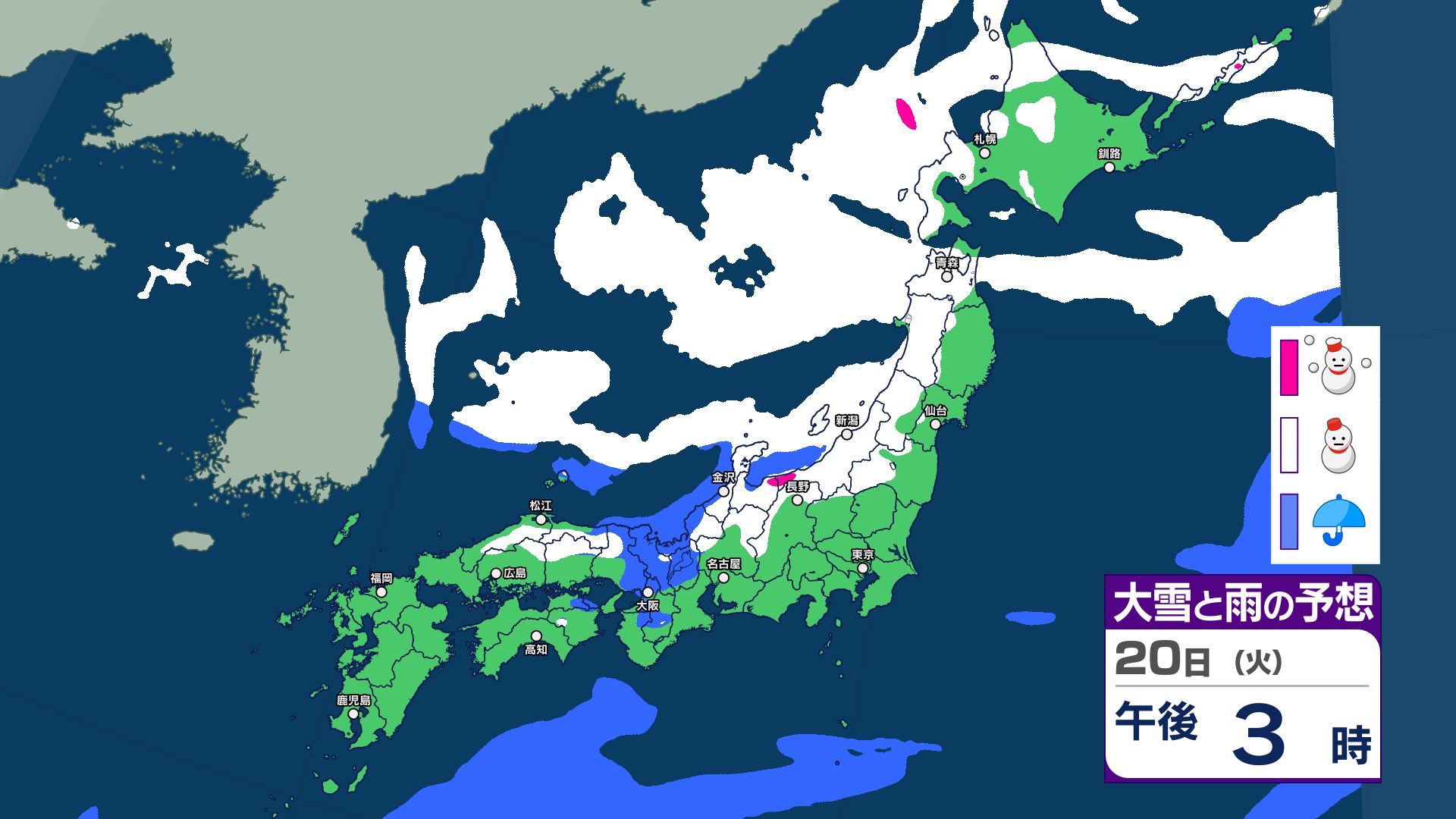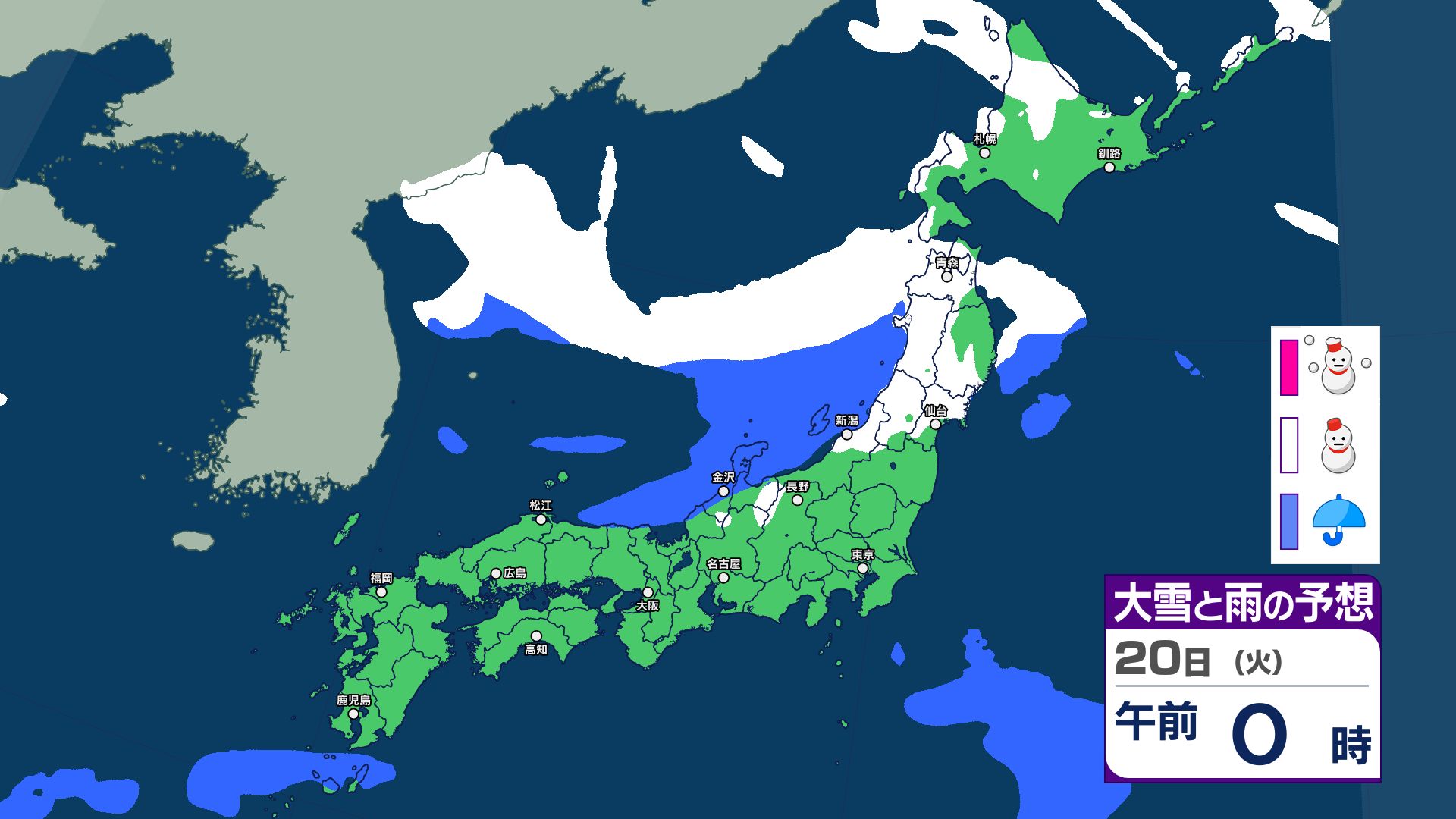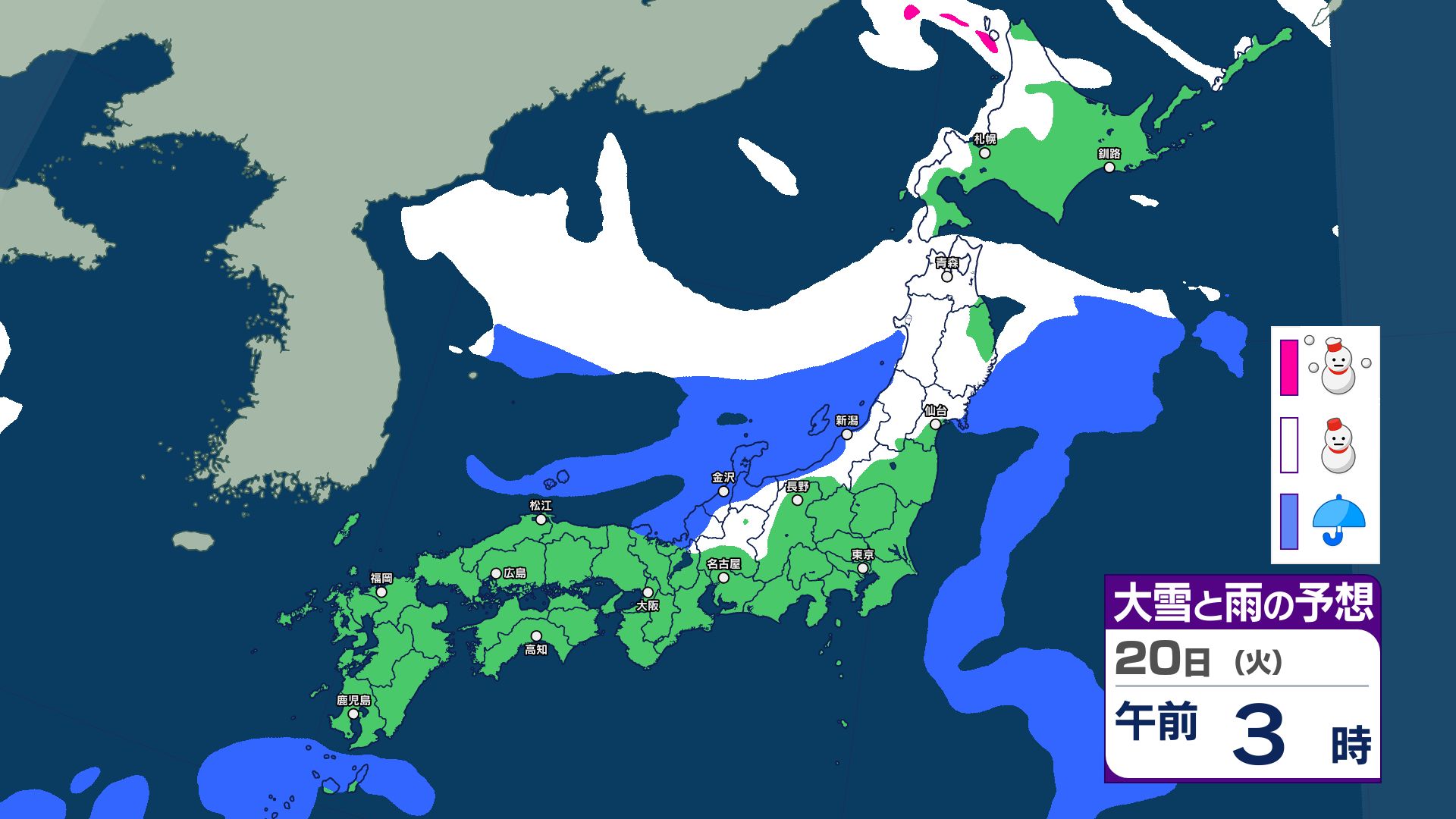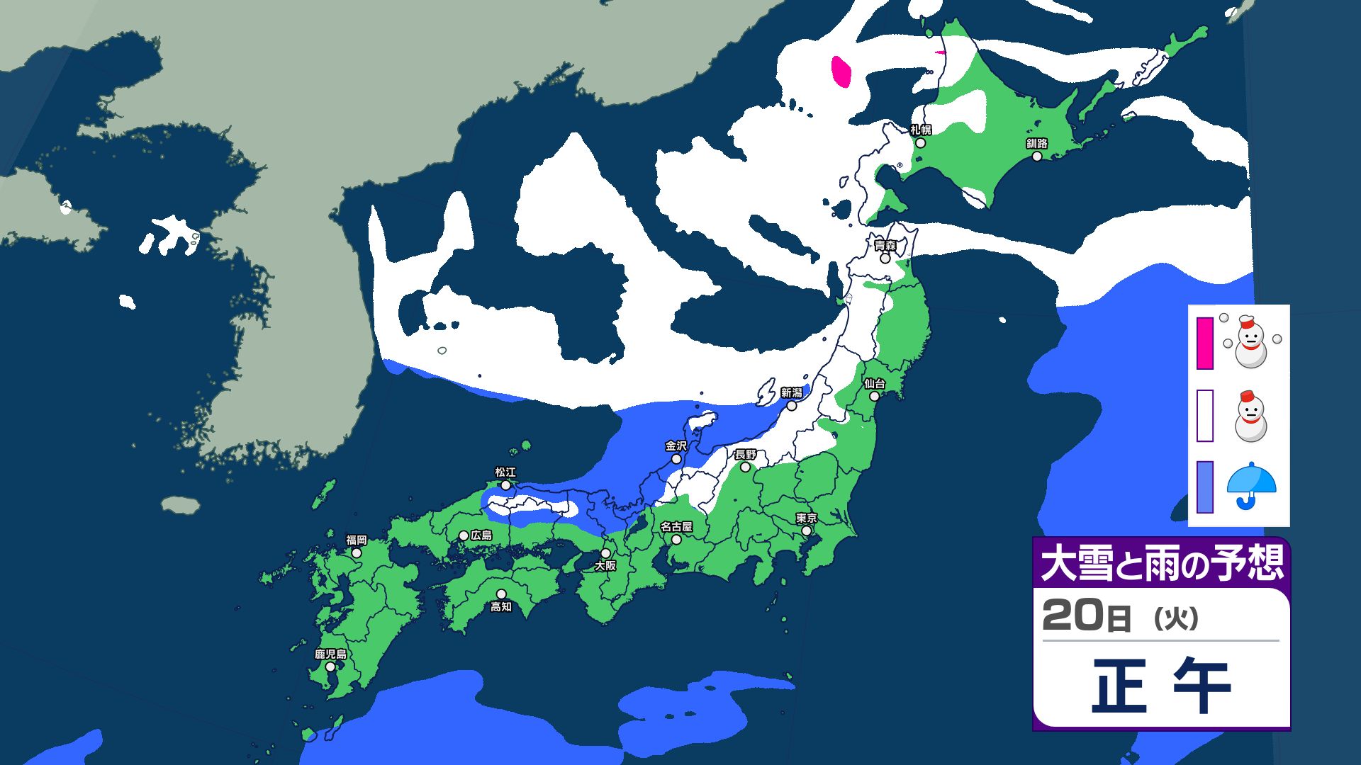 【大雪情報】強い寒気が南下 21⽇(水)~22⽇(木)は日本海側で「⼤雪」の可能性【雪…