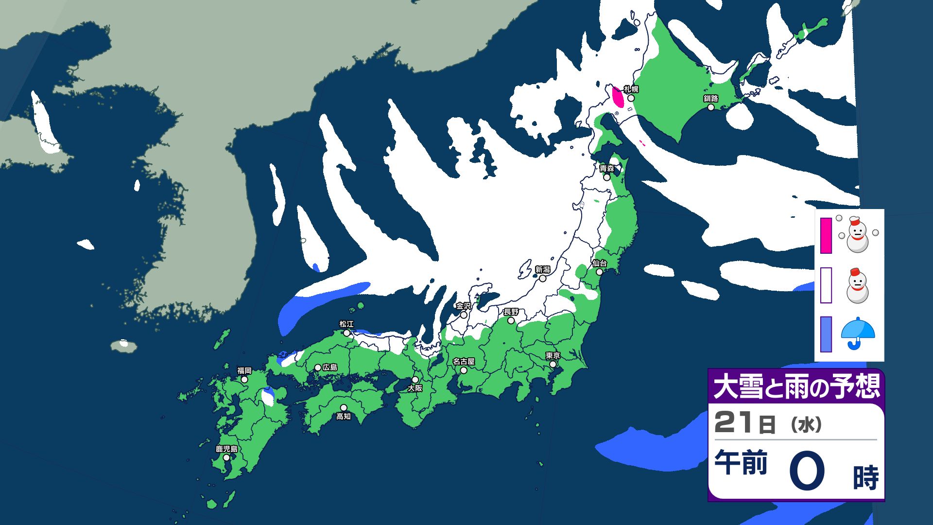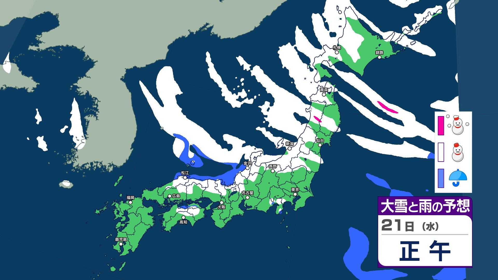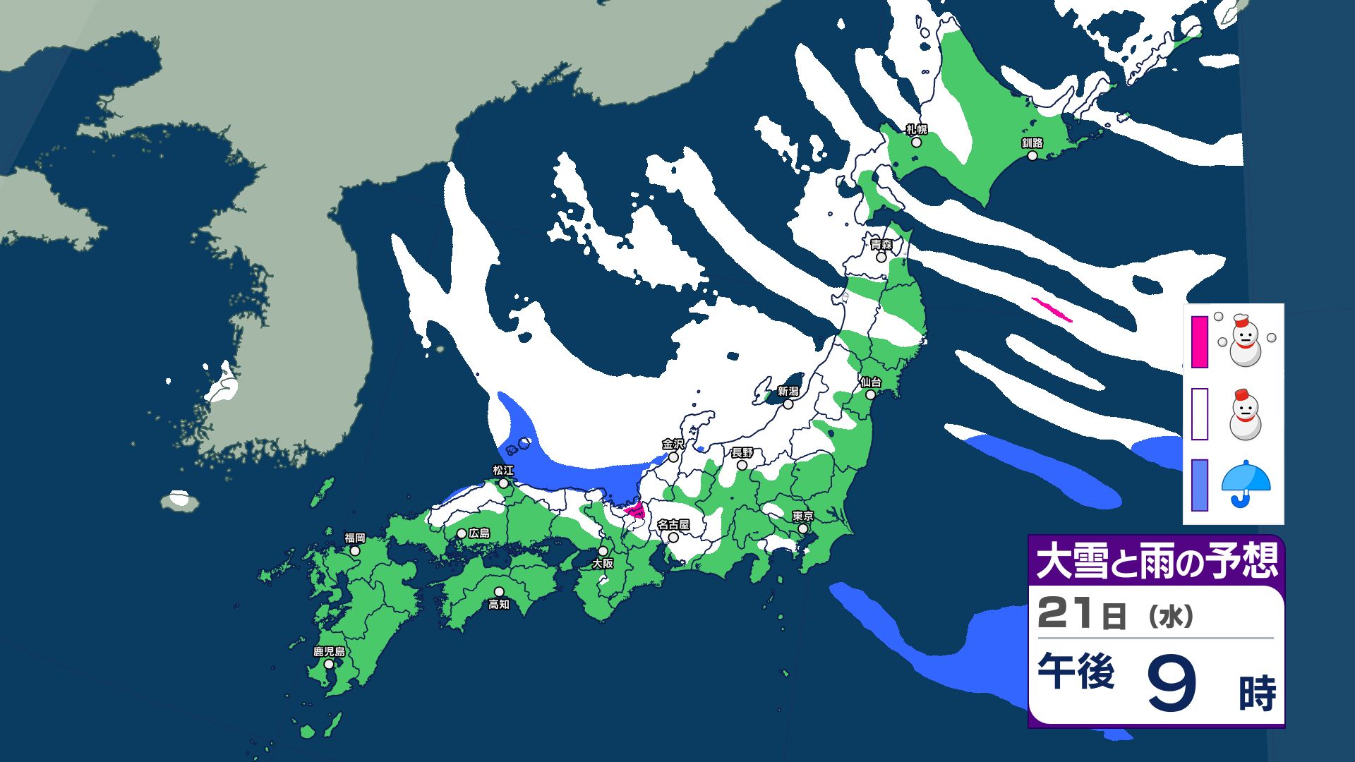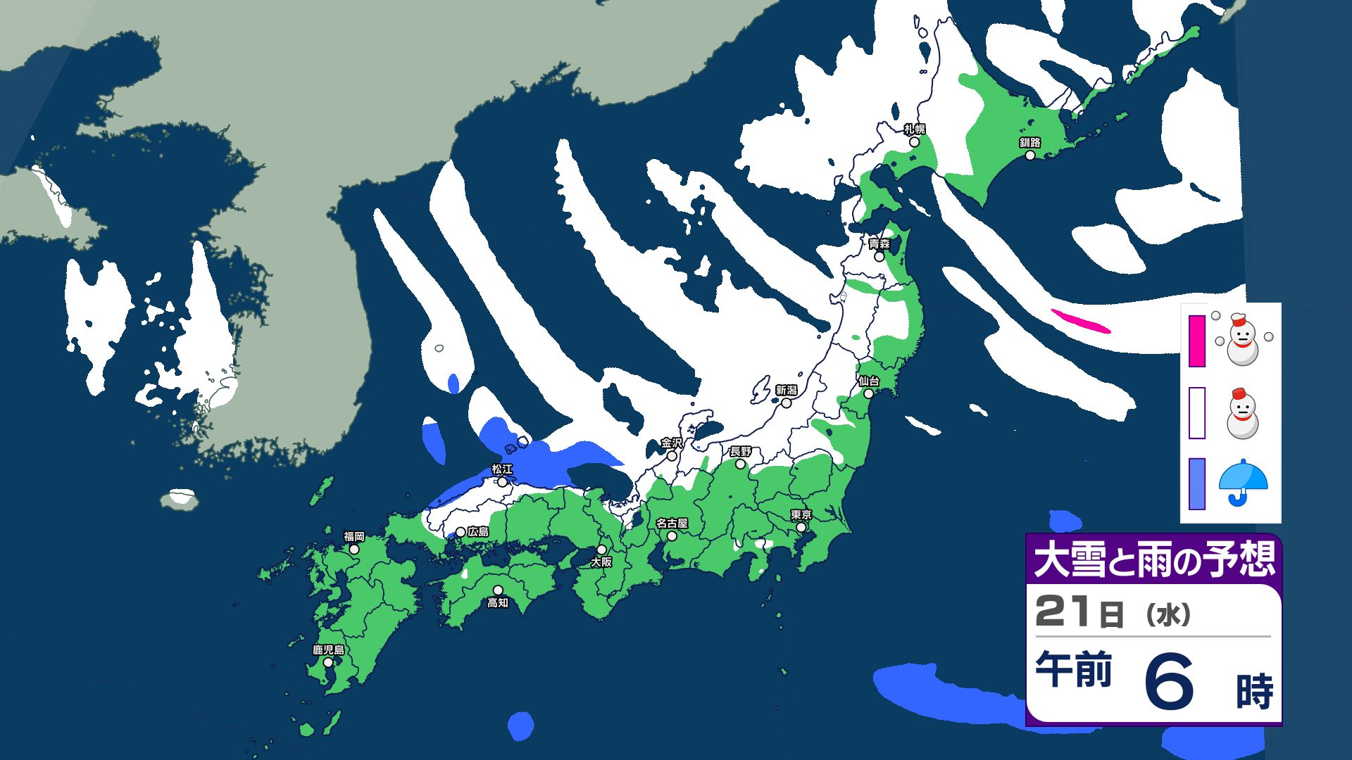 来週21日(水)以降は北日本~西日本の日本海側中心に大雪のおそれ 強い寒気が南下…警報級の大雪の可能性【雪と雨のシミュレーション掲載 1月22日まで】