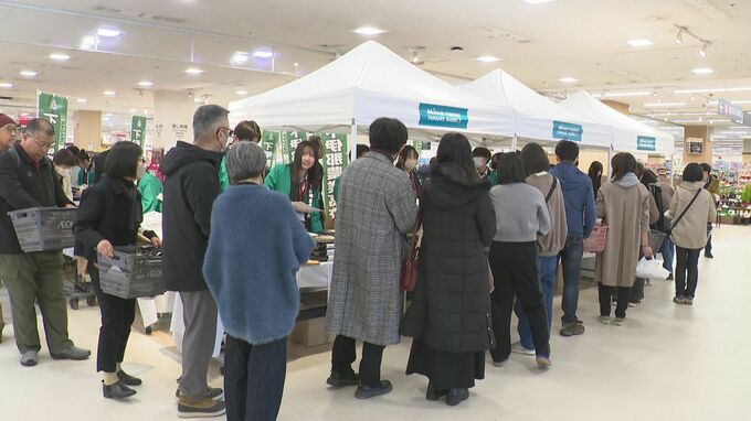 販売会は今回で4年目で、会場には開始前からおよそ50人が列を作りました。