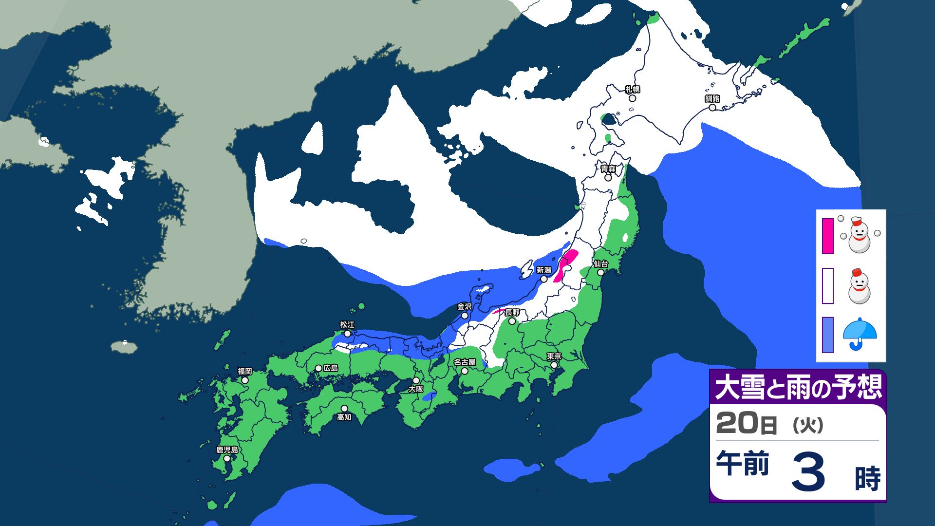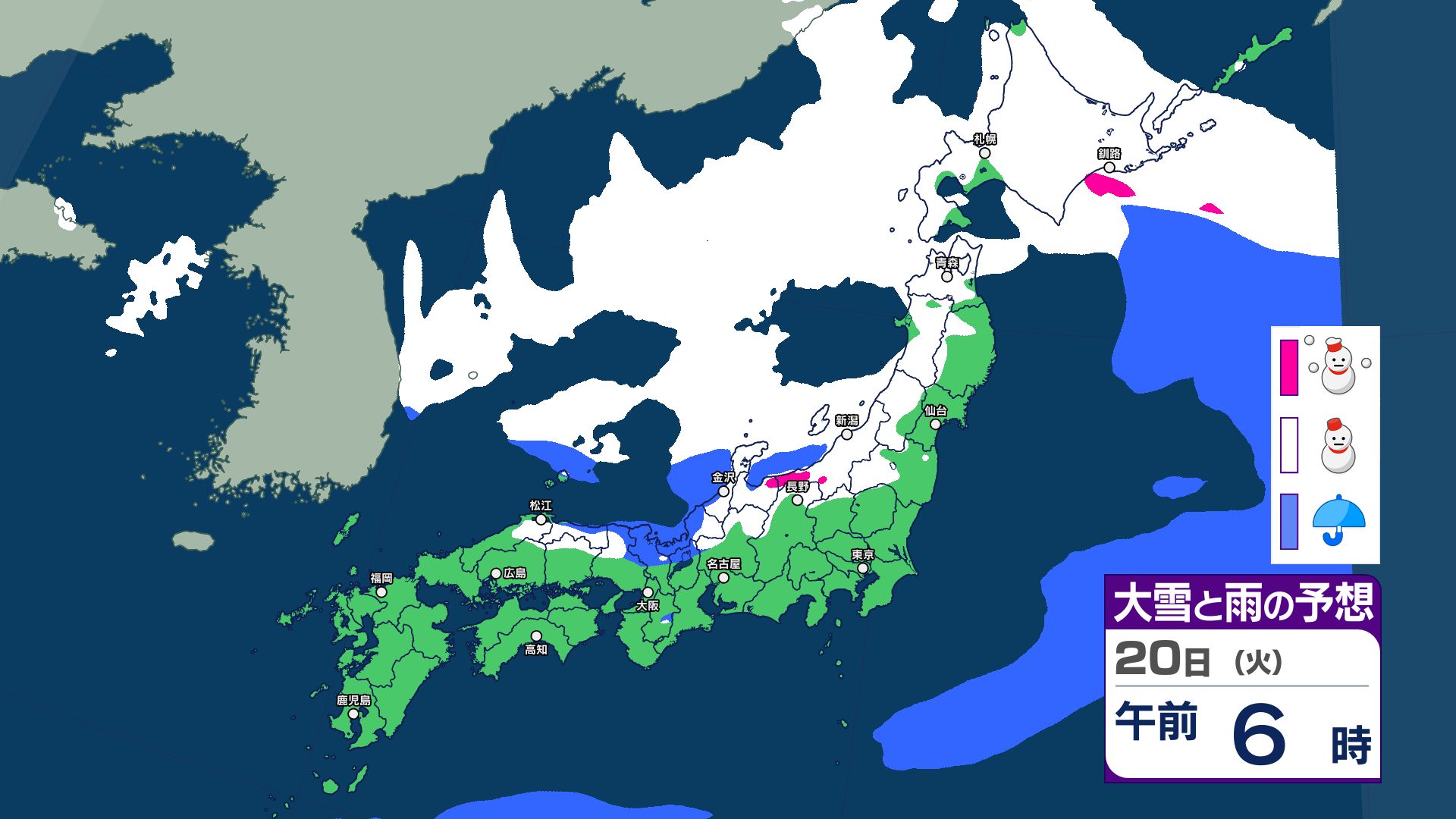 【大雪情報】来週21日(水)~25日(日)にかけて大雪のおそれ…平地でも大雪注意 強い寒気が南下…警報級の大雪の可能性 気象庁発表【雪と雨のシミュレーション掲載 1月23日まで】 2026年1月18日(日) 19:17 国内 【1月23日まで 雪と雨のシミュレーション掲載】