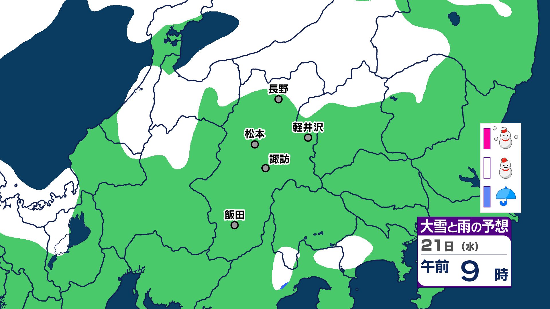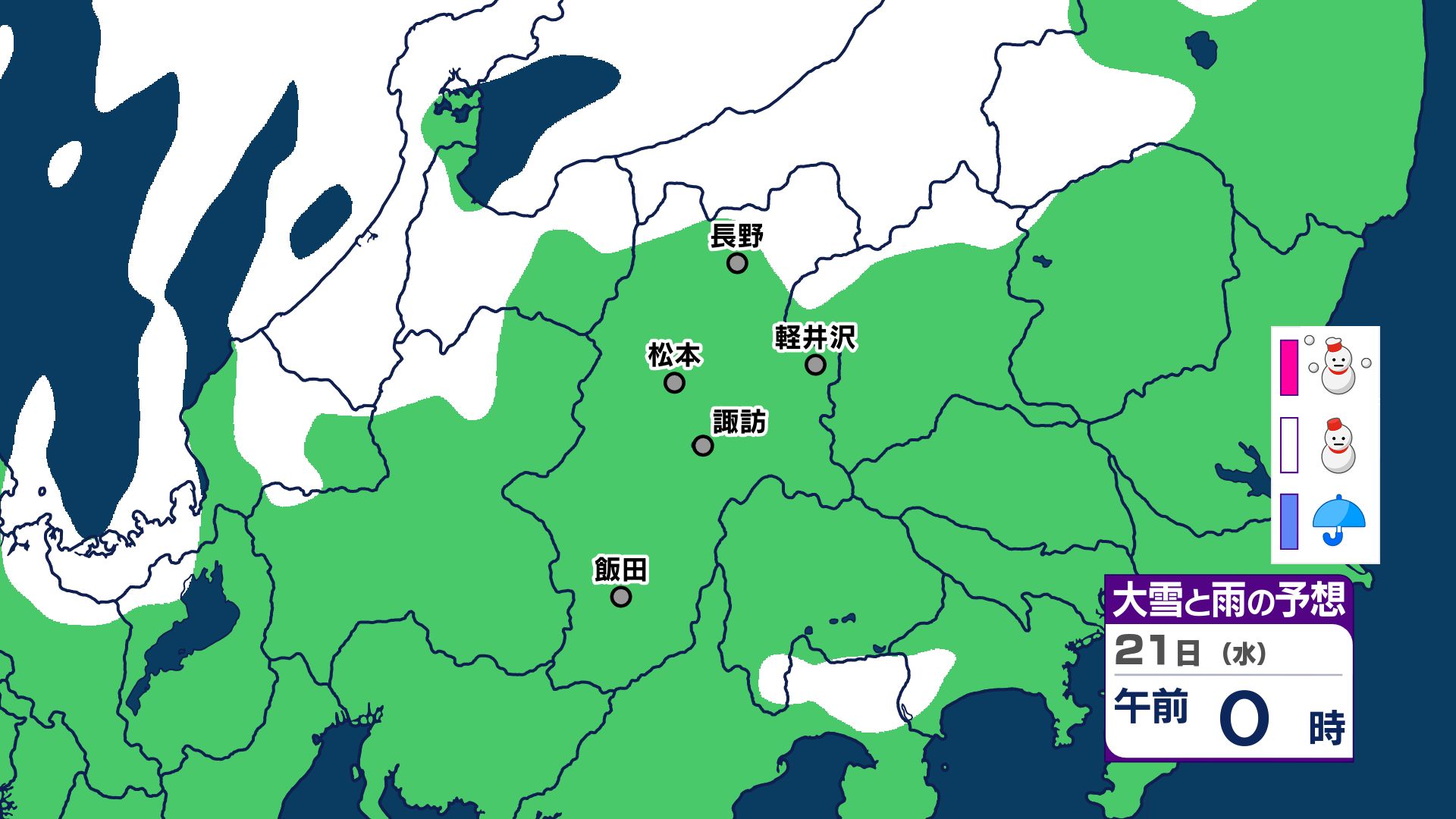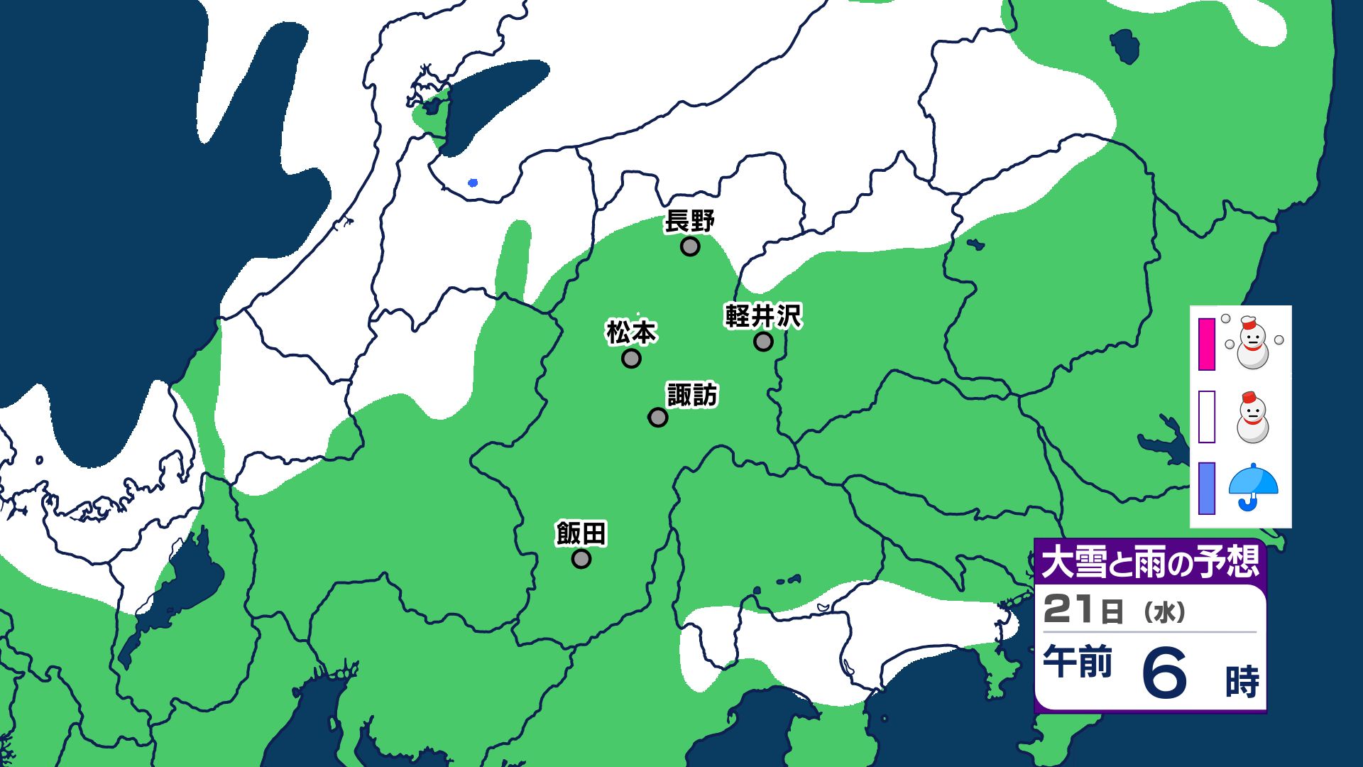 【大雪情報 長野県】21日夜~22日は北部で大雪の予想 警報級の大雪の可能性 今季最強寒波が居座り25日頃にかけて降雪量が増える可能性【雪と雨のシミュレーション掲載 1月25日まで】 2026年1月20日(火) 10:31 国内 【1月25日まで 雪と雨のシミュレーション掲載】