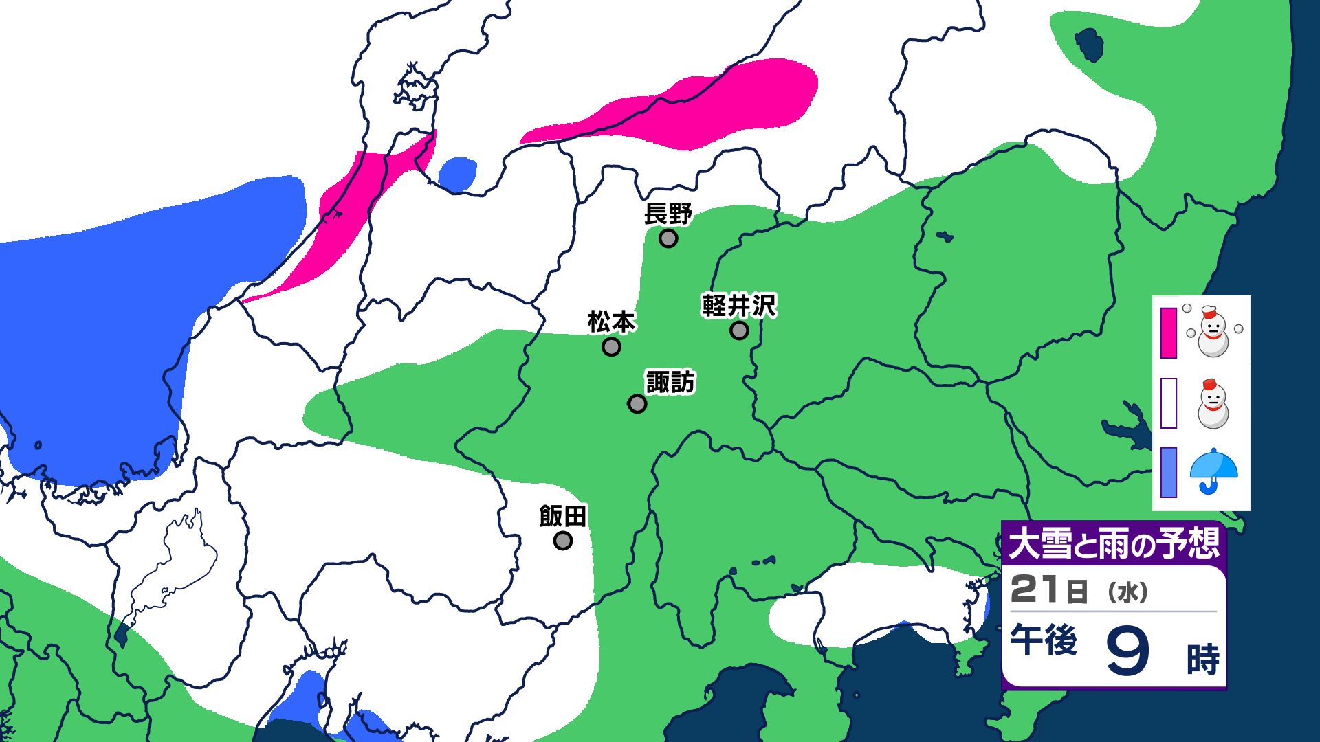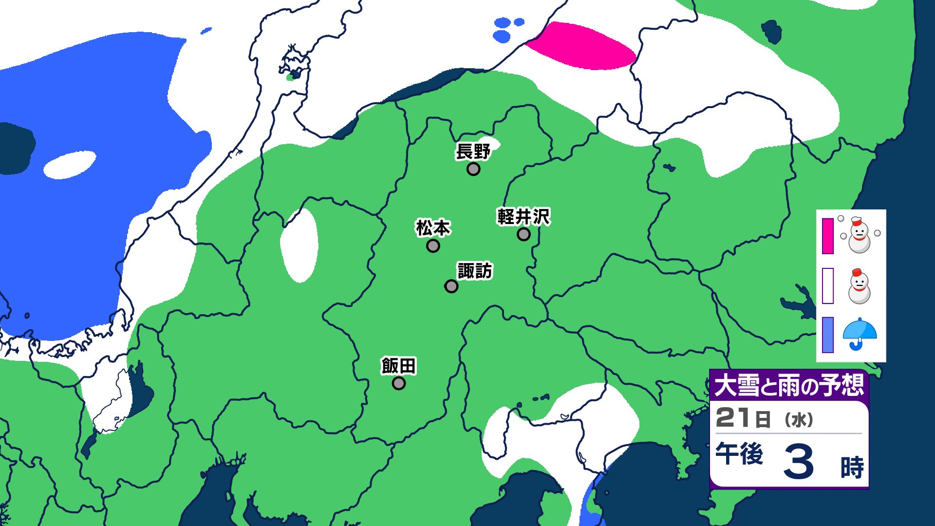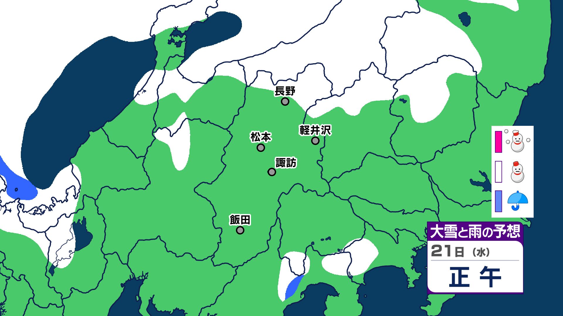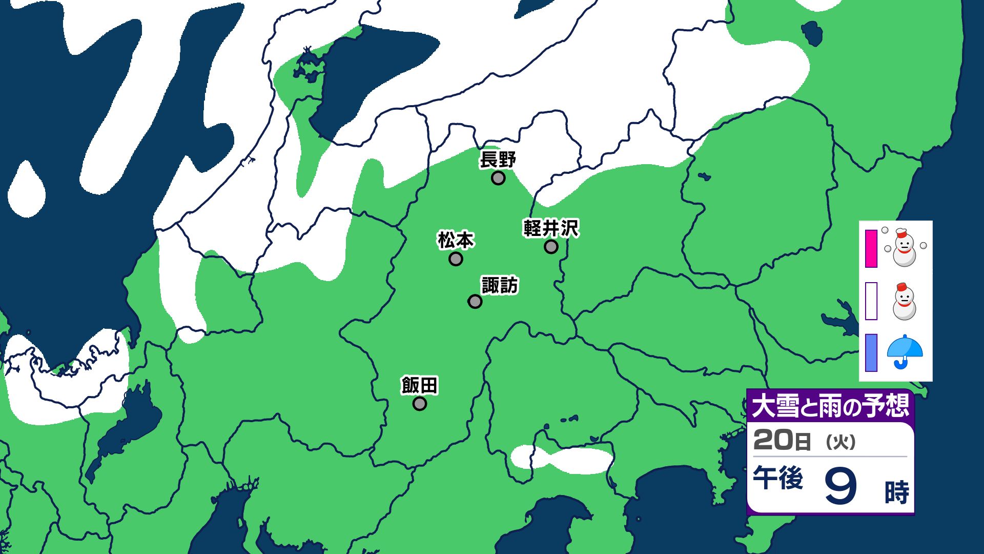 【大雪情報 長野県】21日夜~22日は北部で大雪の予想 警報級の大雪の可能性 今季最強寒波が居座り25日頃にかけて降雪量が増える可能性【雪と雨のシミュレーション掲載 1月25日まで】 2026年1月20日(火) 10:31 国内 【1月25日まで 雪と雨のシミュレーション掲載】