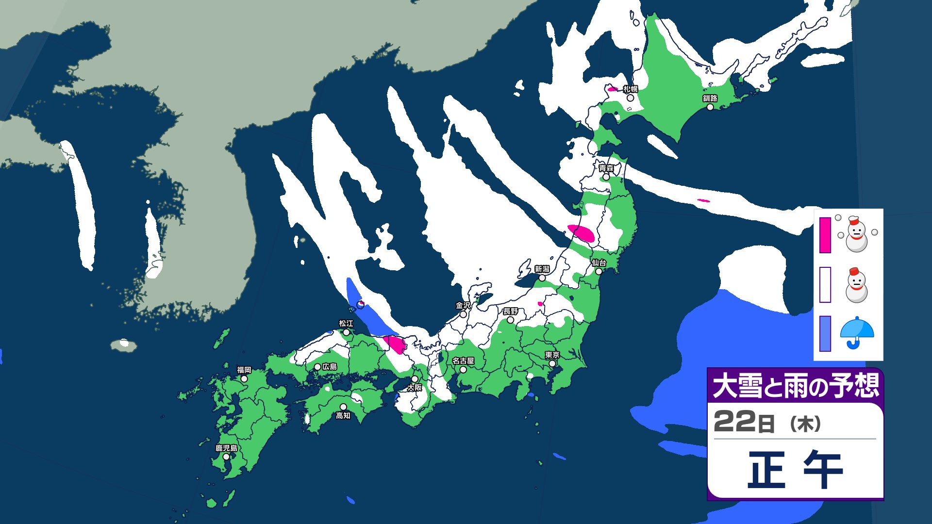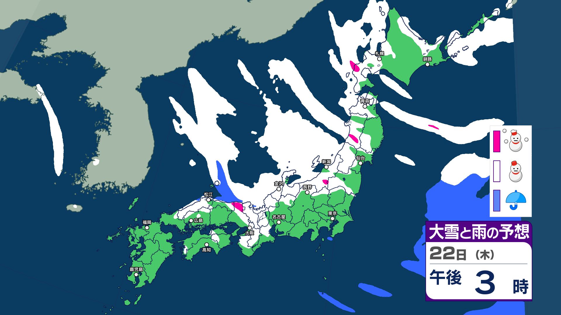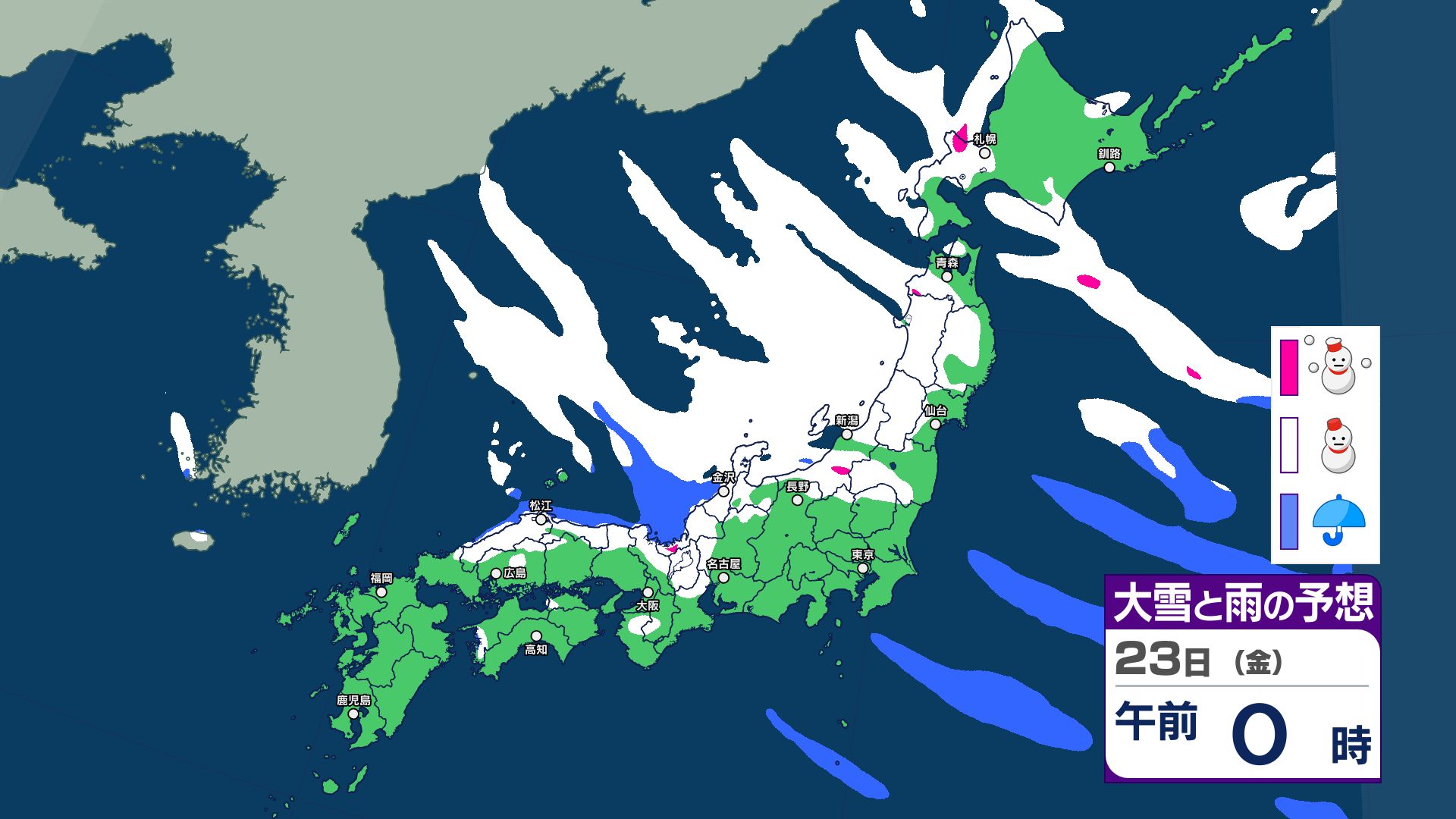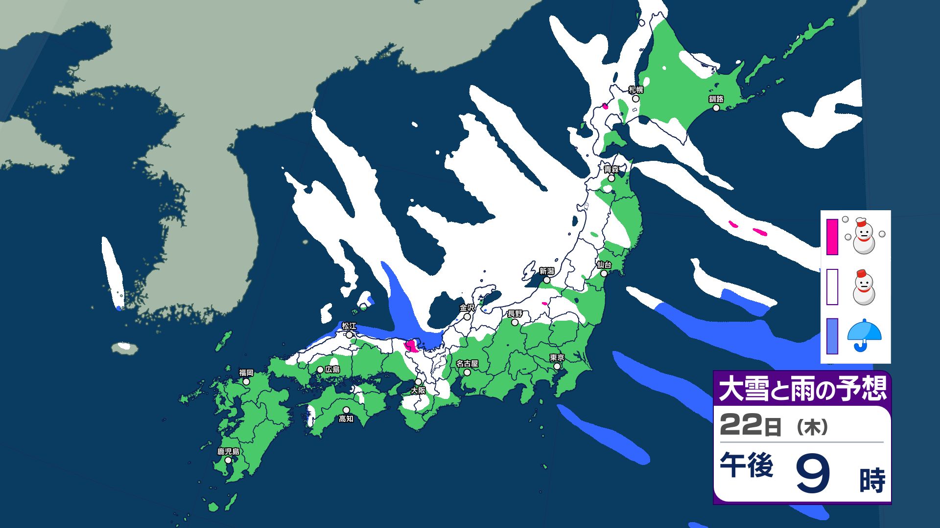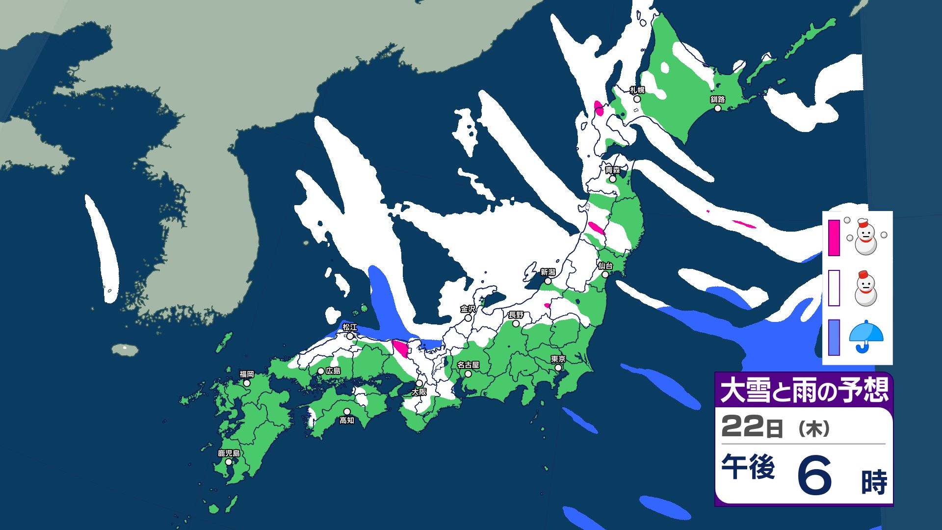 【大雪】“最強クラス”寒波の影響、21日~25日ごろ北~西日本の日本海側を中心に平地でも大雪のおそれ(雨・雪シミュレーション) 北陸100cm、東北70cm、近畿・北海道50cm、関東甲信40cm予想 29分前
