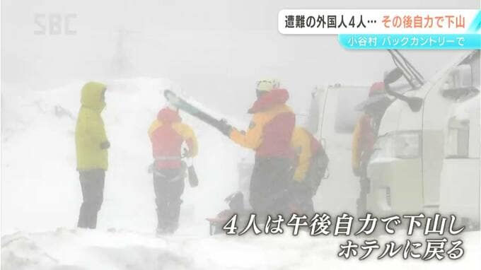 小谷村で19日、バックカントリーをしていて遭難し、救助要請していた外国人4人が警察の捜索中に自力で下山していたことが分かりました。