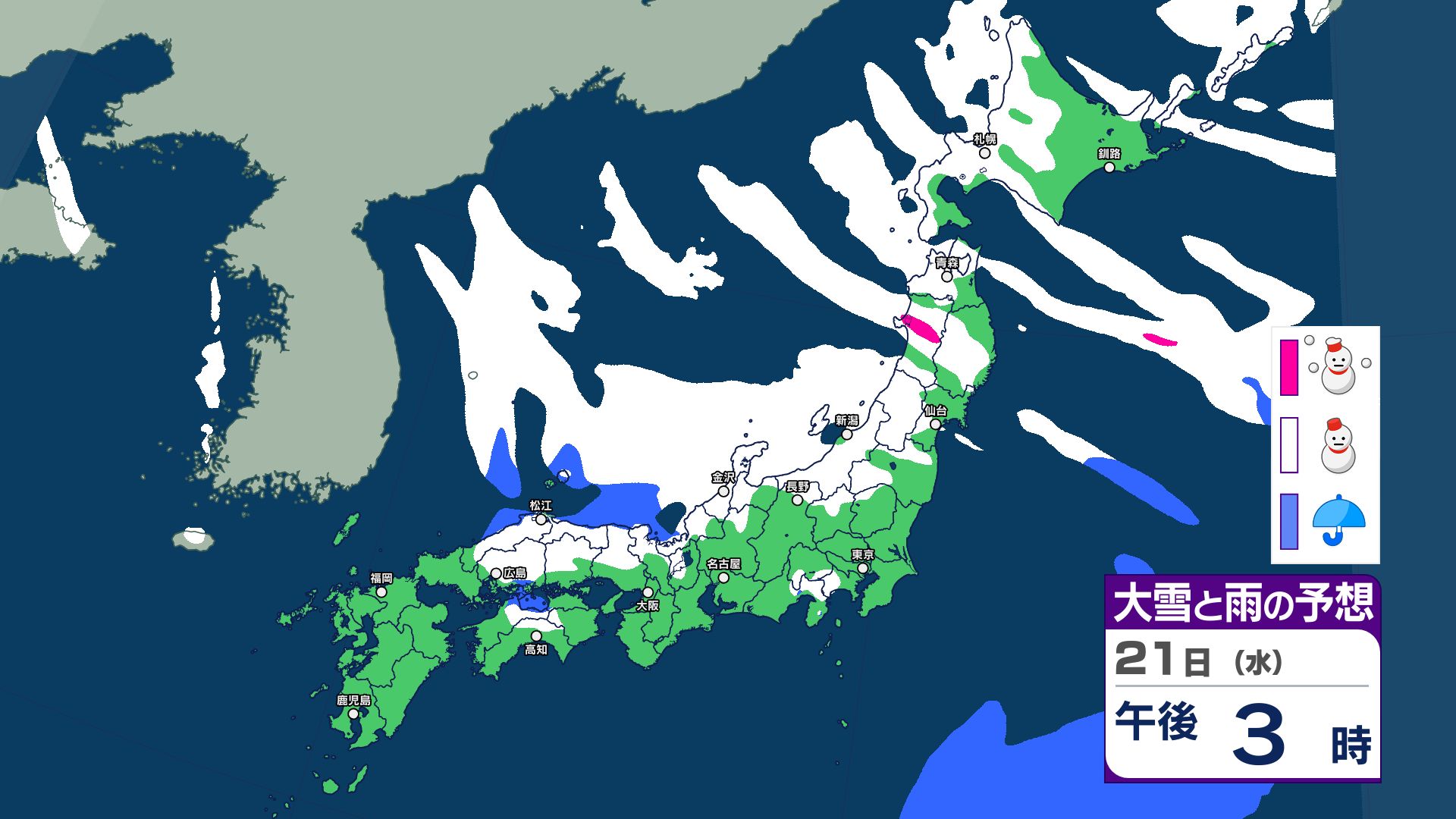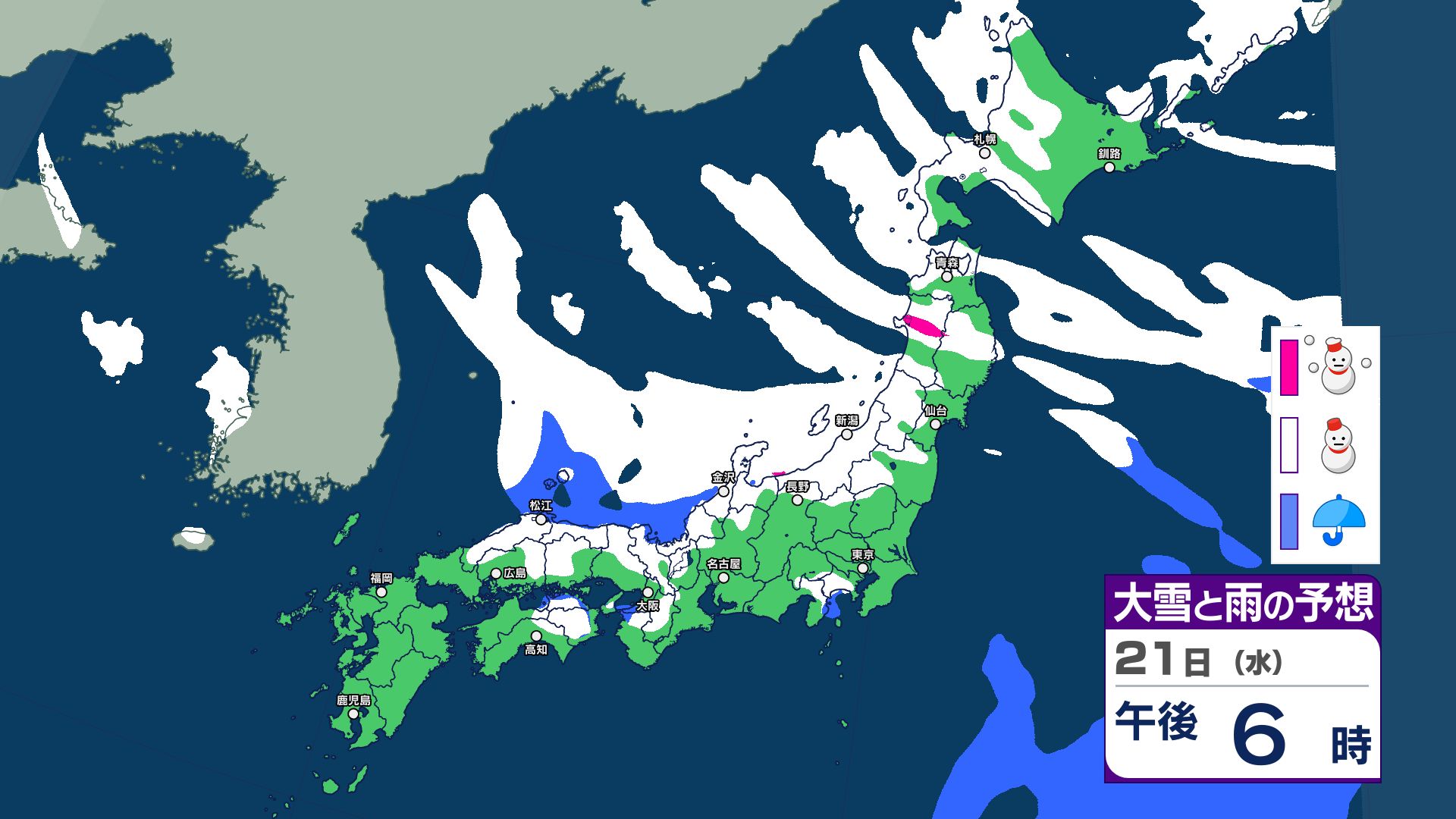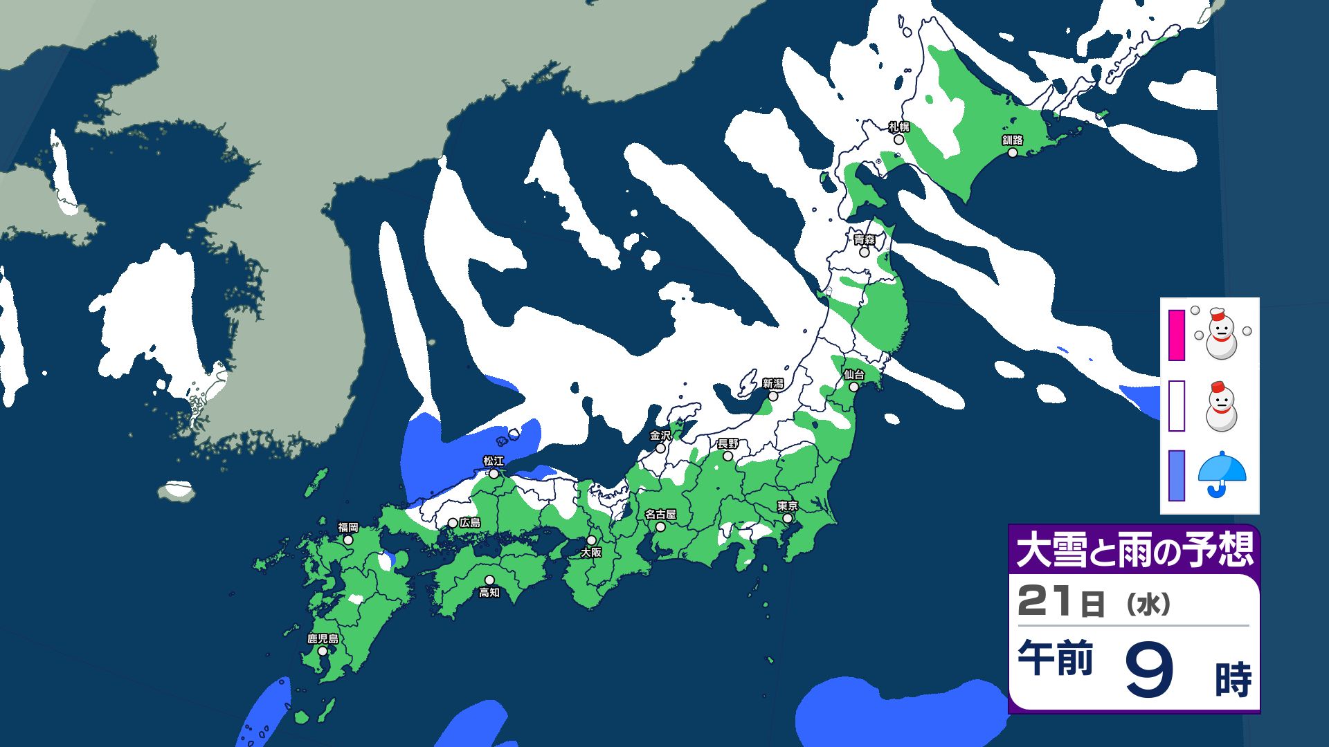 【大雪情報】22日にかけて強い寒気…特に北陸地方、近畿地方、中国地方で大雪警戒 25日頃にかけて日本海側中心に大雪のおそれ 気象庁発表【雪と雨のシミュレーション掲載 1月26日まで】 2026年1月21日(水) 08:30 国内 【1月26日まで 雪と雨のシミュレーション掲載】