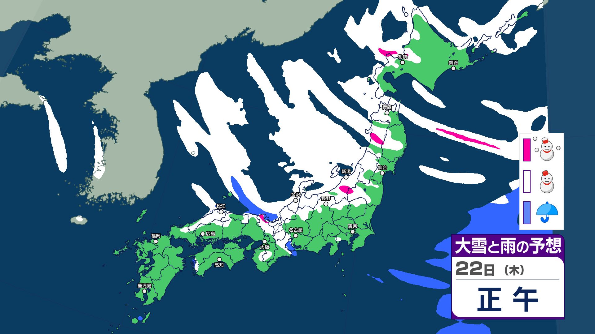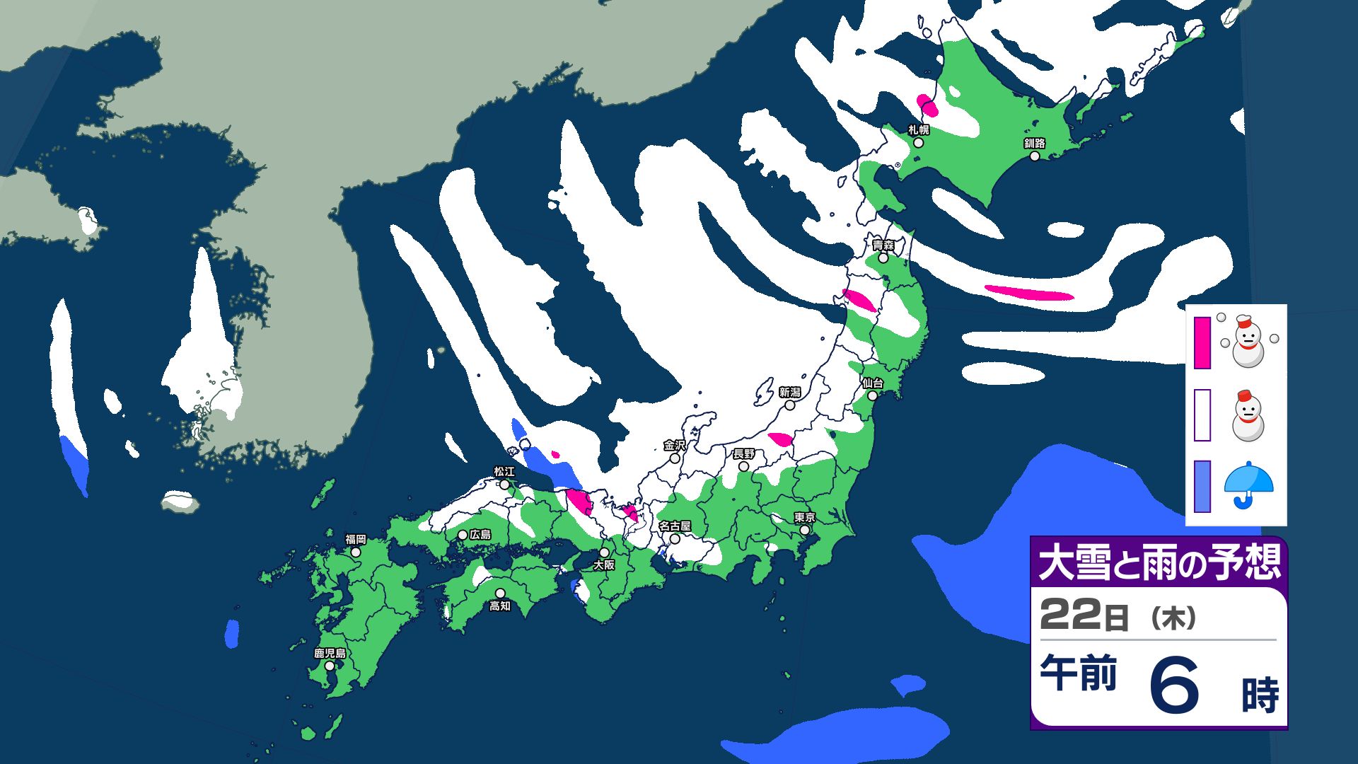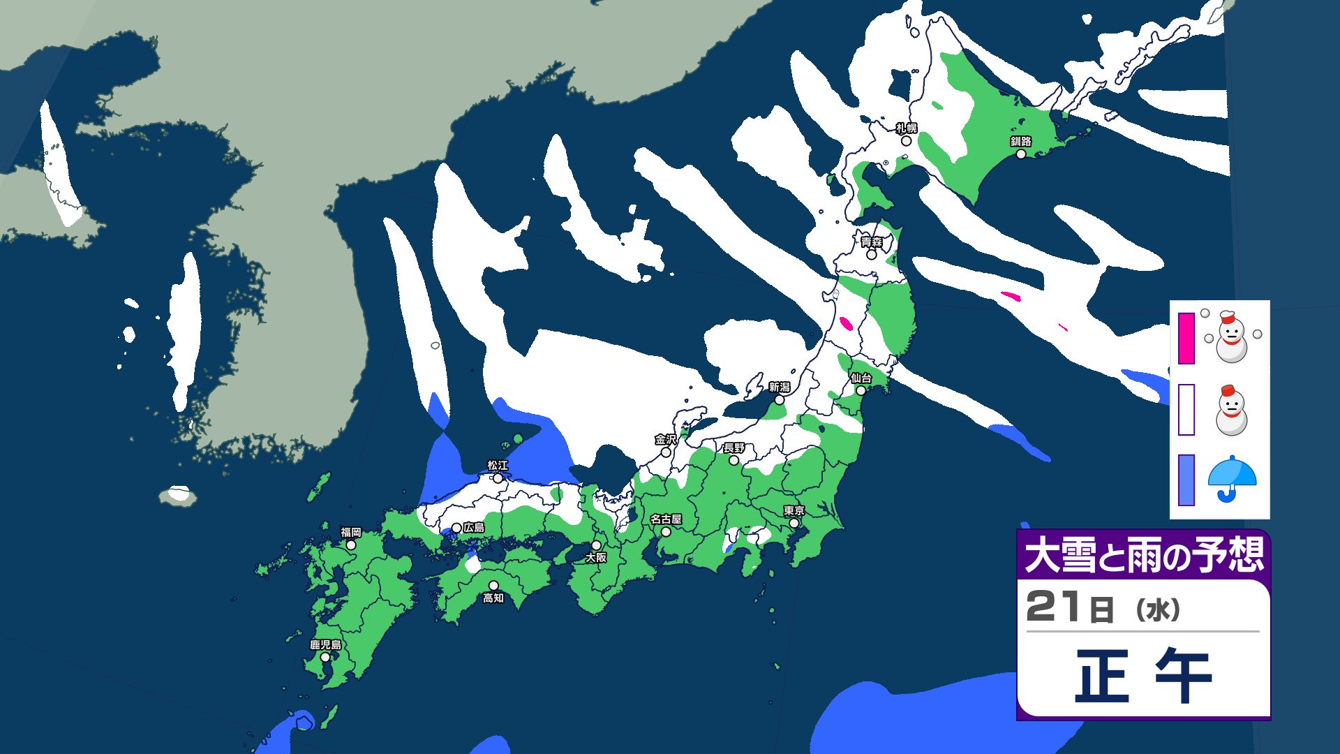 【大雪情報】22日にかけて強い寒気…特に北陸地方、近畿地方、中国地方で大雪警戒 25日頃にかけて日本海側中心に大雪のおそれ 気象庁発表【雪と雨のシミュレーション掲載 1月26日まで】 2026年1月21日(水) 08:30 国内 【1月26日まで 雪と雨のシミュレーション掲載】
