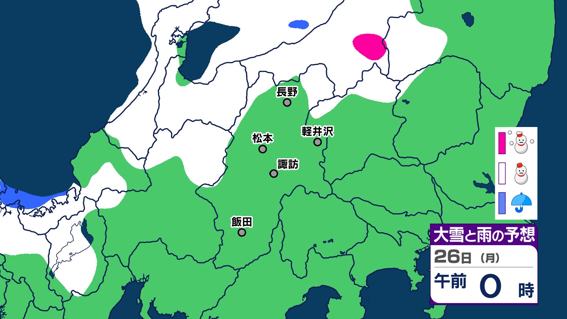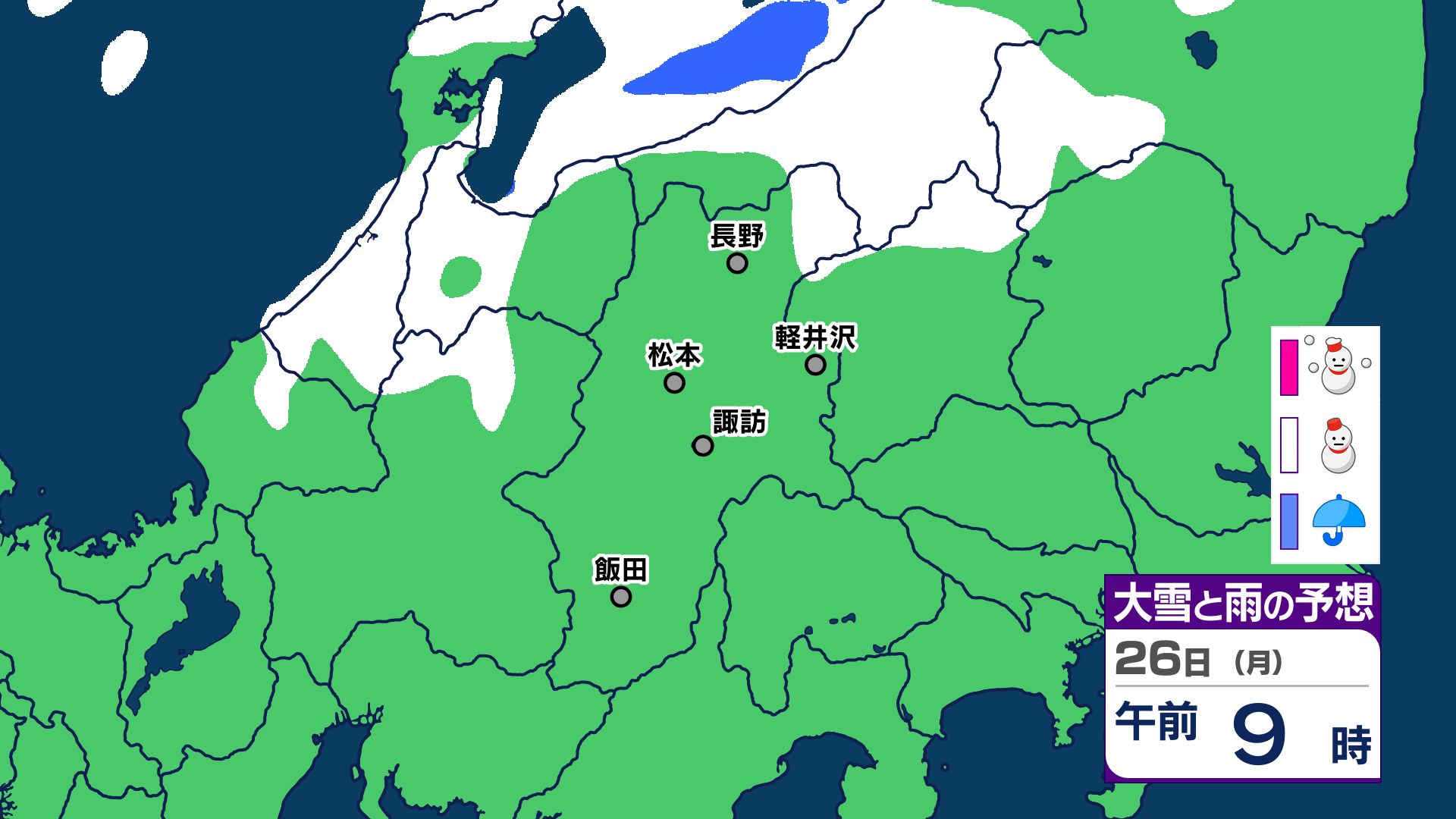 【大雪情報 長野県内】21日夜遅く~22日昼前 中野飯山50センチ 長野・大北山沿い30センチ 長野平地・菅平・聖高原・乗鞍上高地10センチ 木曽・下伊那7センチ 大北平地5センチ(~22日午後6時・多い所) 2026年1月21日(水) 17:35 国内
