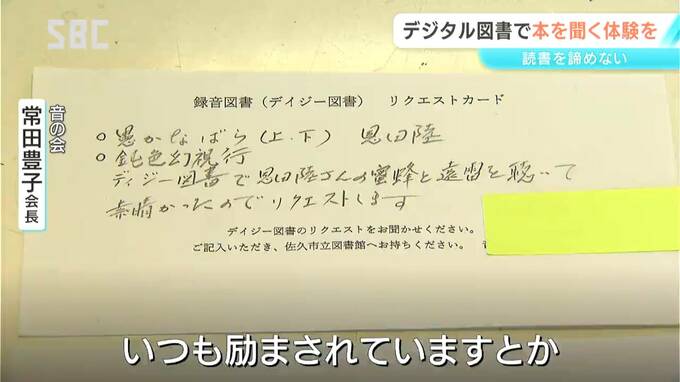 本を読む喜びを誰もがいつまでも感じられるように。「音の会」は、病院や図書館などでデイジー図書を聞いてもらうイベントを定期的に開き、国会図書館への所蔵なども目指していくということです。
