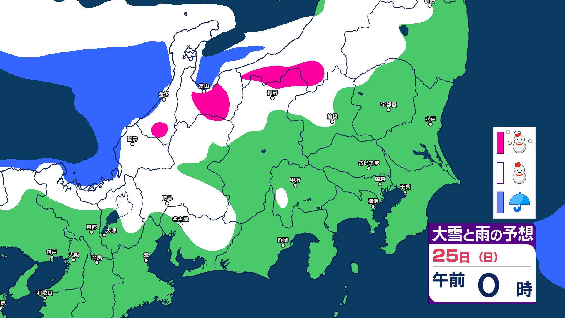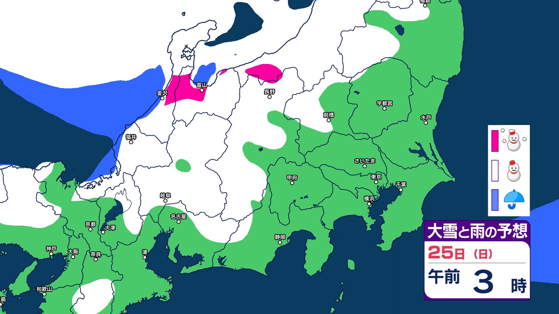 【今季最長・居座り寒波】25日にかけて大雪に警戒 ラストの土日は雷・突風にも注意 冬用タイヤ必須 ノーマルタイヤは避けて 25日午後6時までの24時間予想降雪量は関東甲信地方で70cm【雪の降り方シミュレーション】 3時間前