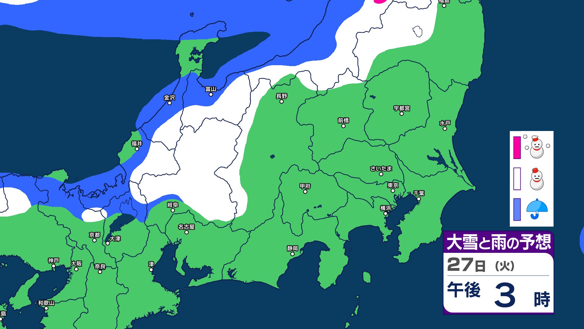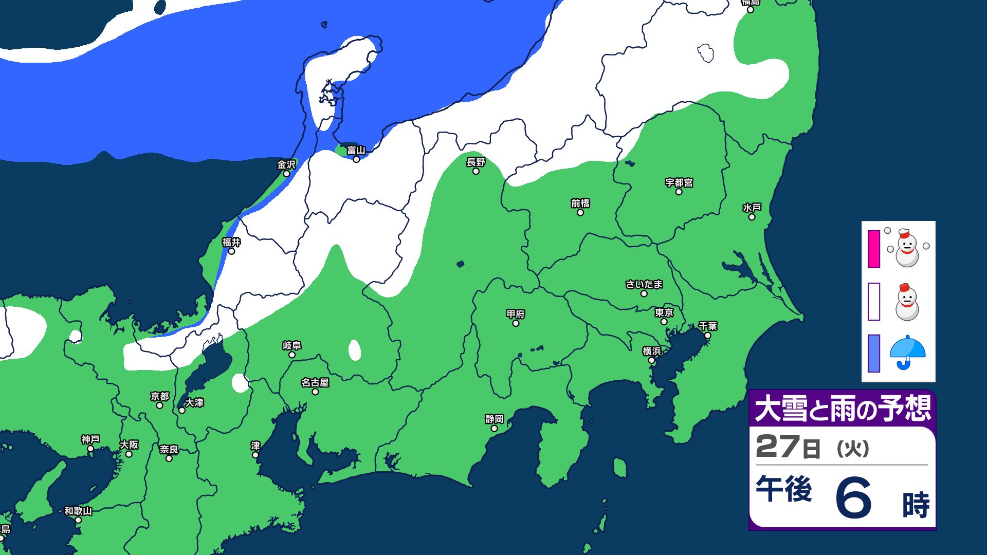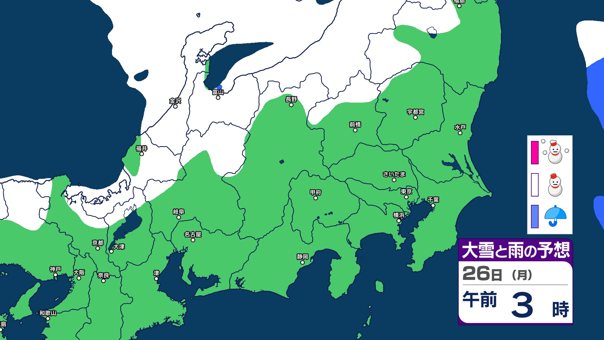 【今季最長・居座り寒波】25日にかけて大雪に警戒 ラストの土日は雷・突風にも注意 冬用タイヤ必須 ノーマルタイヤは避けて 25日午後6時までの24時間予想降雪量は関東甲信地方で70cm【雪の降り方シミュレーション】 3時間前
