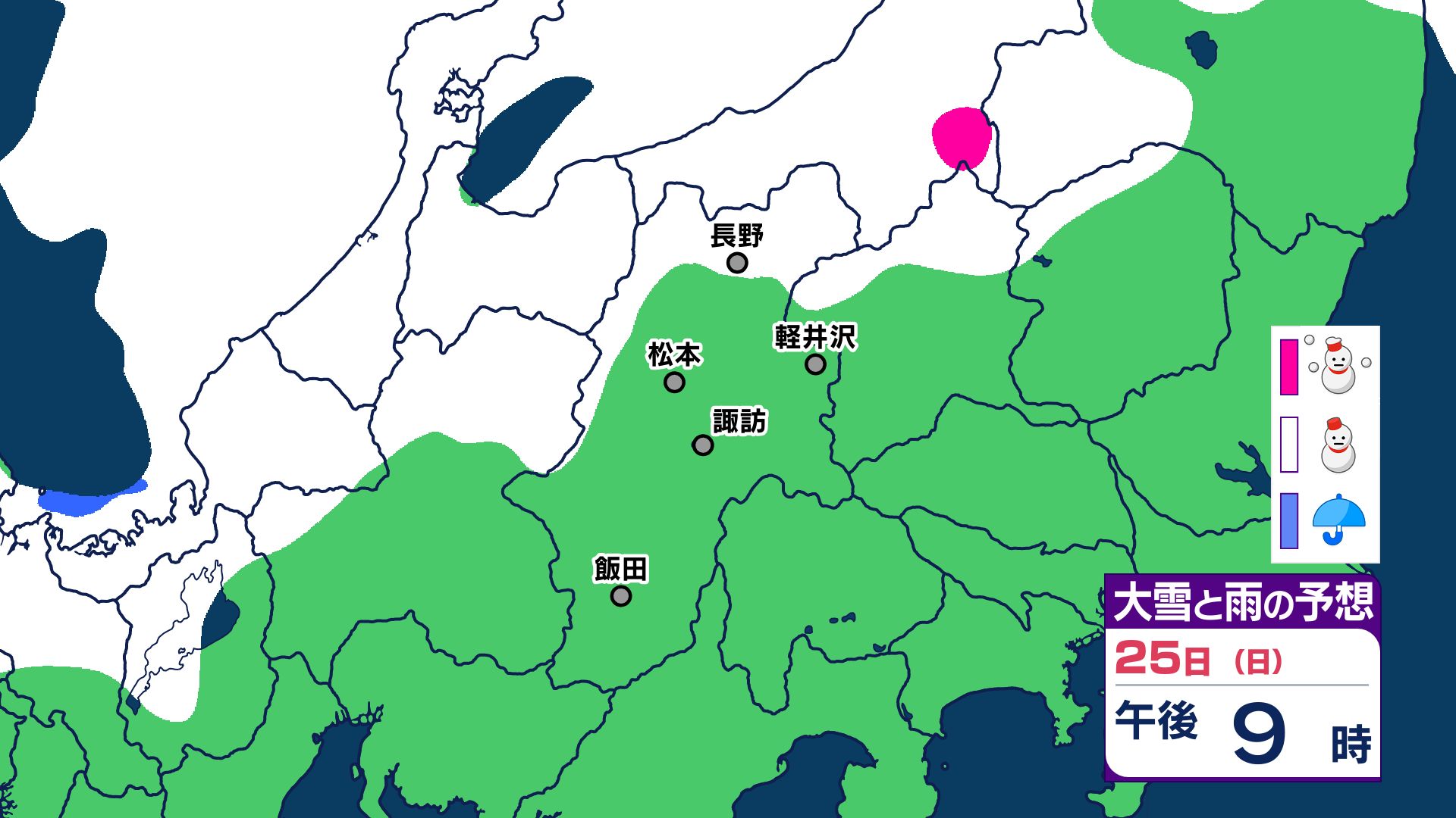 3. 【大雪情報 長野県】長野地域山沿い20センチ 中野飯山地域30センチ 大北地域山沿い25センチ 上田地域の菅平周辺15センチ【雪のシミュレーション画像掲載】長野地方気象台 25日昼前にかけ 大雪や路面の凍結による交通障害に警戒