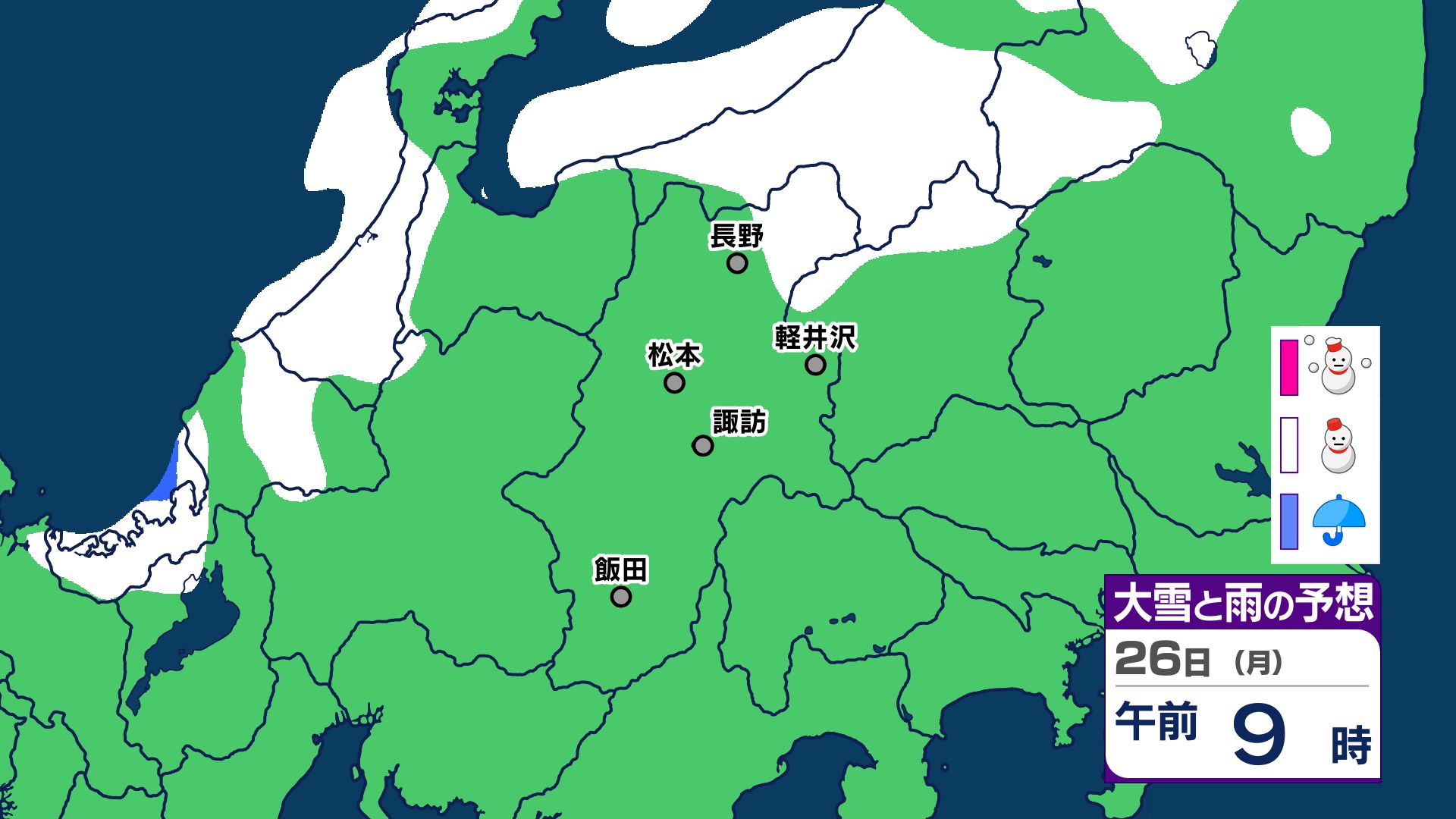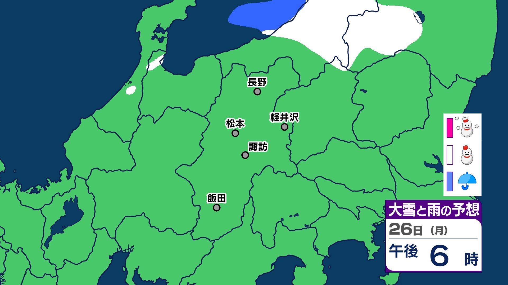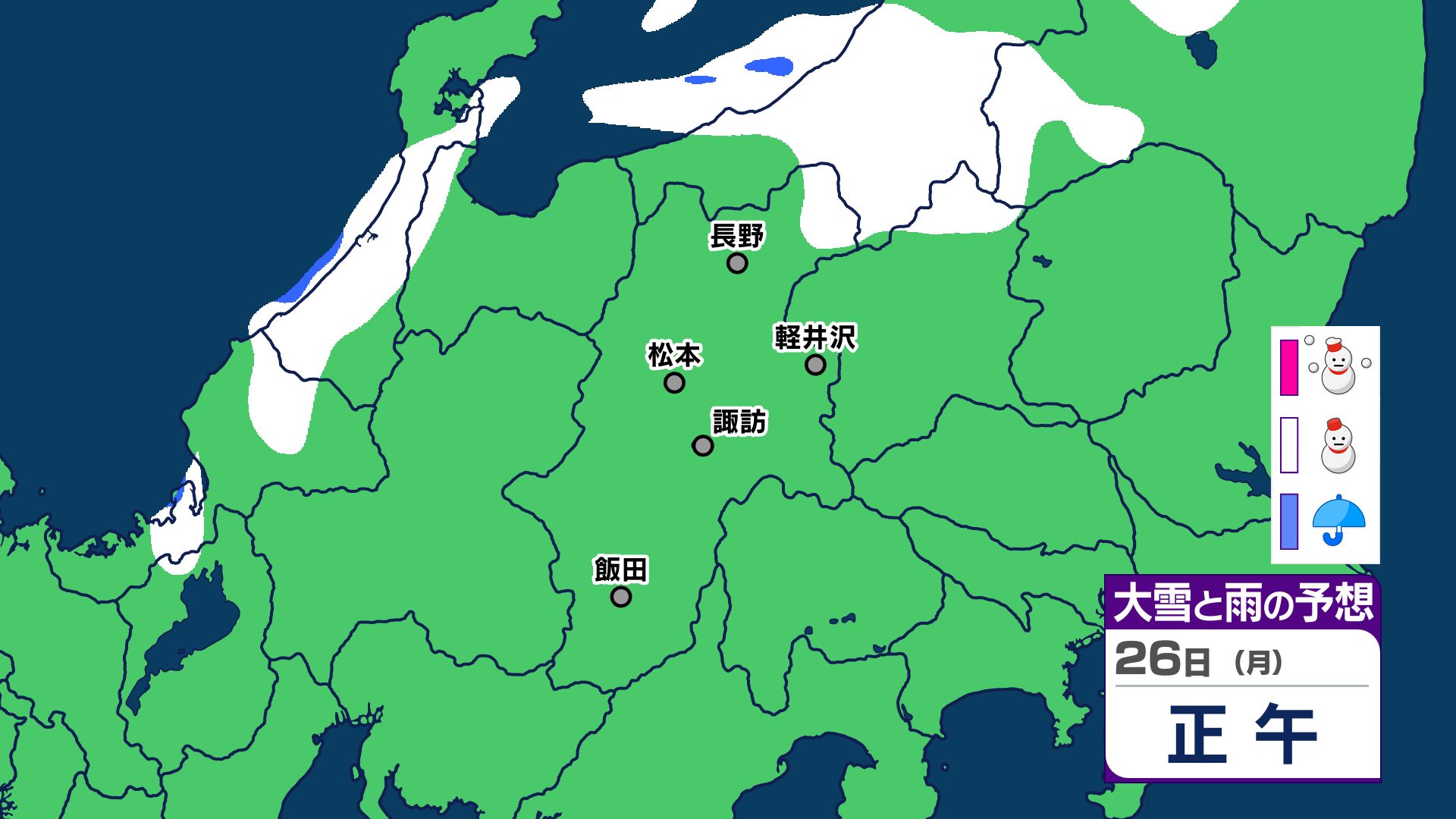 【大雪情報 長野県】長野地域山沿い20センチ 中野飯山地域30センチ 大北地域山沿い25センチ 上田地域の菅平周辺15センチ【雪のシミュレーション画像掲載】長野地方気象台 25日昼前にかけ 大雪や路面の凍結による交通障害に警戒 2026年1月25日(日) 10:03 国内