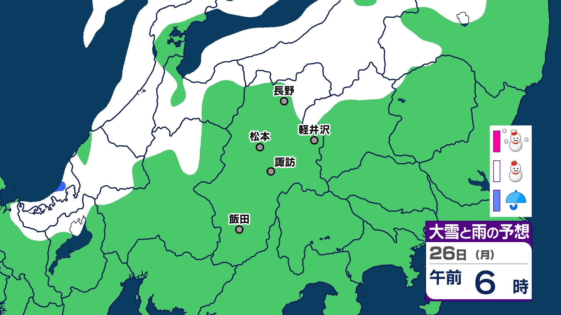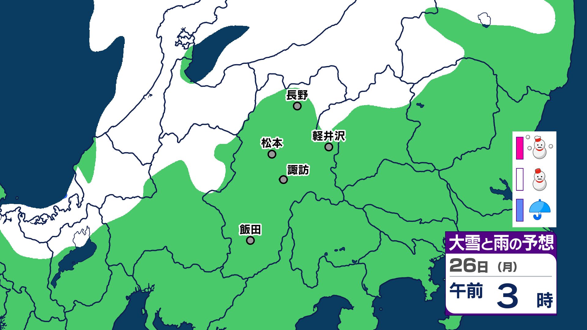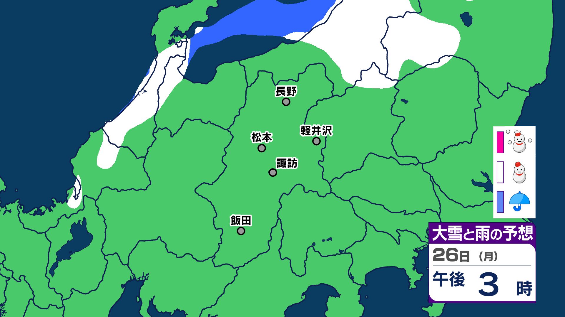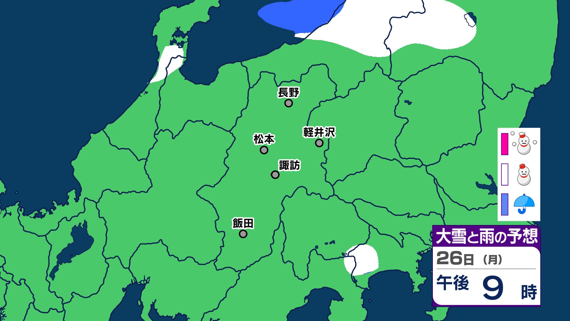【大雪情報 長野県】長野地域山沿い20センチ 中野飯山地域30センチ 大北地域山沿い25センチ 上田地域の菅平周辺15センチ【雪のシミュレーション画像掲載】長野地方気象台 25日昼前にかけ 大雪や路面の凍結による交通障害に警戒 2026年1月25日(日) 10:03 国内