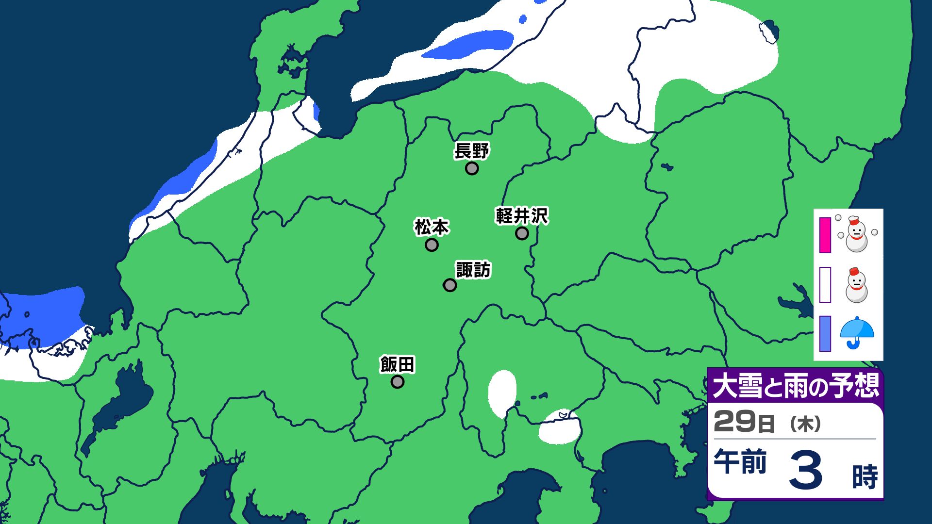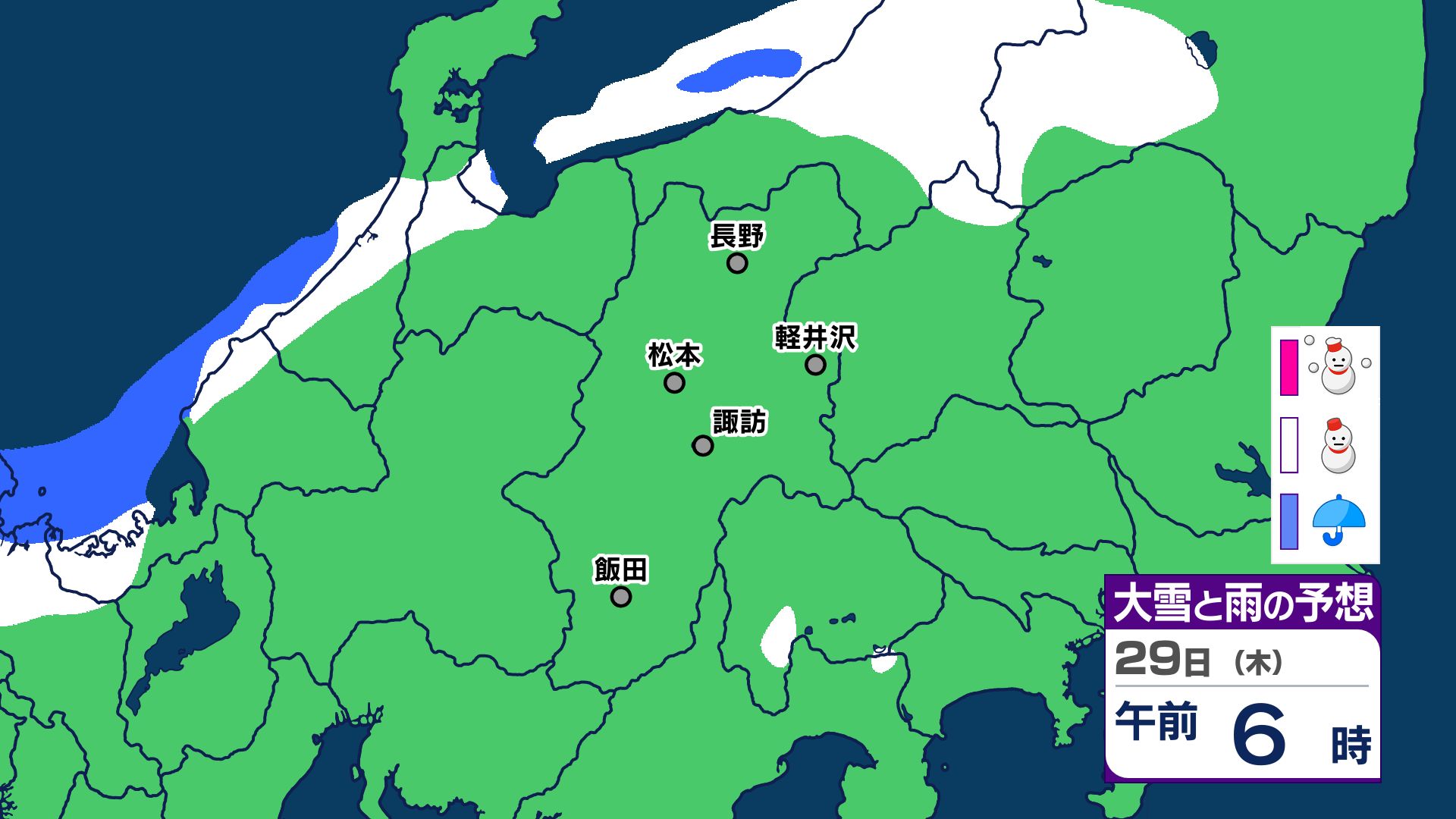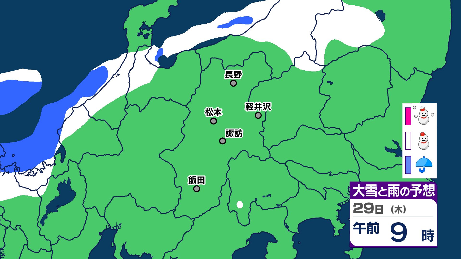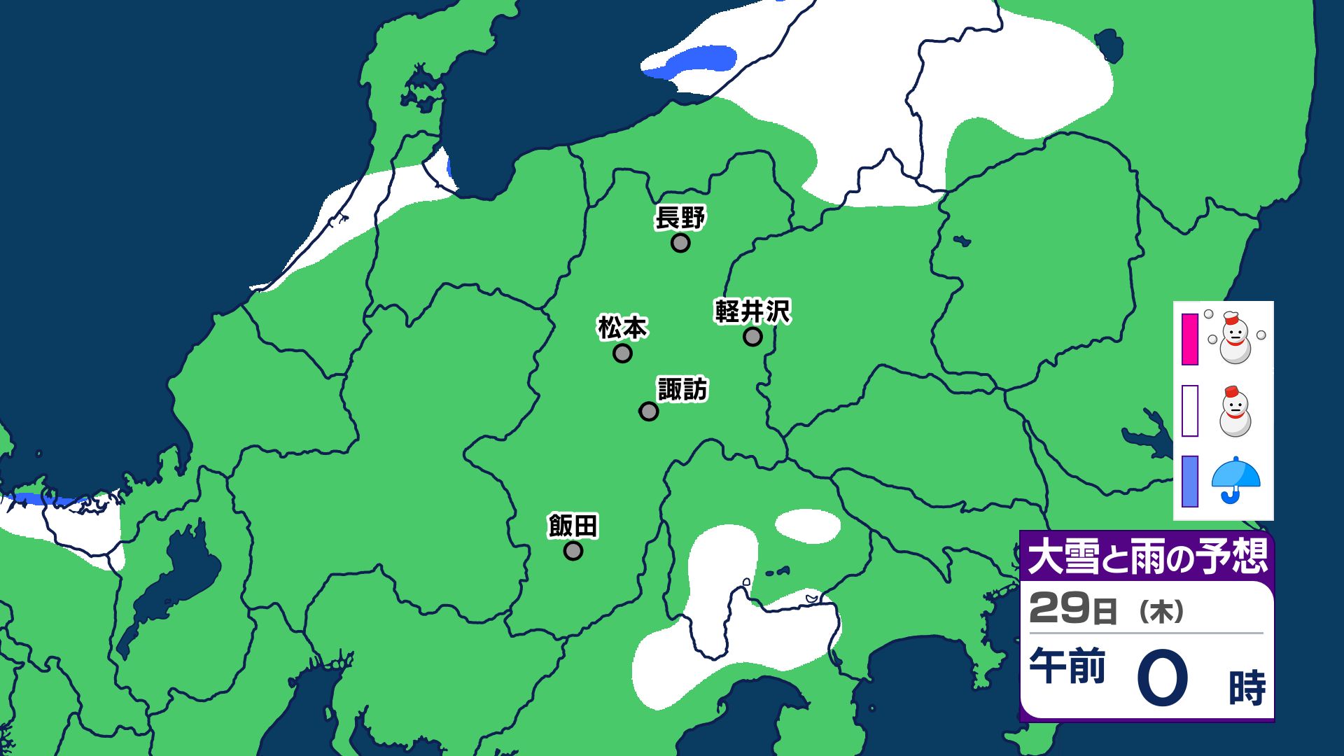 【大雪情報 長野県】長野地域山沿い20センチ 中野飯山地域30センチ 大北地域山沿い25センチ 上田地域の菅平周辺15センチ【雪のシミュレーション画像掲載】長野地方気象台 25日昼前にかけ 大雪や路面の凍結による交通障害に警戒 2026年1月25日(日) 10:03 国内