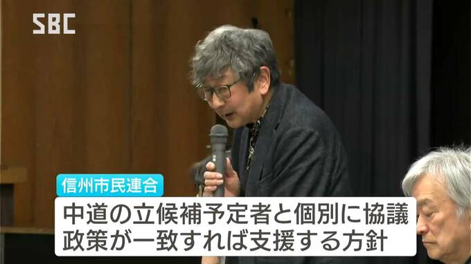 市民団体の信州市民連合は24日、長野市内で集会を開き、立憲、共産、社民の県組織の代表に消費税減税などを盛った政策要望書を手渡しました。