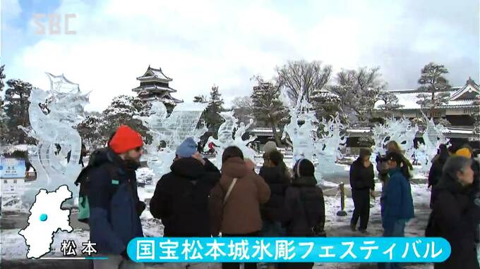 氷のアート作品で街を飾る「氷彫フェスティバル」が松本市で開かれ、多くの見物客でにぎわいました。